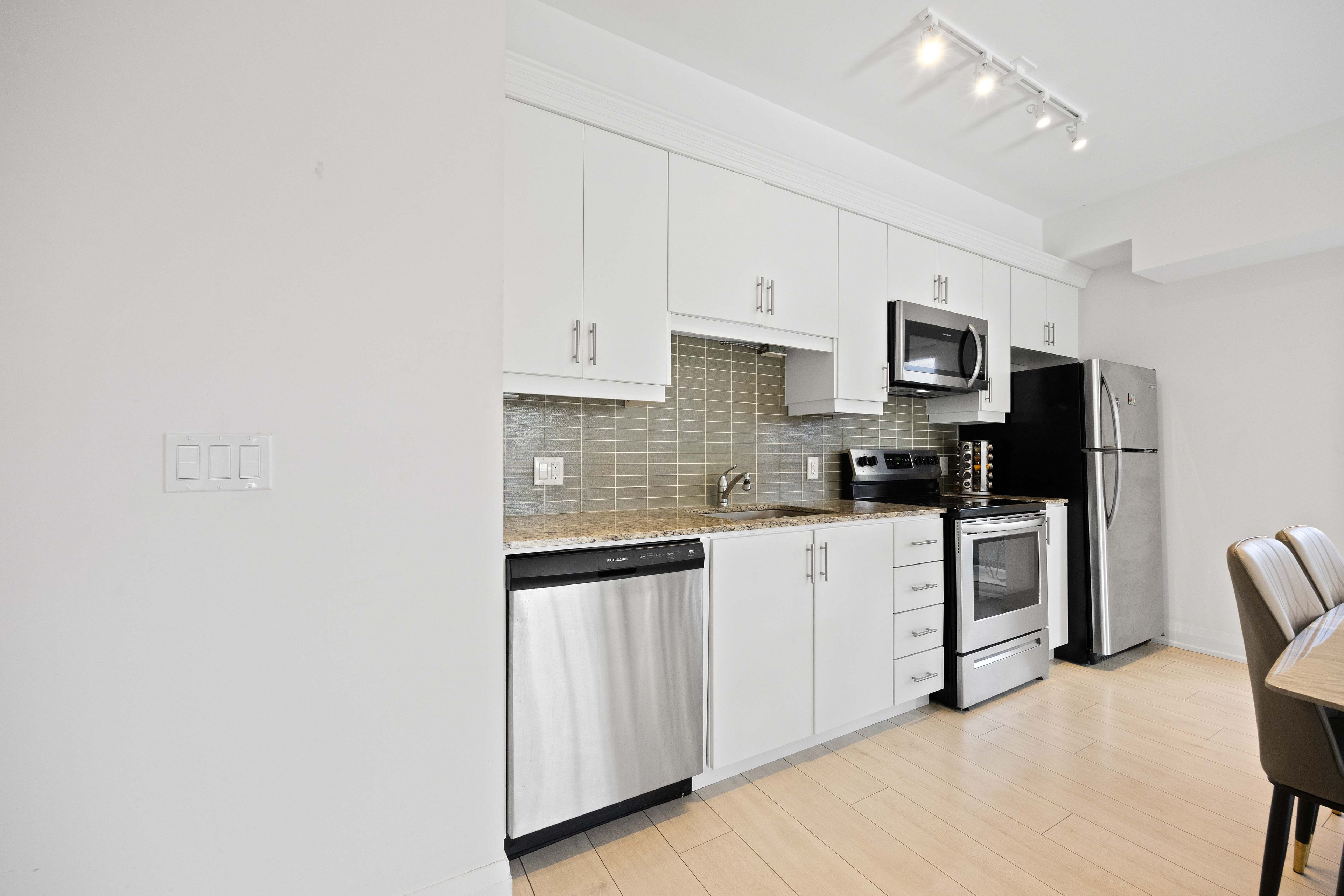 • Convenient kitchen features granite countertops and stainless-steel appliances.