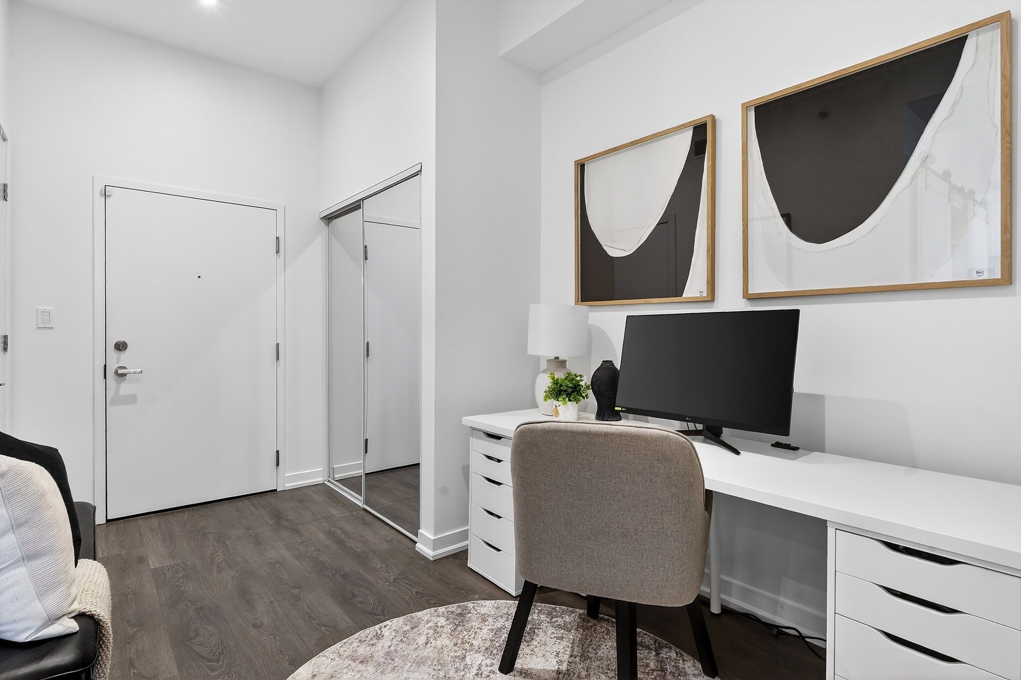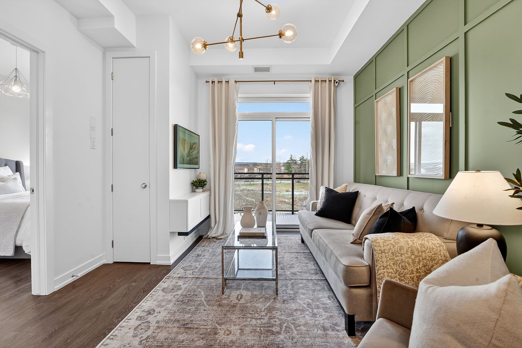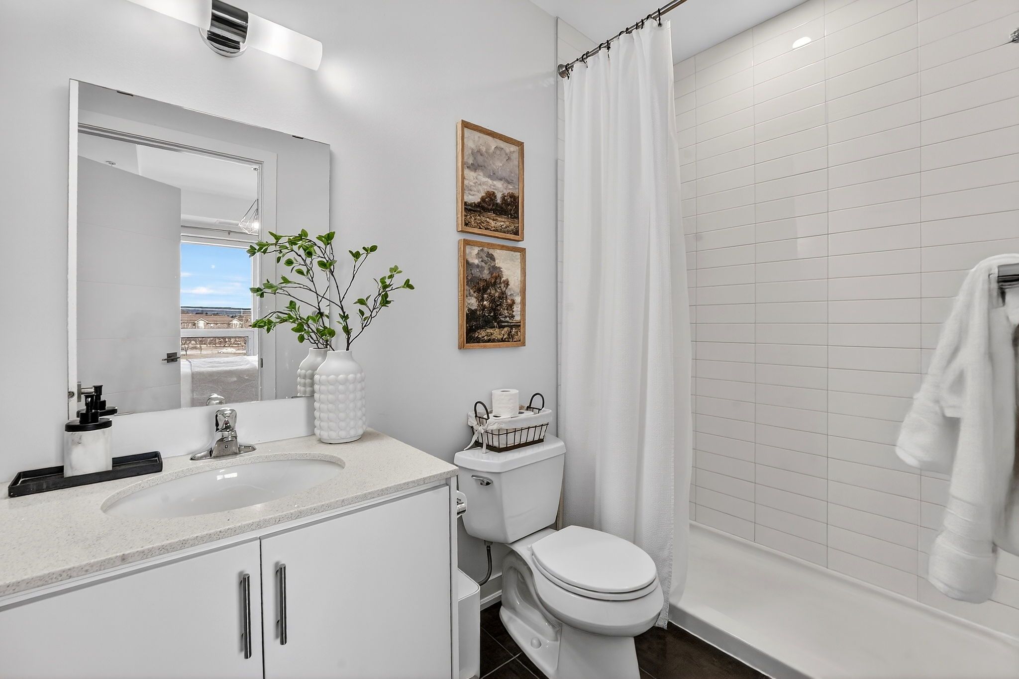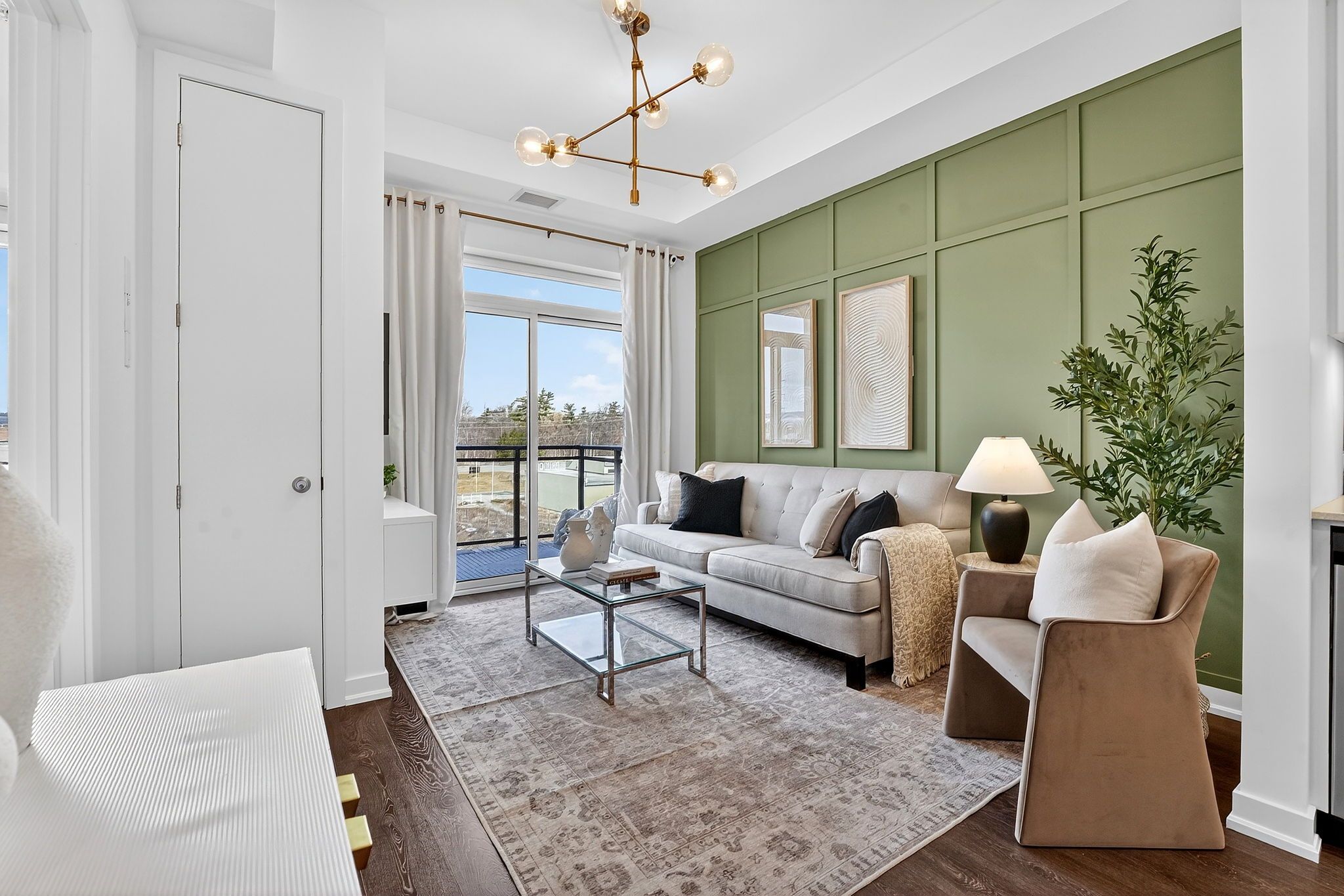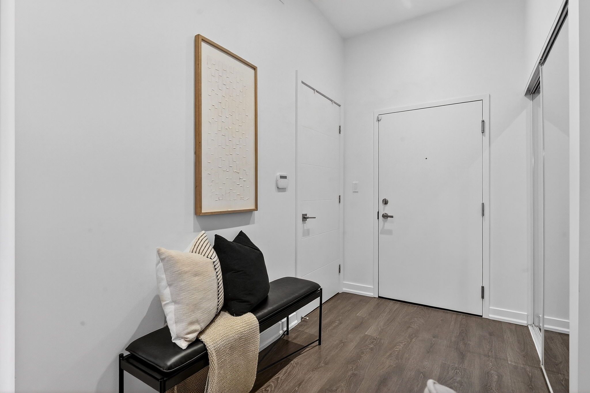 • Bright open-concept design with high ceilings and modern finishes.