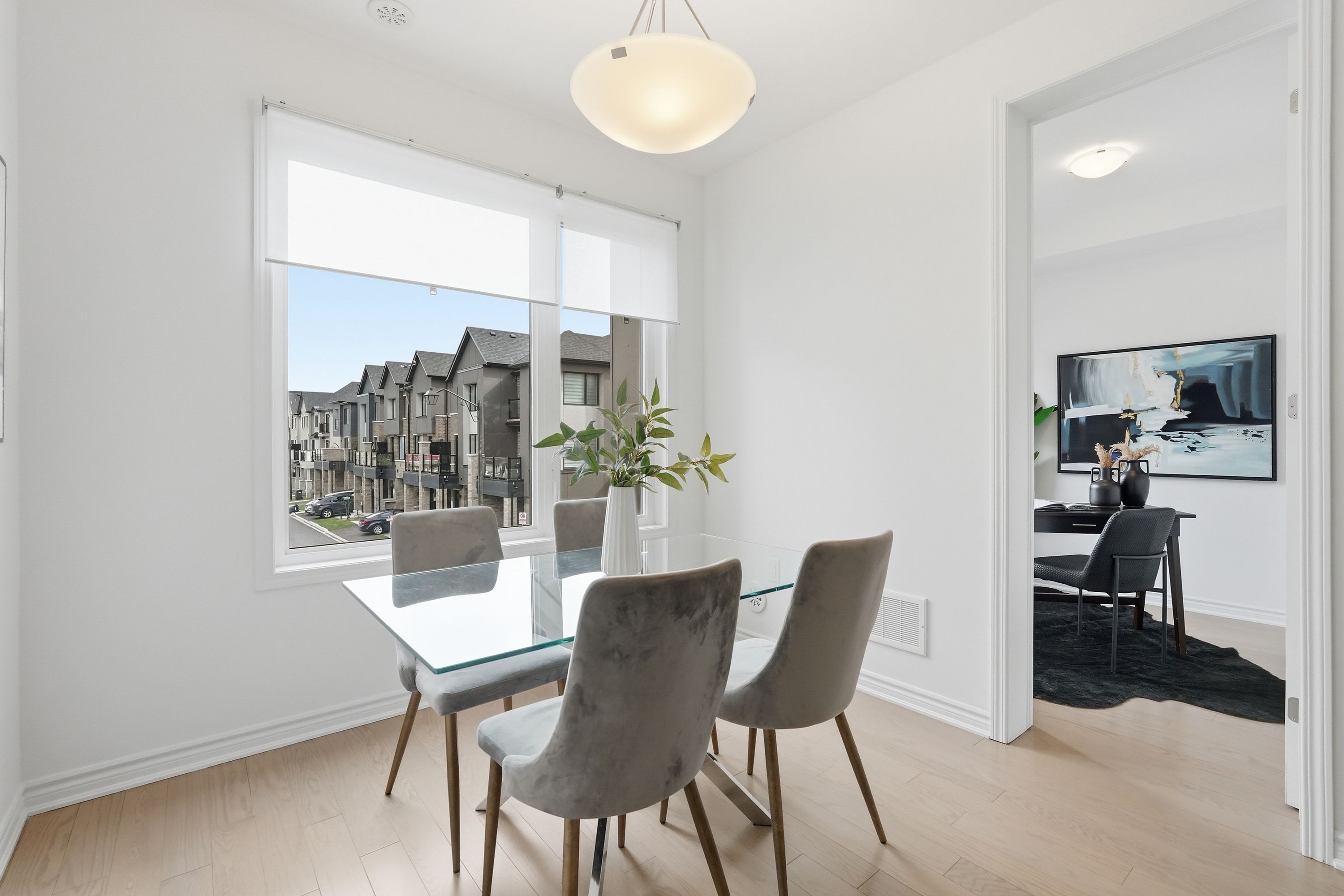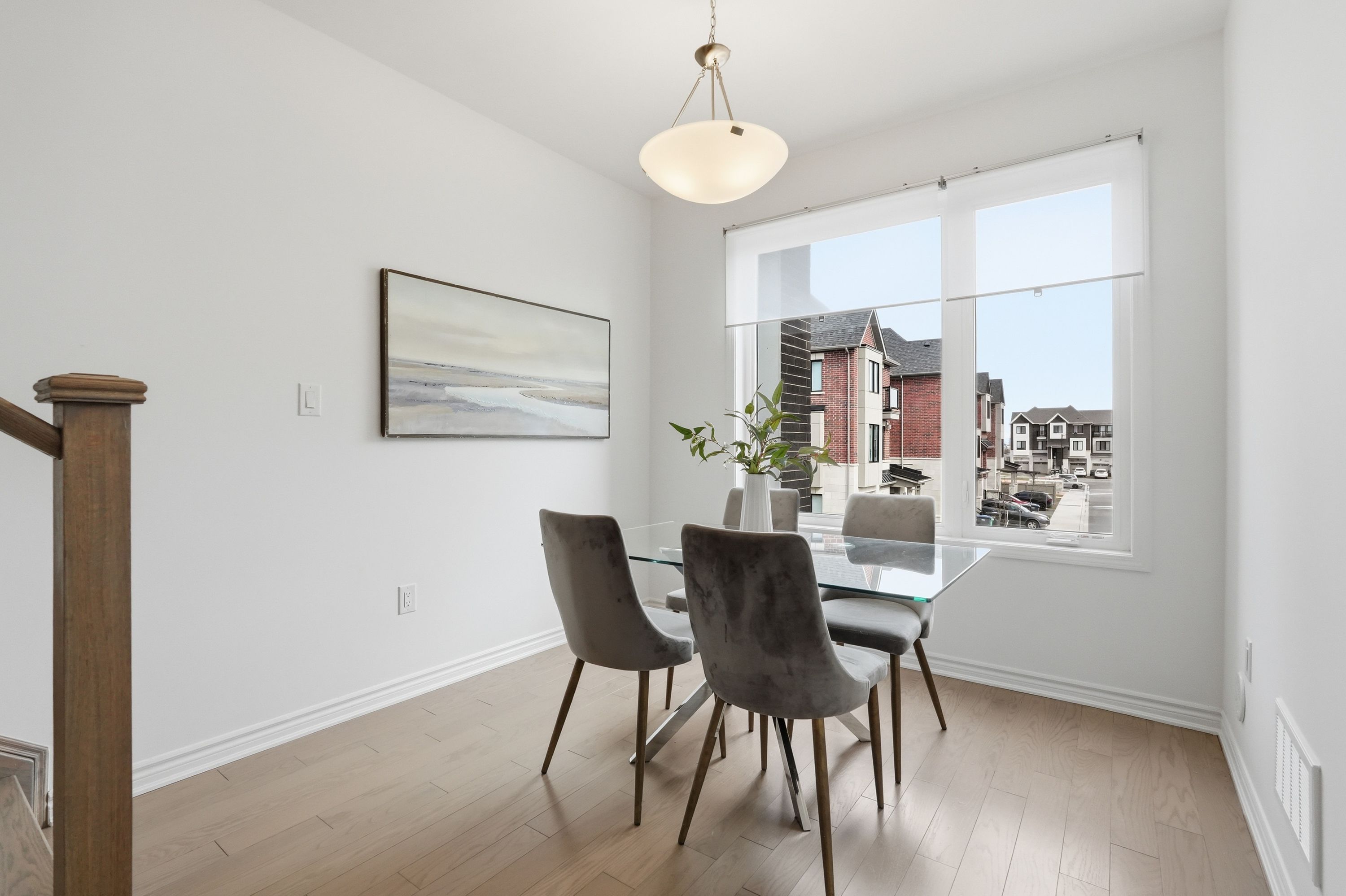 Step into this stunning modern townhouse nestled in the highly sought-after community of churchill meadows. Offering 4 bedrooms and 4 bathrooms with nearly 2,000 sq ft of above-grade living space, this home features a functional open-concept layout ideal for families and entertaining. The second level showcases a stylish white shaker kitchen with quartz countertops, flowing into a bright living area with a gas fireplace and walk-out to a private balcony, along with a spacious office perfect for working from home. Hardwood flooring throughout and an elegant oak staircase add a refined touch. The main level includes a generous bedroom and a convenient powder room, ideal for guests or extended family. Retreat to the primary bedroom featuring a walk-in closet, private balcony, and a well-appointed 3-piece ensuite with glass shower. Upper-level laundry adds everyday convenience. The unfinished basement offers endless potential with large upgraded windows and bathroom rough-ins, ready for your personal touch. Ideally located close to major highways, top-rated schools, shopping, transit, and parks, this home offers an exceptional blend of comfort, style, and convenience.