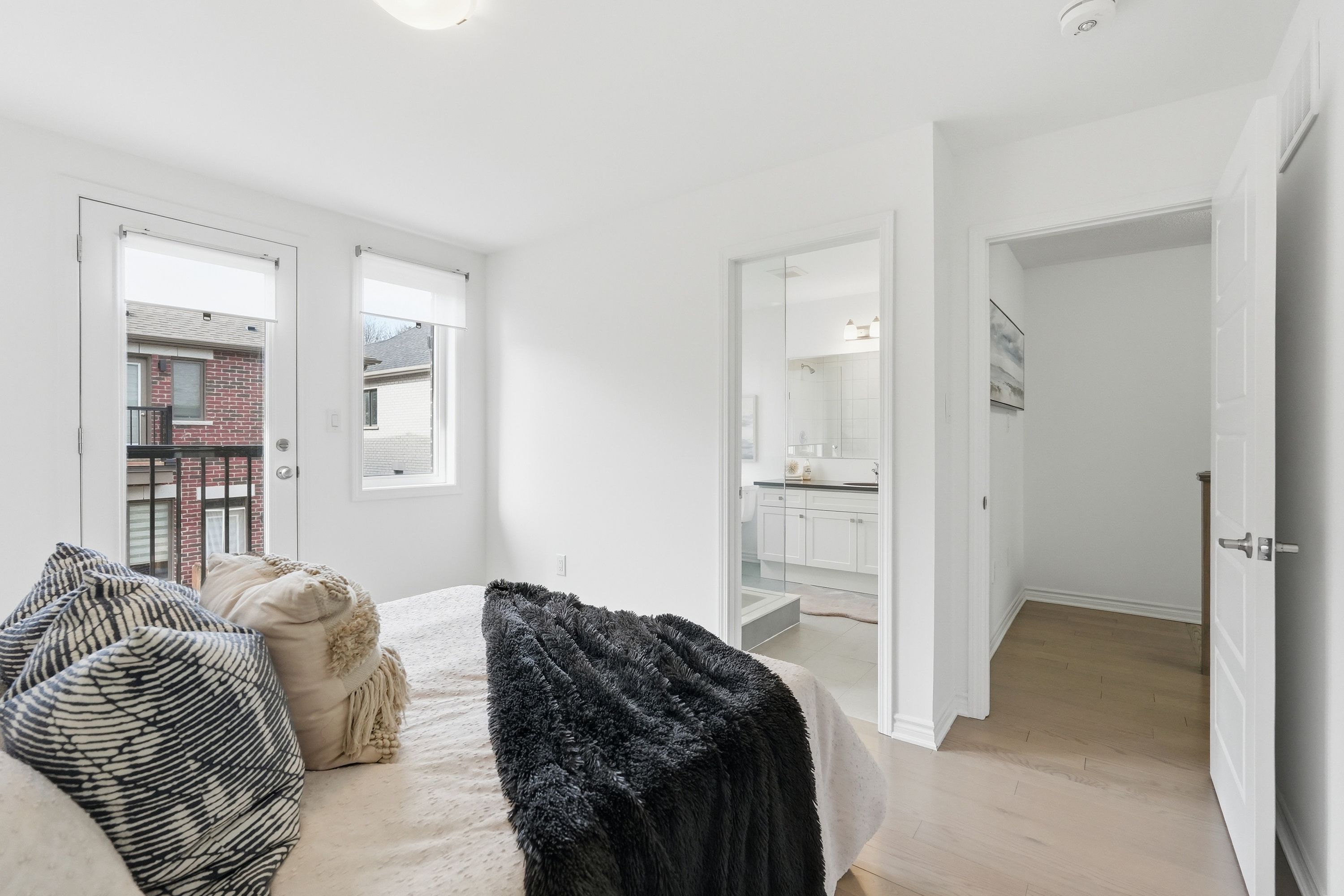 • Primary bedroom features a walk-in closet and private balcony for relaxation.