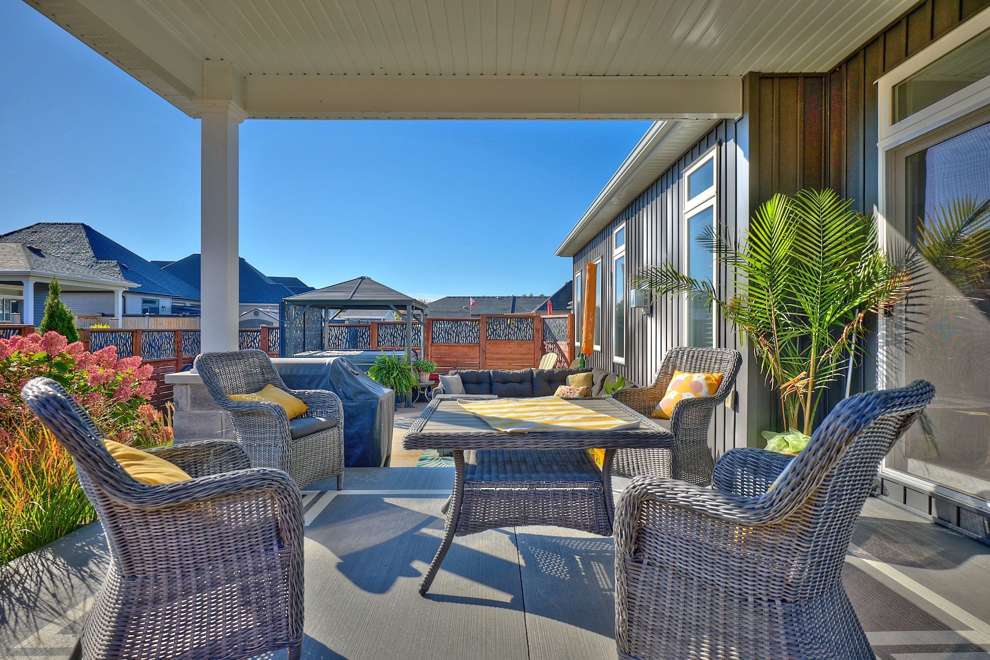 • Multiple outdoor areas for relaxation and entertaining, including a covered deck.