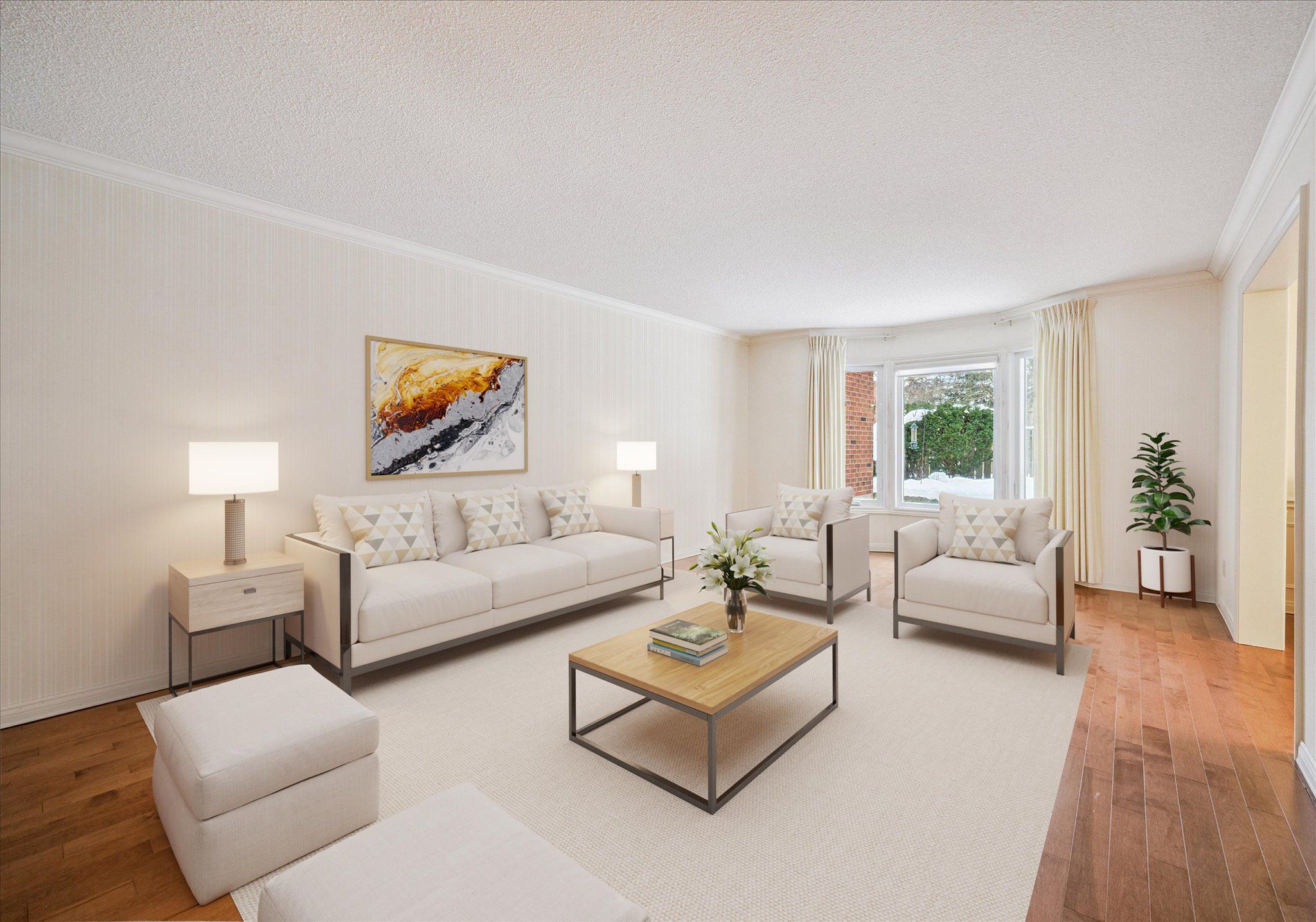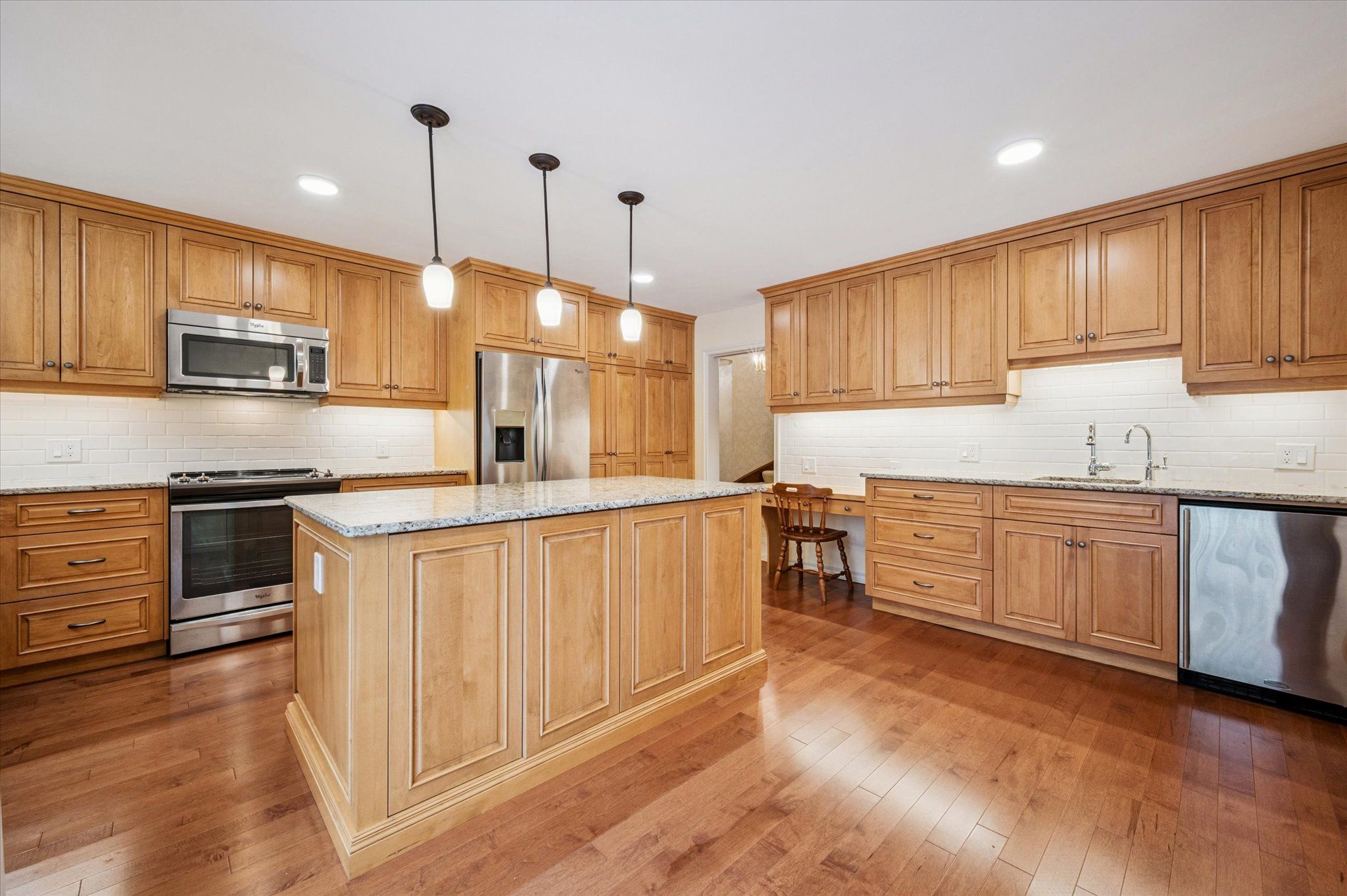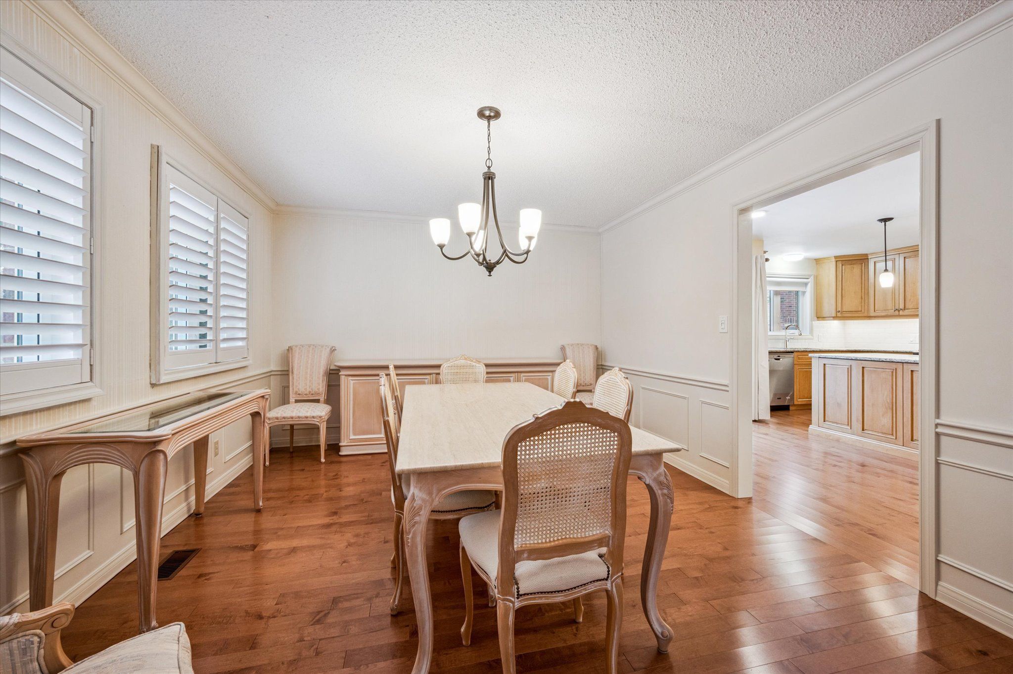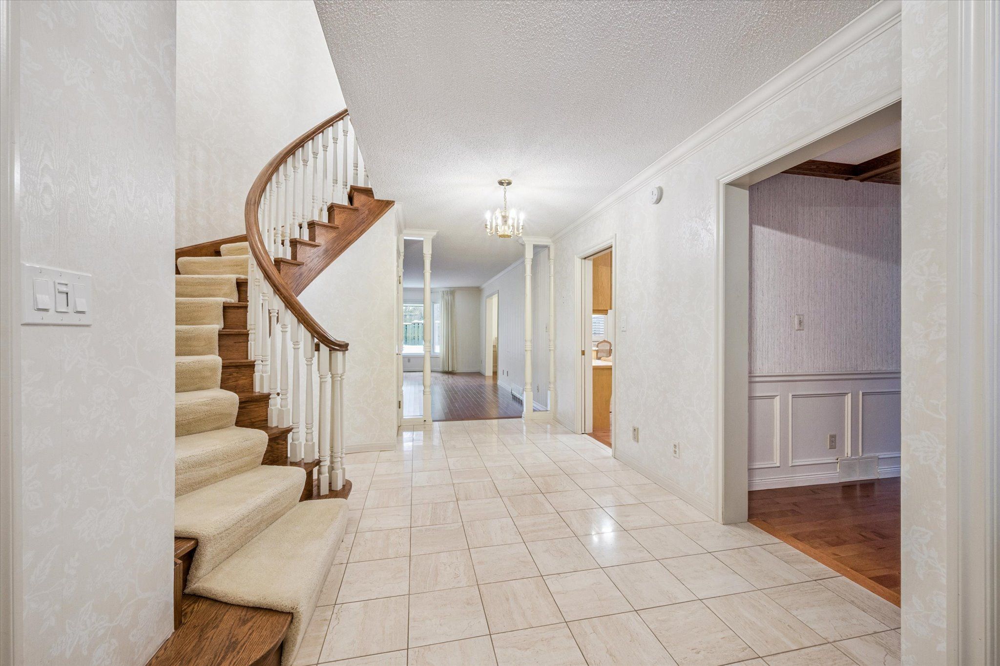 • Spacious tiled foyer and updated hardwood flooring throughout.
