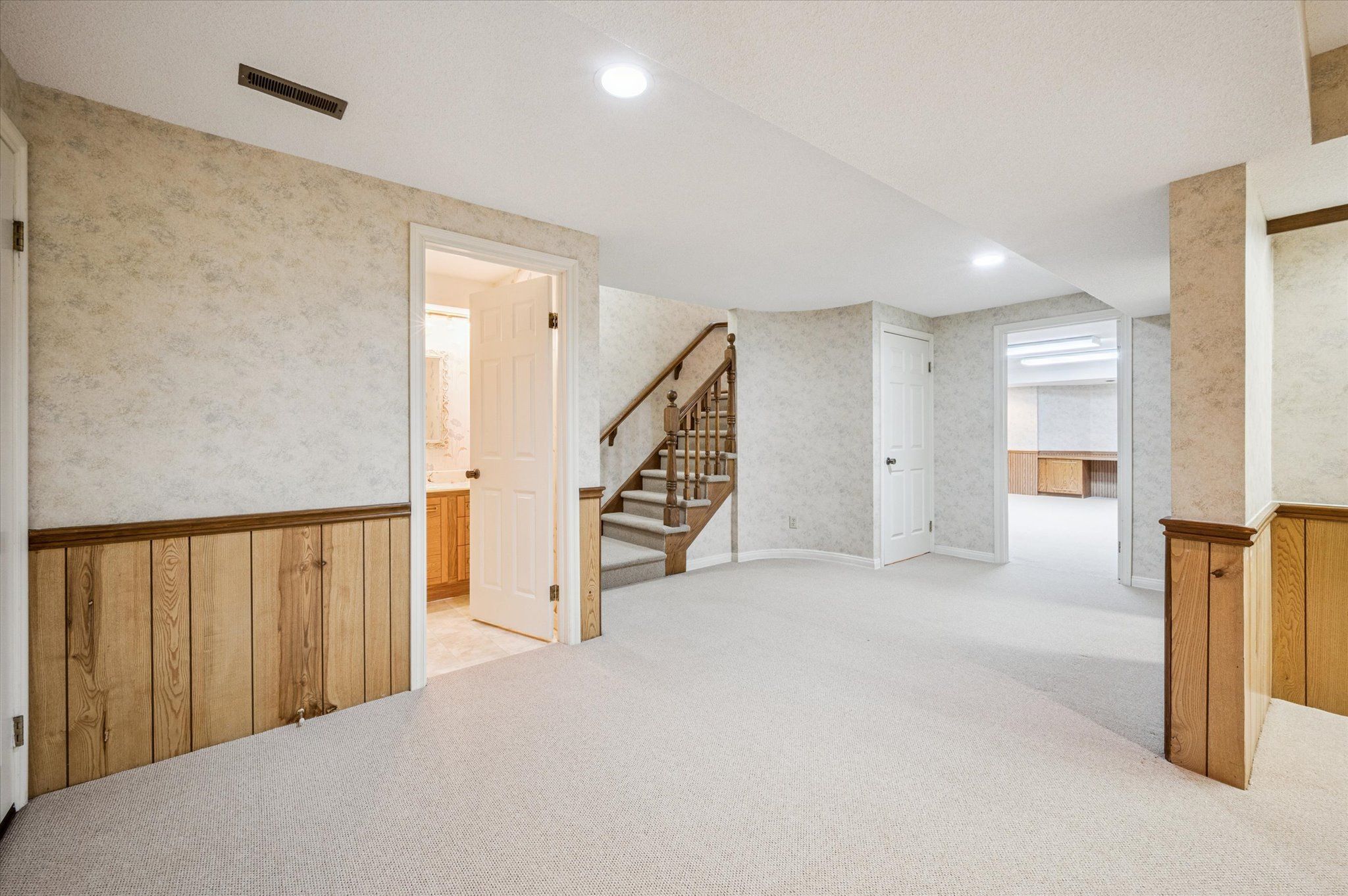 • Finished lower level with rec room, workshop, and ample storage.