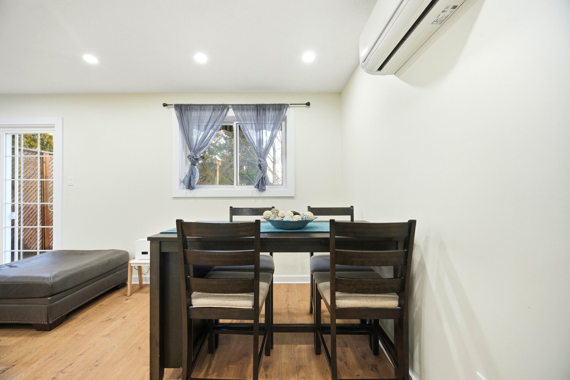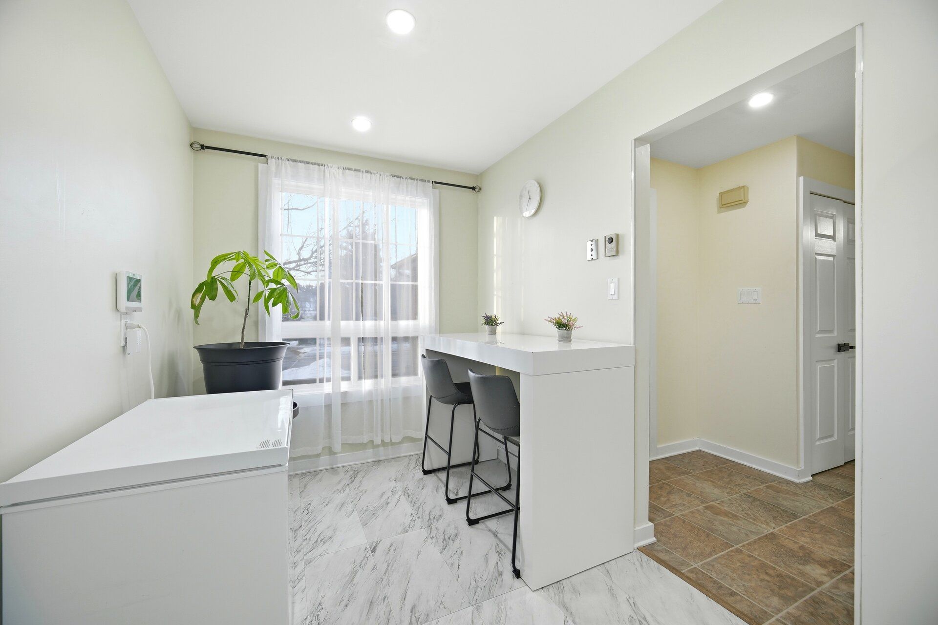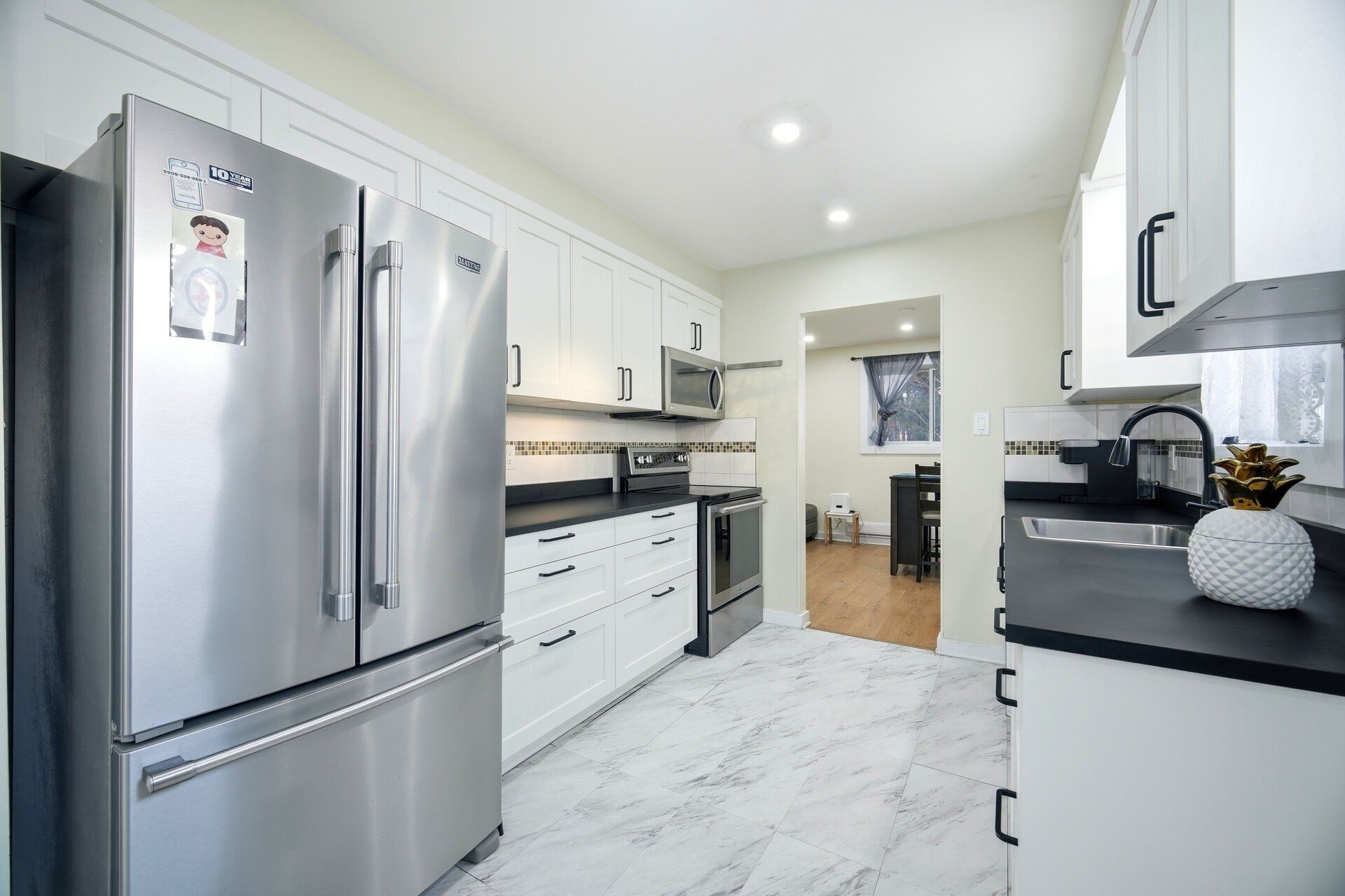 Welcome home to this charming 1,416 sq ft corner semi-detached gem-perfect for your family! Located across from w. H. Day elementary school and within walking distance to parks and shops, this beautifully updated home offers the space, comfort, and neighbourhood families love. Freshly painted and extensively renovated with a newer kitchen, newer windows and doors, newer laminate flooring, newer lighting and hardware, and a newer split heating/cooling system, this move-in-ready 3-bedroom home shows true pride of ownership enjoy family time in the finished basement rec room and outdoor living on the large private deck overlooking a peaceful 49-ft wide backyard. The fully renovated primary bathroom and organized walk-in closet create a relaxing retreat stop renting and start creating memories-this is the one you've been waiting for. Book your showing today!