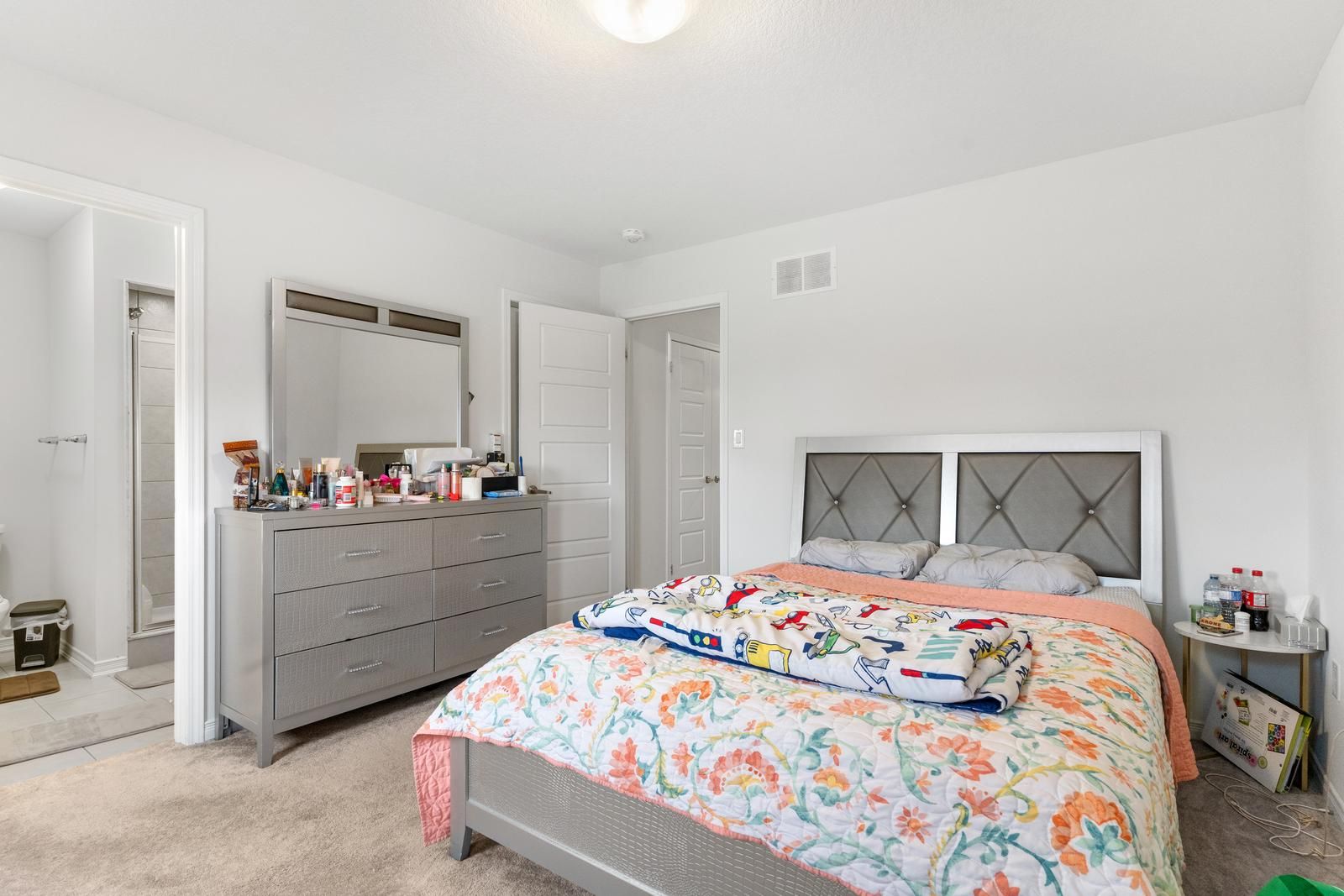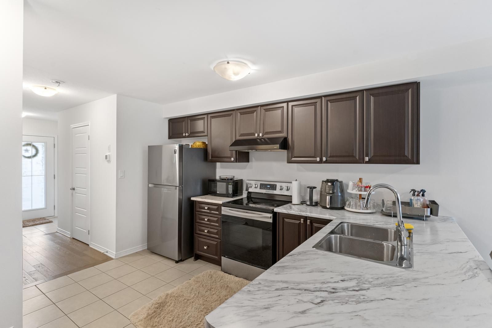 Welcome to 405 pumpkin pass where the country living and convenience walk hand and hand. This 3 bedroom. 2. 5 bathroom, freehold townhome is conveniently located in the heart of binbrook just steps from; conservation areas, community centers, shopping, golf, schools and parks. It has beautiful kitchen cabinetry and abundant counter space. The primary bedroom has a large walk in closet and a four piece ensuite . The basement has a large space to built in your own style, pot lights, large window, bar area, work out area, with storage available under the stairs and furnace room. The backyard has a beautiful wood deck and is fenced on both sides. This home is a must see and an excellent choice to live with a growing family.