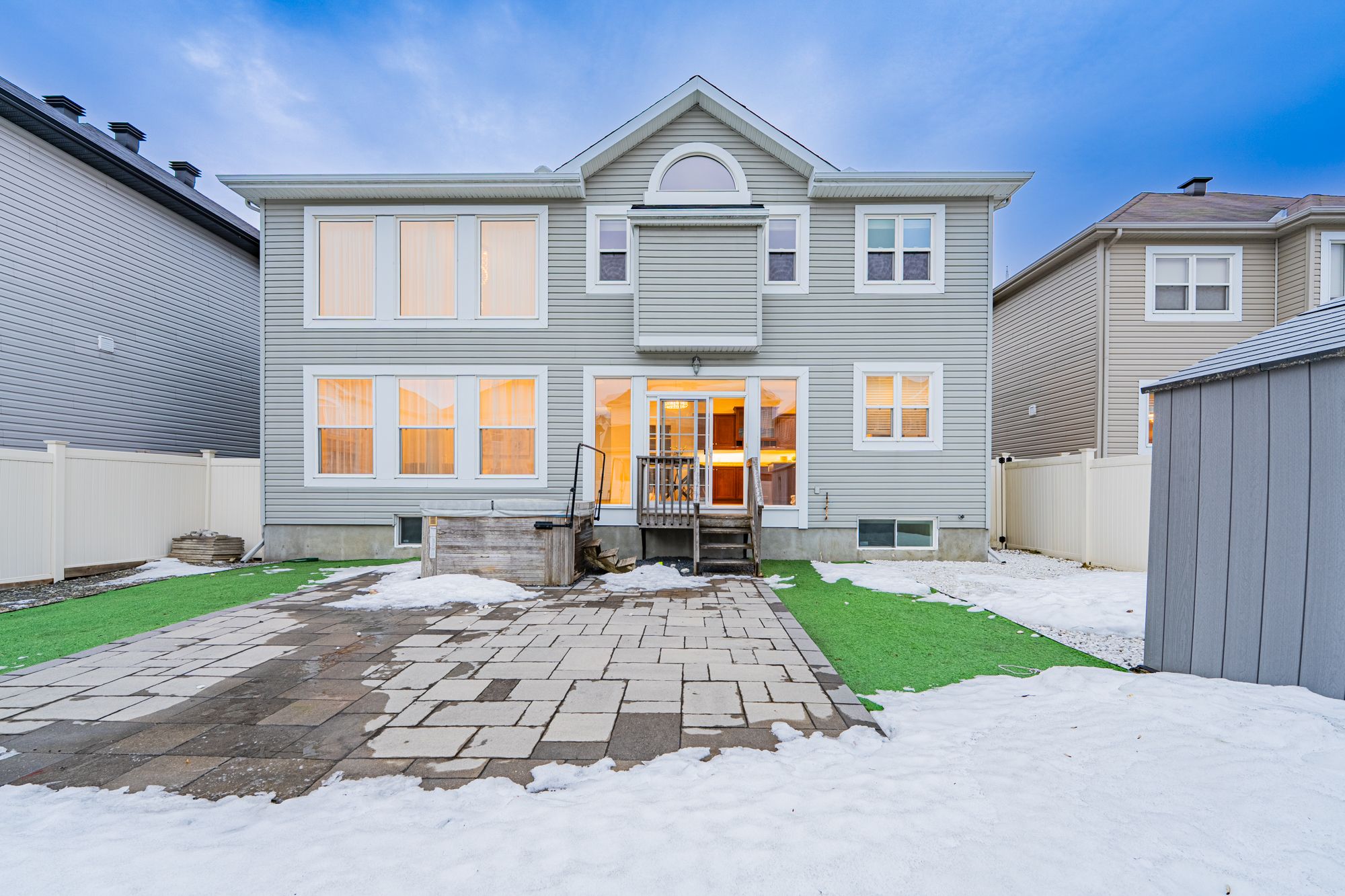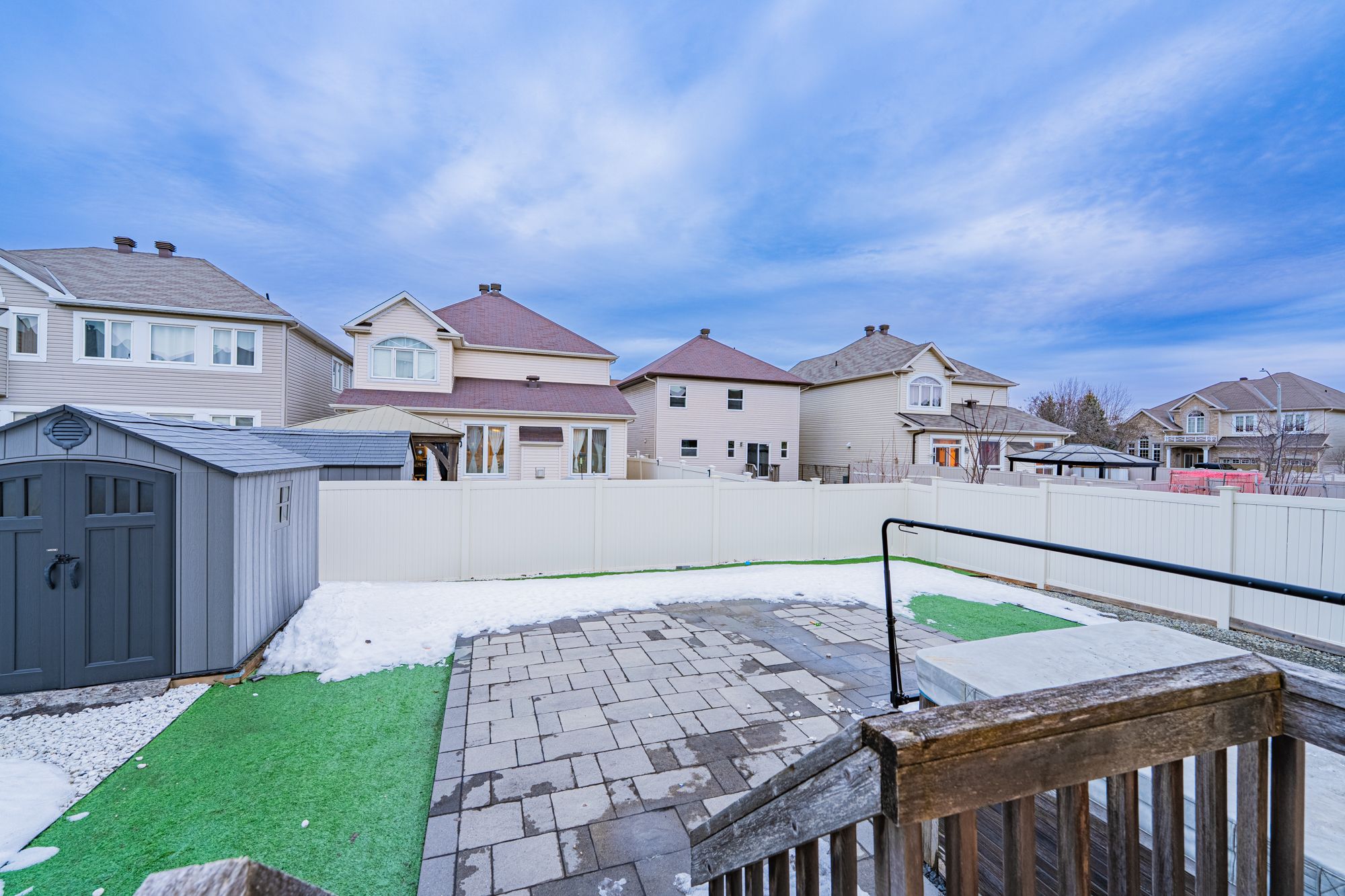 Rare find stunning home (3,596 sqft per build's plan) located next to costco and hwy 417 exit. Introduced by a welcoming foyer featuring a walkin closet & circular staircase. Leading to the living room with vaulted ceiling to the upper level. Generous dining room overlooking the huge windows from the living room & front foyer. The kitchen offers quartz counter tops & large walkin pantry. Spcious office which can be easily turned into a 5th bedroom. The family room is inviting with the open to above ceiling overlooking the upper level leading to the generous master bedroom with elevated ceilings, walkin closet & ensuite. This amazing home features 4 bedrooms, a finished basement with home theatre & lots of storage. Fenced yard with hot tub, front landscaping offers extended driveway.