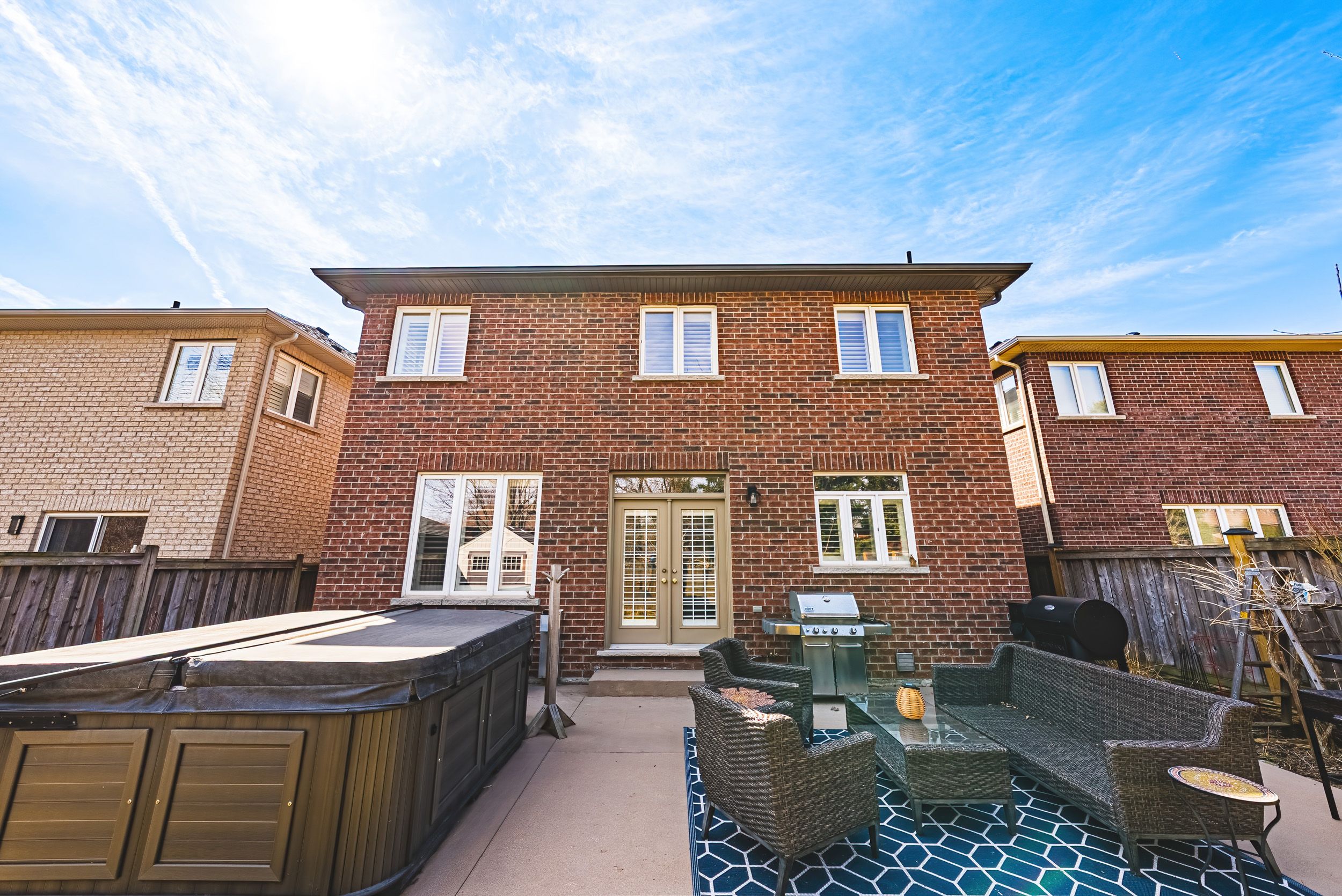 • Private landscaped backyard includes a gas BBQ hookup and a saltwater hot tub.