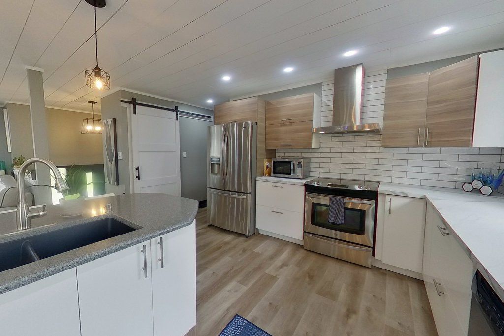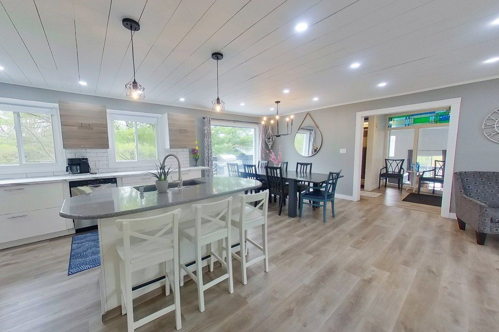 Escape to this captivating raised bungalow, nestled in a peaceful natural setting. Featuring 3+1 bedrooms, 3 baths and a 2nd kitchen. This home offers a luxurious lifestyle with its stunning indoor heated saltwater pool - enjoy summer year-round! Relax in the hot tub or unwind in the infrared sauna. The main floor offers 3 bedrooms and 2 bathrooms, complemented by an open-concept design. The kitchen, dining area, and living room flow seamlessly together, illuminated by an abundance of natural light streaming through the large main floor windows. The basement is fully equipped for multi-generational living offering a bright, finished lower-level with a walkout, a kitchen, a 4th bedroom and an exercise room. The property also features a generous 36' x 28' insulated shop with a 16' ceiling and 2 overhead doors, the front is 12' x 12' and the back is 8' x 8'. Attached to the shop is an oversized 2-car garage. Additionally, a garden shed is included to conveniently store your tools and outdoor equipment. With a pre-list home inspection completed, this unique property offers boundless opportunities. Don't let summer end - live it here every day of the year!