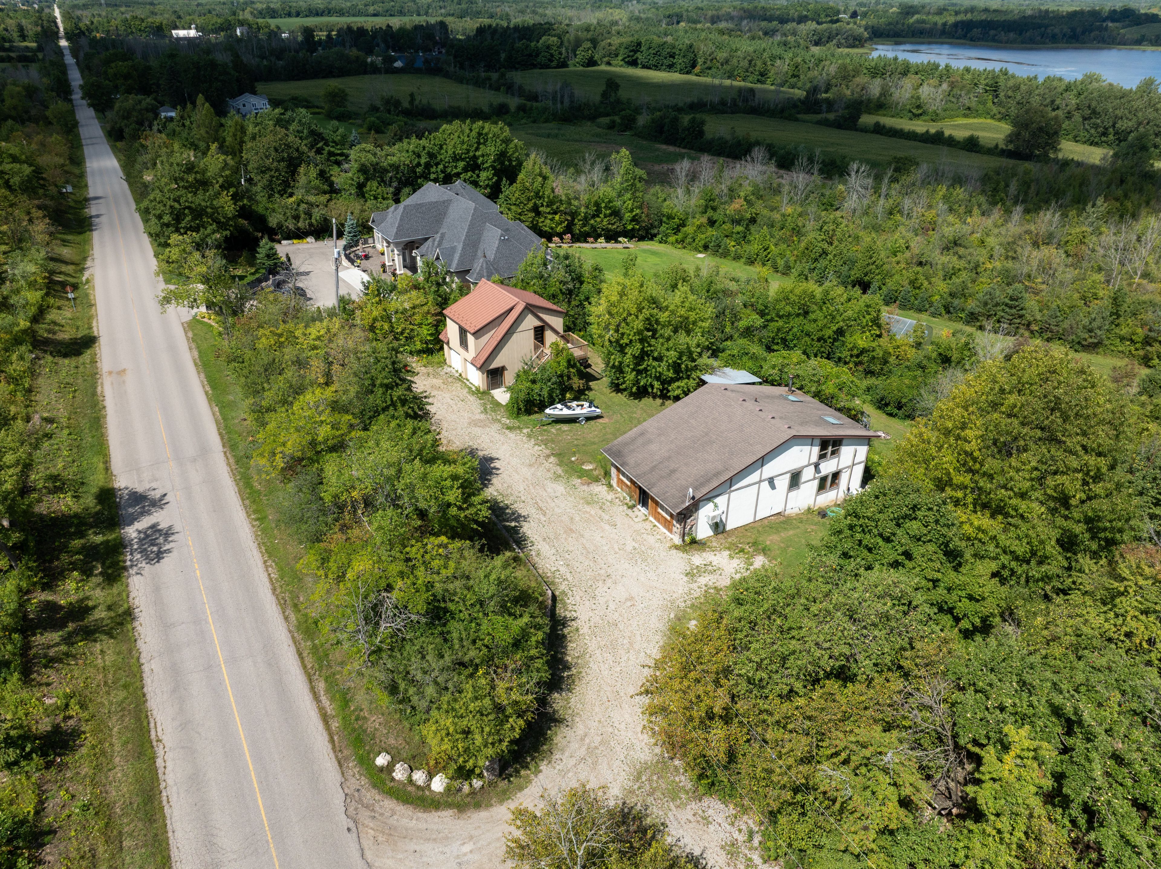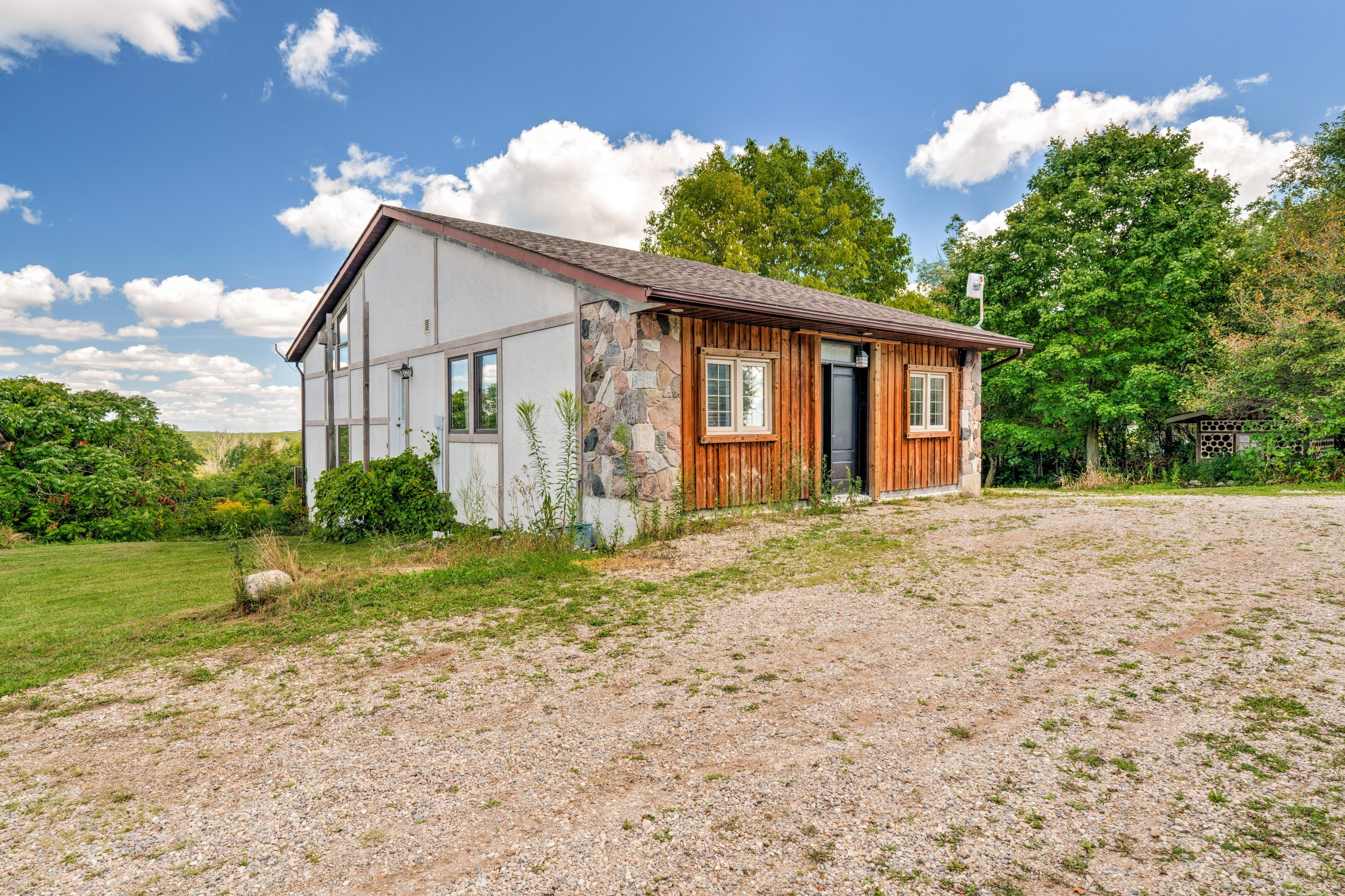 Uninterrupted water views await you! Nestled atop one of the highest points in puslinch and just minutes from the charming campbellville equestrian community, this unique opportunity invites you to either build your dream home (initial drawings and survey available)or reimagine the existing structure on a generous 1-acre lot (225 x 194 feet). Experience a beautiful nature sanctuary with stunning views of mountsberg reservoir, which spans 472 acres outside your door. Each morning, wake up to vibrant sunrises illuminating your backyard. The recently constructed garage measures 24x28 ft and is fully insulated, featuring three layers of high-density foam beneath engineered wood siding. It is framed with sturdy 2x6 lumber, topped with a durable steel roof, and equipped with a 100 amp electrical panel and an ev charger. With buried water and sewer lines running to the garage foundation, the upper level can easily be transformed into a workshop or studio apartment, enhancing the investment! This incredible setting isn't just a building lot; its also the perfect starter home for those dreaming of a country lifestyle that could become your family retreat. Currently, the property boasts a loft bungalow with an abundance of windows, a spacious great room, a luxurious kitchen ready for culinary adventures, and sleeping quarters with both a main floor bedroom and a whimsical loft bedroom. Theres also a wood stove, heat pumps, and ac. You'll also love the charming cordwood garden shed. Conveniently located close tohighway 401, commuting to guelph, burlington, hamilton, and the gta is easy. Experiences awaits nearby, including a boat launch where you can fish or paddle in your kayak or non-motorized boats. Additionally, you'll discover a variety of beautiful hiking trails and excellent fishing opportunities in the area, all surrounded by breathtaking scenery. Start planning your visit and be first in line for your new lifestyle and investment today!