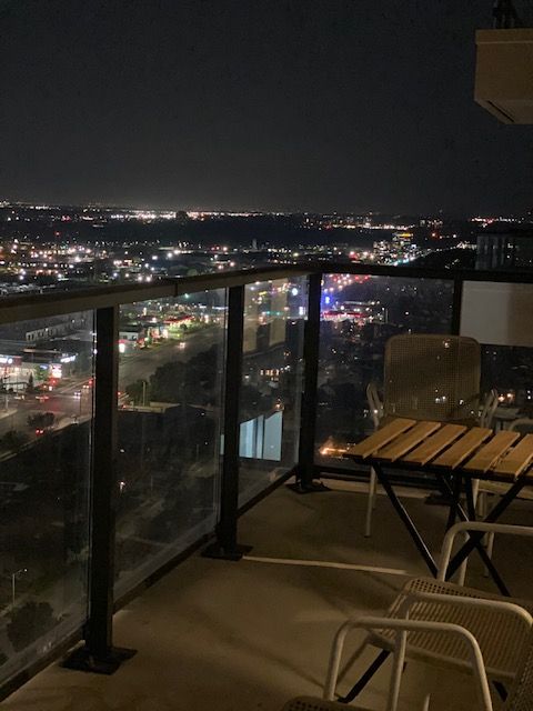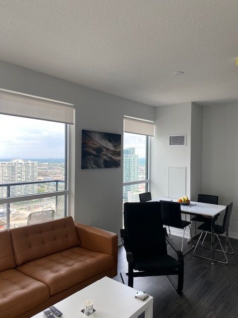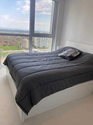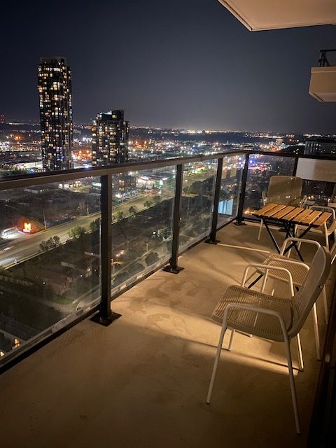 Furnished (or unfurnished)9 feet ceilings, unit features a massive outdoor l-shaped balcony, spacious open concept w/ laminate flooring throughout living/dining. Open concept den overlooking large kitchen w/ stainless steel appliances, breakfast bar, granite countertops & upgraded full glass cabinets. Just steps away from square one, library, ymca, city hall, living arts center, sheridan college & more.