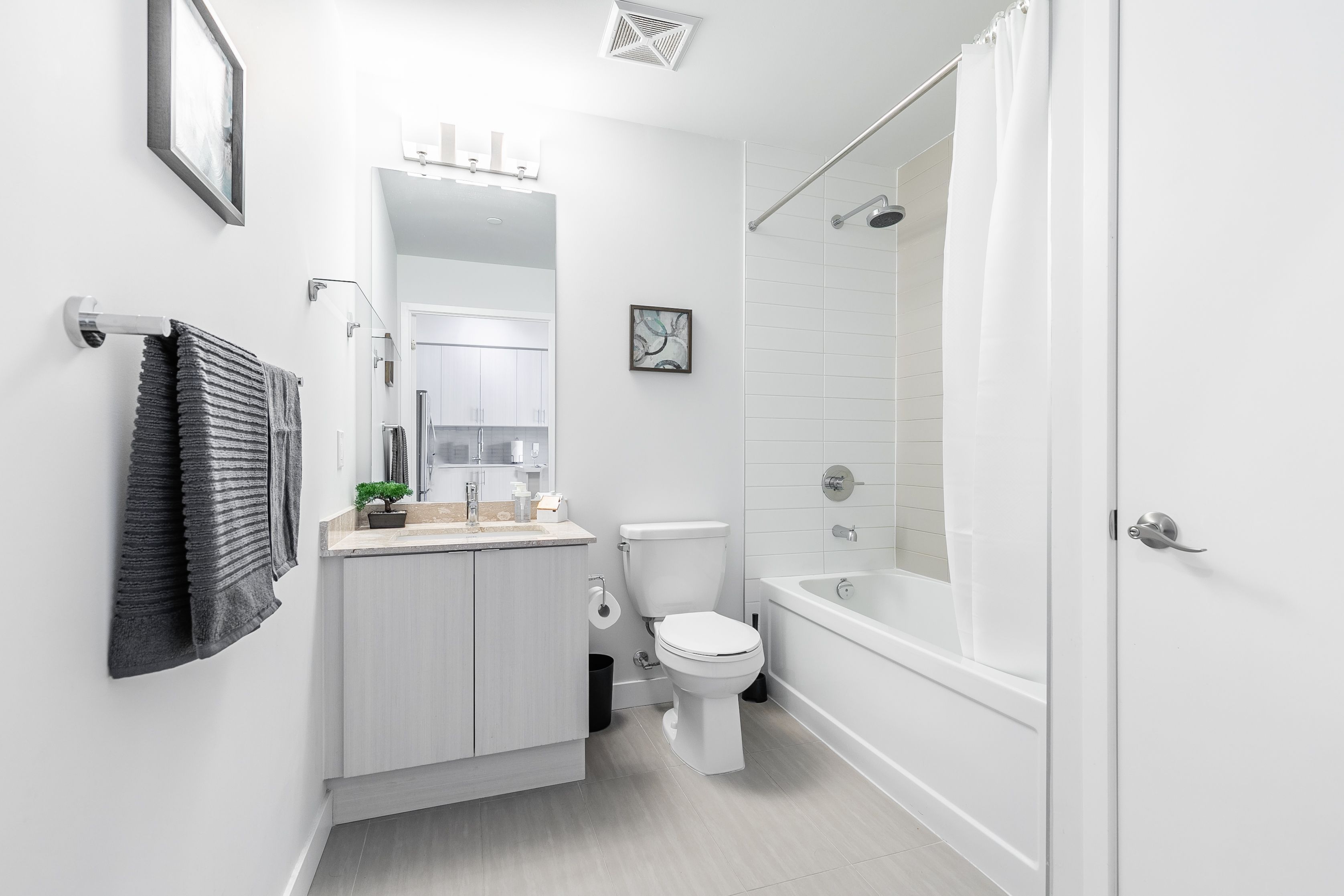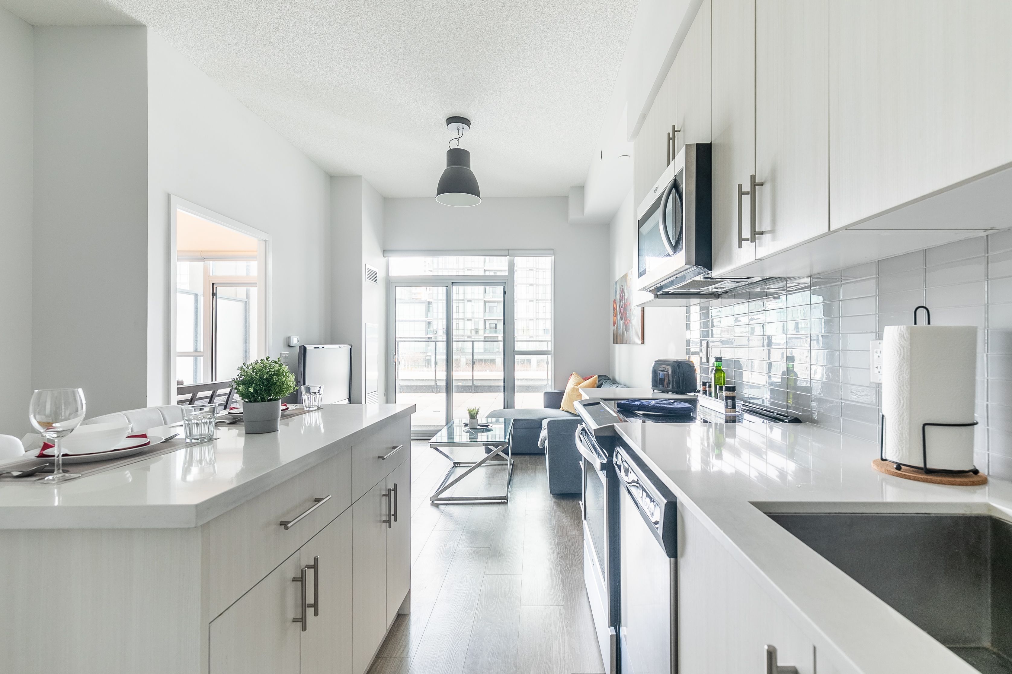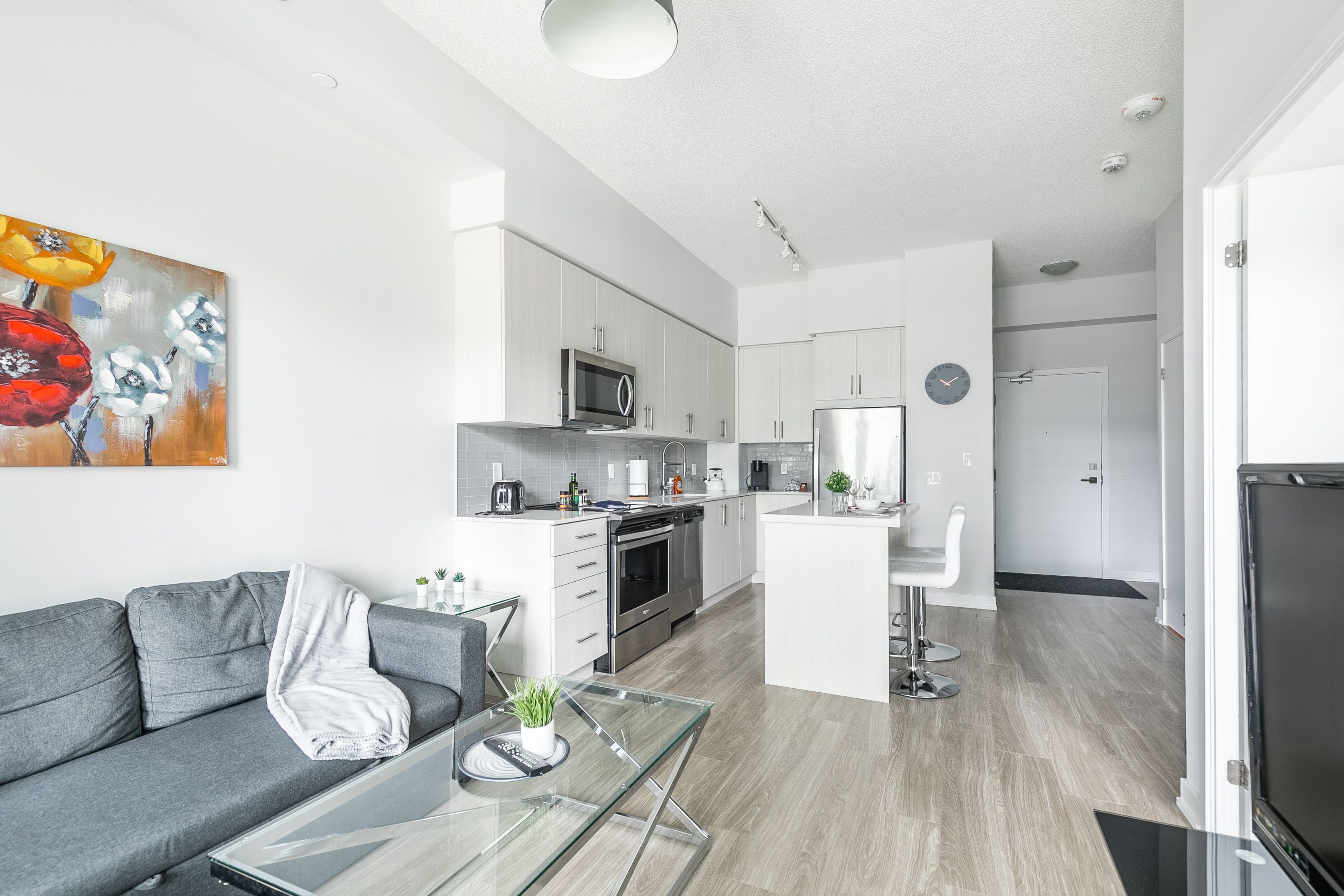 • Modern kitchen with stainless steel appliances included.