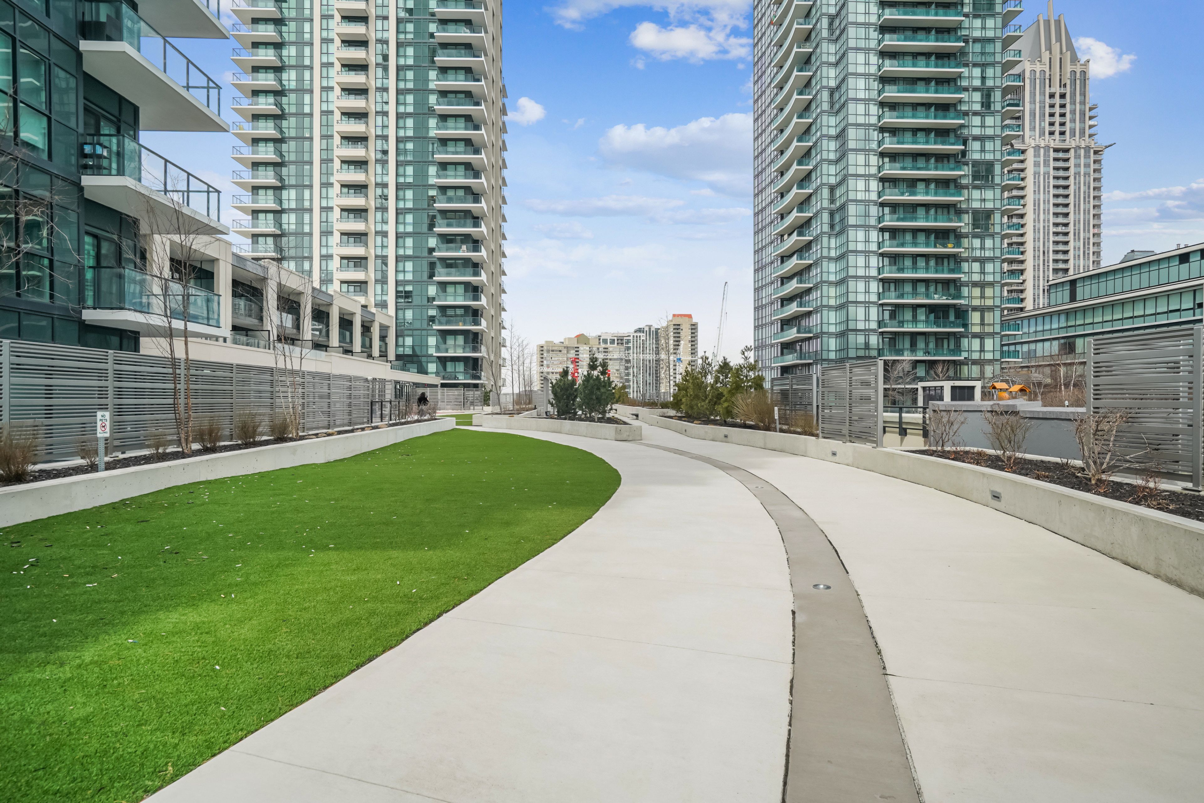 Welcome to block nine south tower, where modern city living meets comfort and convenience in the heart of mississauga, city centre. Step into a bright, airy space featuring 10-foot ceilings, floor-to-ceiling windows, and upgraded finishes throughout. The sleek kitchen is equipped with modern stainless-steel appliances, quartz counters, and ample cabinetry, flowing seamlessly into a spacious living and dining area ideal for entertaining. The den provides flexibility for a home office, dining nook, or nursery. Located steps from square one shopping centre, sheridan college, celebration square, transit terminals, restaurants, and parks. Easy access to hwy 403, 401, and qew makes commuting effortless.