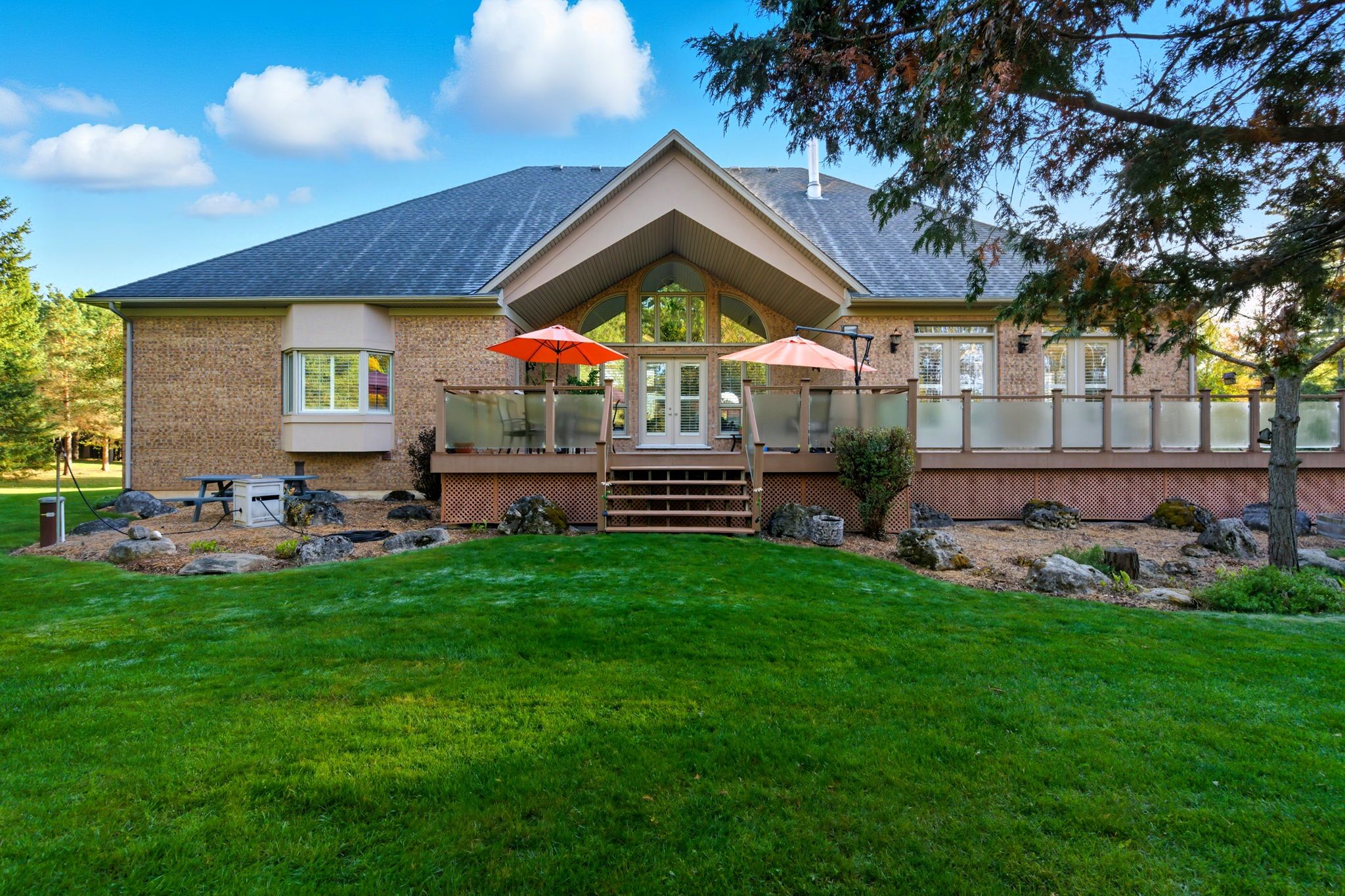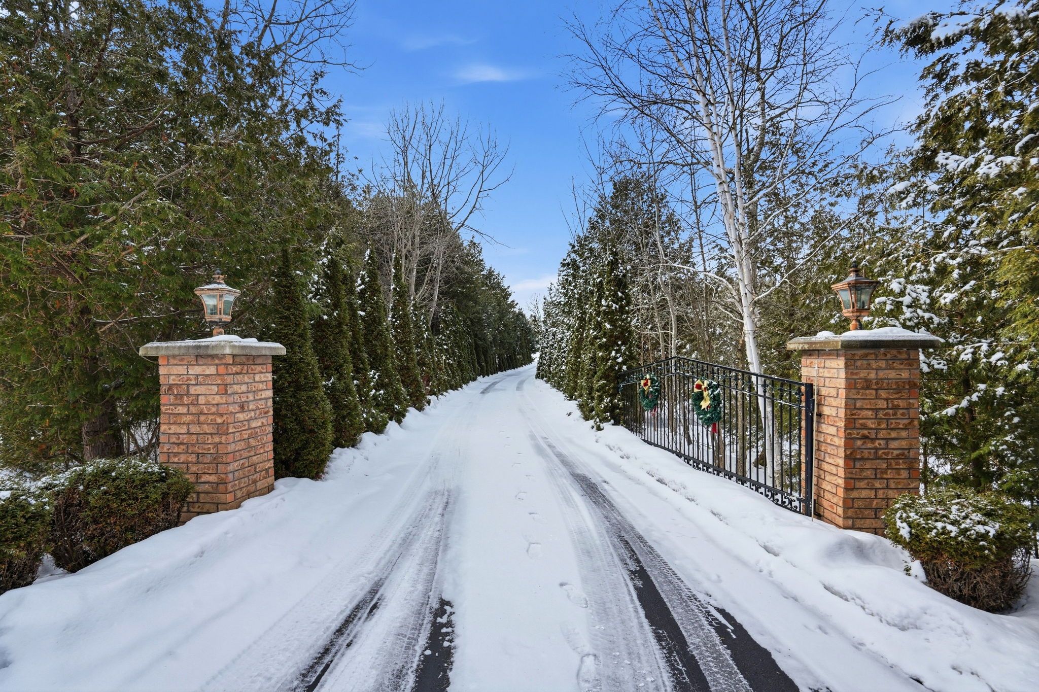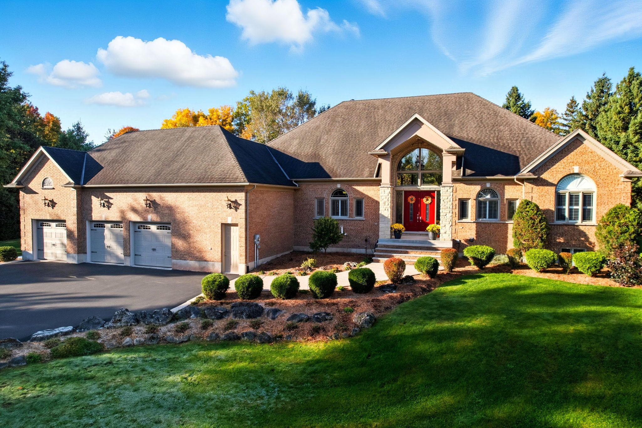 Welcome home to this exquisite custom bungalow, ideally positioned on the serene flamborough-puslinch border. This residence offers more than 6,000 square feet of refined living space, highlighted by a spacious triple-car garage and set on over 4 acres of tranquil, private grounds featuring a charming pond. Secluded from the road for complete privacy, the property welcomes you through a gated entry and a picturesque, tree-lined driveway leading to the home. Upon entering, a grand great room captivates with dramatic 17-foot ceilings and a striking floor-to-ceiling napoleon wood-burning fireplace that frames stunning panoramic views of the lush landscape beyond. The main level features three expansive bedrooms and three full bathrooms, complemented by luxurious 10-foot ceilings throughout for an airy, open atmosphere. At the heart of the home lies a spectacular kitchen, boasting premium cabinetry, a generous centre island, and elite appliances-including a professional-grade, commercial-sized wolf gas range. The fully finished lower level is bathed in abundant natural light from generous egress windows, creating a bright and inviting space. It includes a spacious bedroom, a luxurious full bathroom with an oversized spa-like walk-in shower, a comfortable family room, a second full kitchen, and plentiful storage-ideal as a private teenager retreat, in-law suite, or multi-generational living area. Enjoy ultra-fast, reliable fibre optic wifi throughout the home, supporting seamless streaming, remote work, and smart-home integration. With convenient proximity to major highways-including highway 401 and highway 403-this exceptional location blends rural tranquility with effortless commuting to hamilton, guelph, toronto, and beyond. Combining privacy, generous proportions, superior craftsmanship, and prime highway access, this extraordinary property is a true rarity-don't miss the opportunity to make it yours! Rsa.
