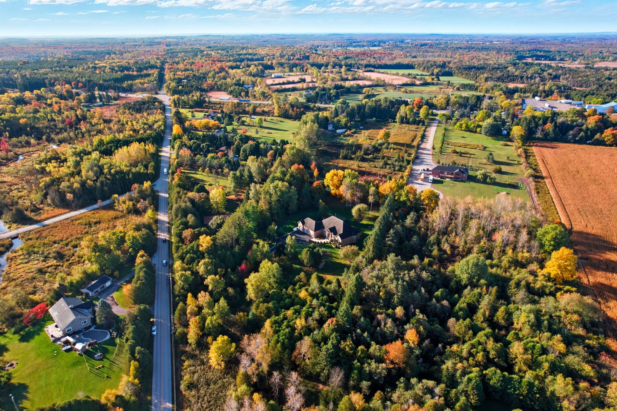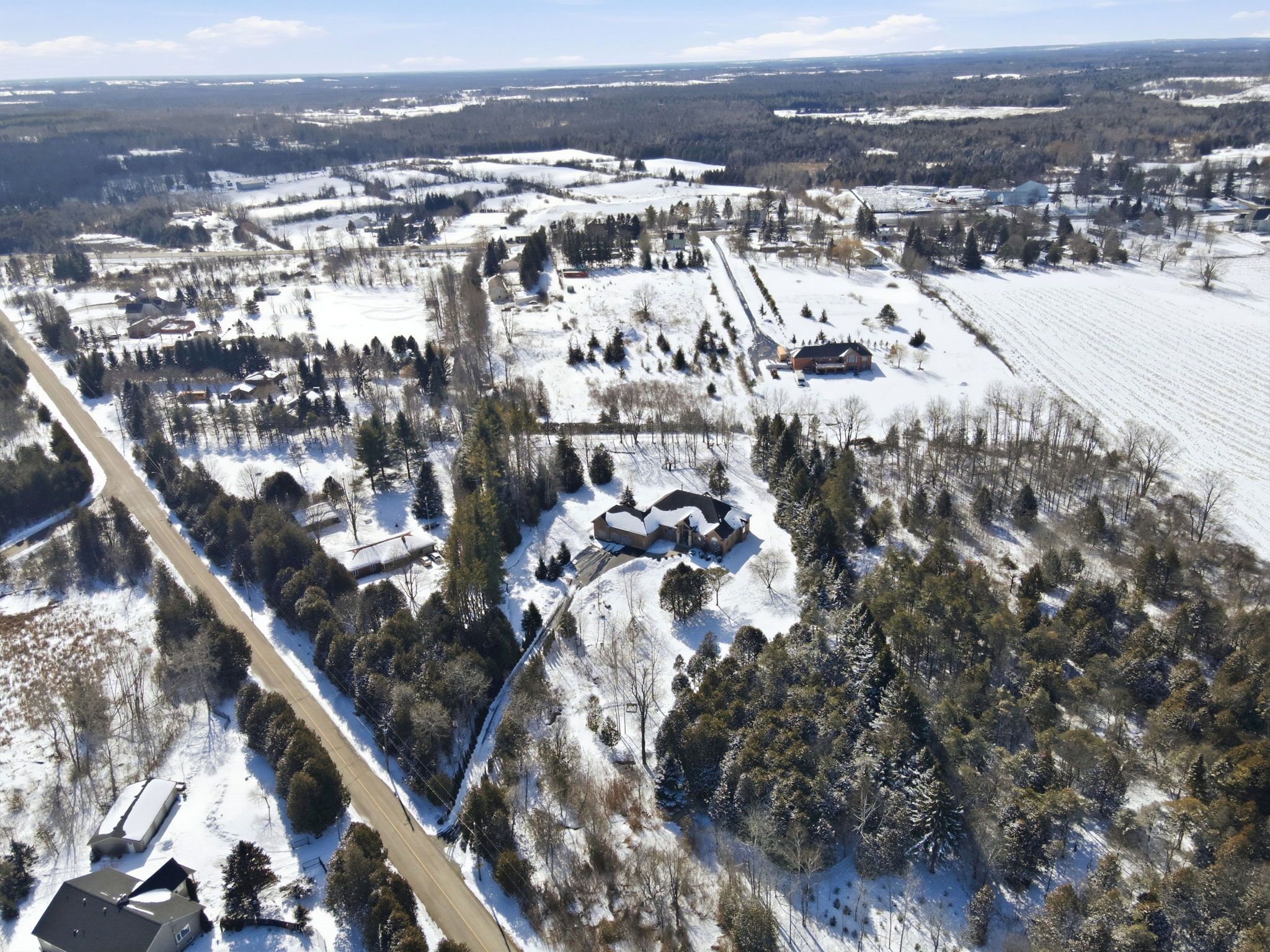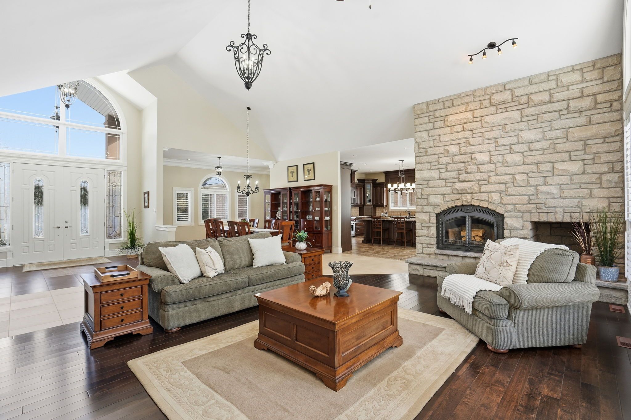 Welcome home to this exquisite custom bungalow, ideally positioned on the serene flamborough-puslinch border. This residence offers more than 6,000 square feet of refined living space, highlighted by a spacious triple-car garage and set on over 4 acres of tranquil, private grounds featuring a charming pond. Secluded from the road for complete privacy, the property welcomes you through a gated entry and a picturesque, tree-lined driveway leading to the home. Upon entering, a grand great room captivates with dramatic 17-foot ceilings and a striking floor-to-ceiling napoleon wood-burning fireplace that frames stunning panoramic views of the lush landscape beyond. The main level features three expansive bedrooms and three full bathrooms, complemented by luxurious 10-foot ceilings throughout for an airy, open atmosphere. At the heart of the home lies a spectacular kitchen, boasting premium cabinetry, a generous centre island, and elite appliances-including a professional-grade, commercial-sized wolf gas range. The fully finished lower level is bathed in abundant natural light from generous egress windows, creating a bright and inviting space. It includes a spacious bedroom, a luxurious full bathroom with an oversized spa-like walk-in shower, a comfortable family room, a second full kitchen, and plentiful storage-ideal as a private teenager retreat, in-law suite, or multi-generational living area. Enjoy ultra-fast, reliable fibre optic wifi throughout the home, supporting seamless streaming, remote work, and smart-home integration. With convenient proximity to major highways-including highway 401 and highway 403-this exceptional location blends rural tranquility with effortless commuting to hamilton, guelph, toronto, and beyond. Combining privacy, generous proportions, superior craftsmanship, and prime highway access, this extraordinary property is a true rarity-don't miss the opportunity to make it yours! Rsa.