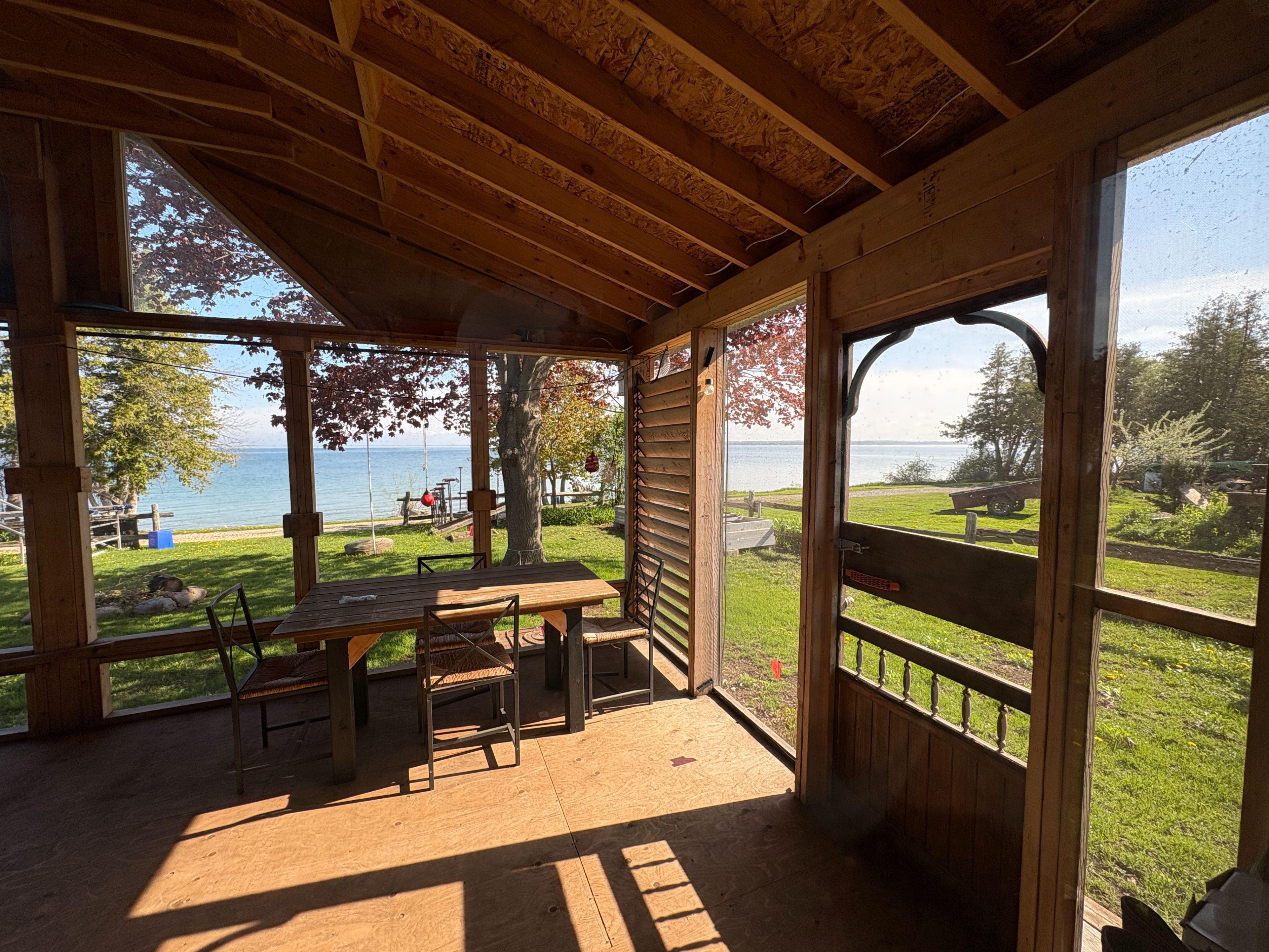 • Enjoy lake views from a screened-in sun porch and private bunkies.