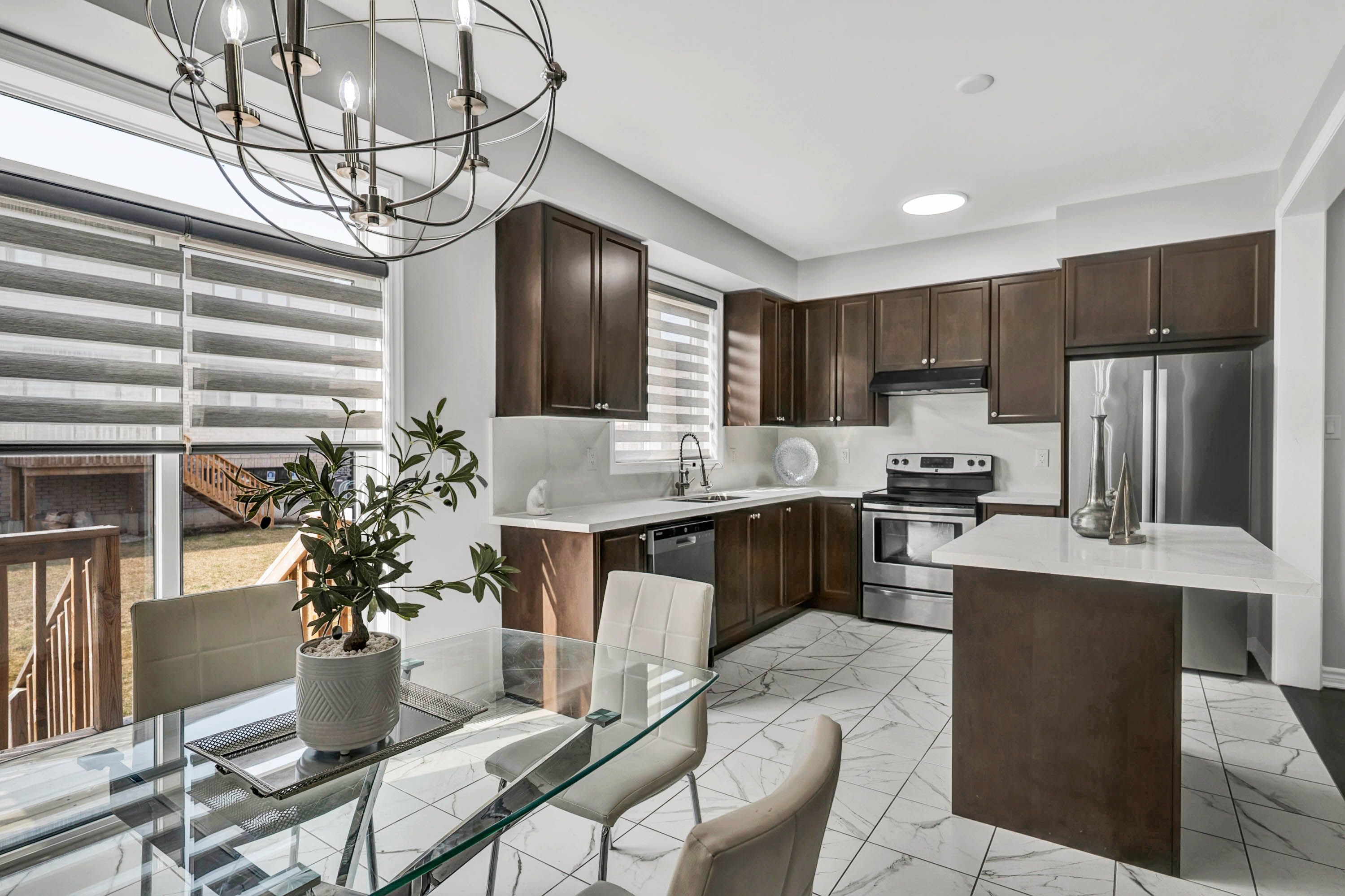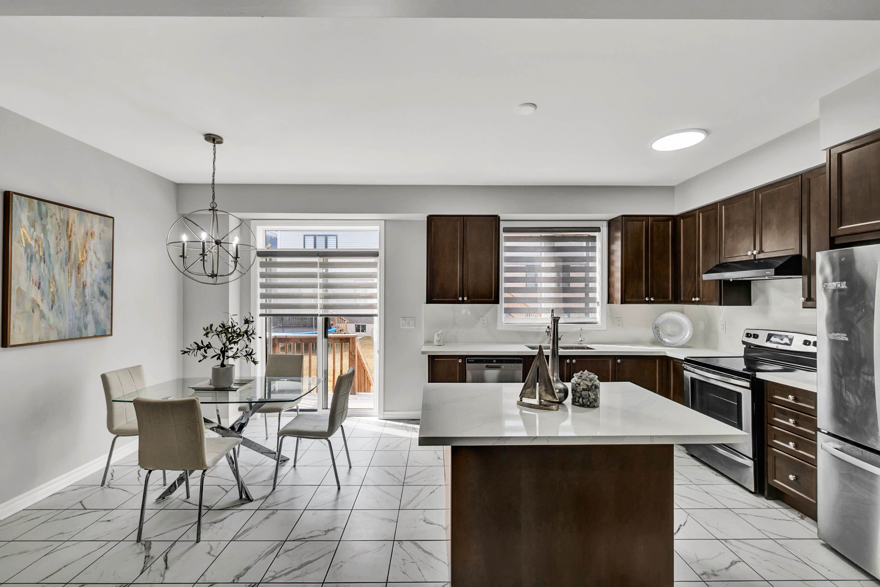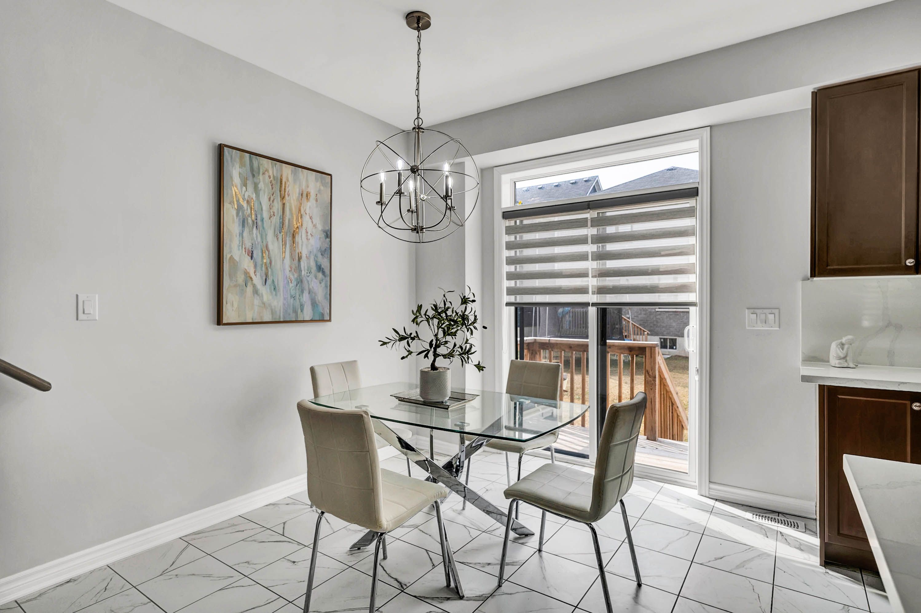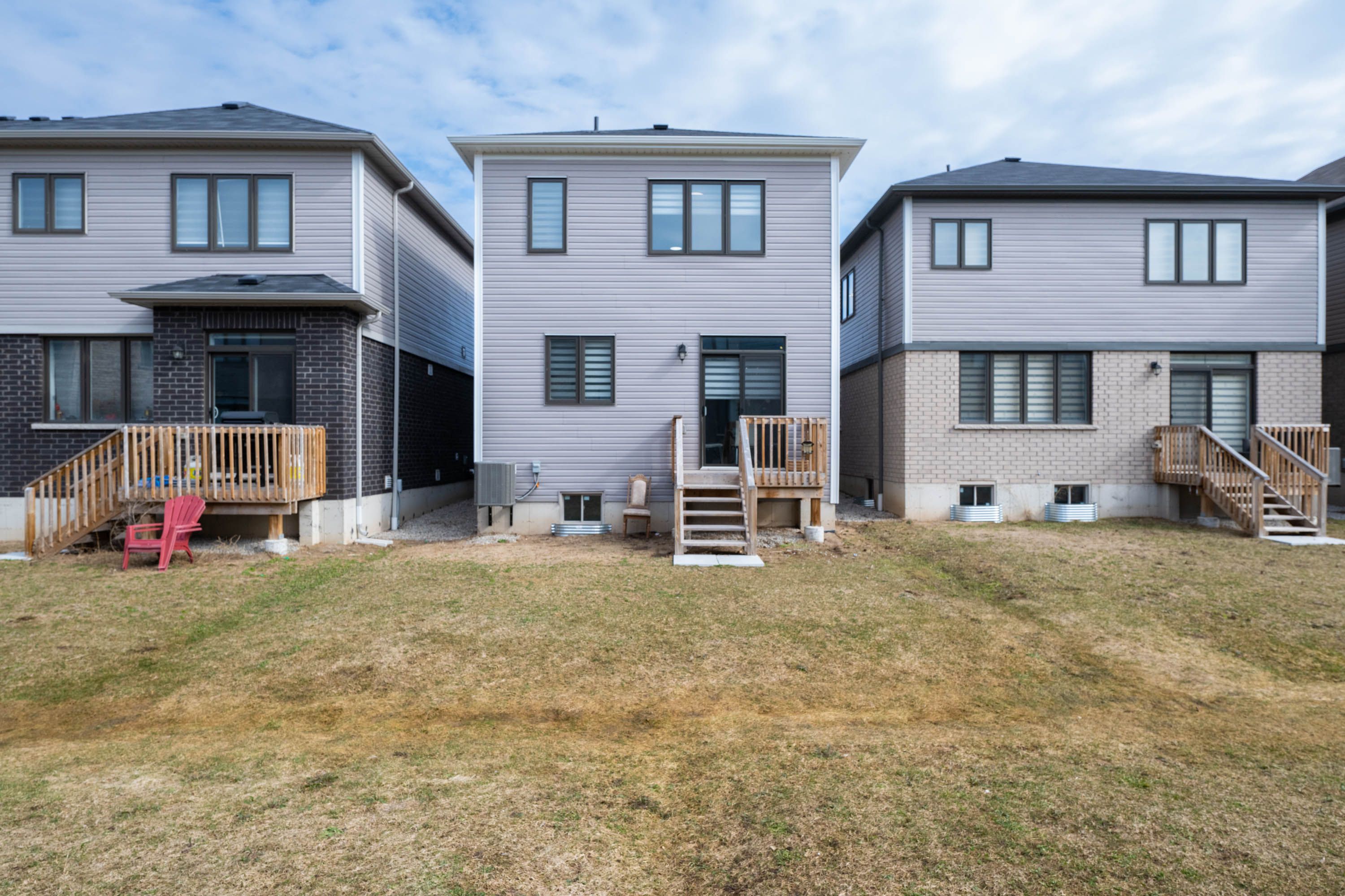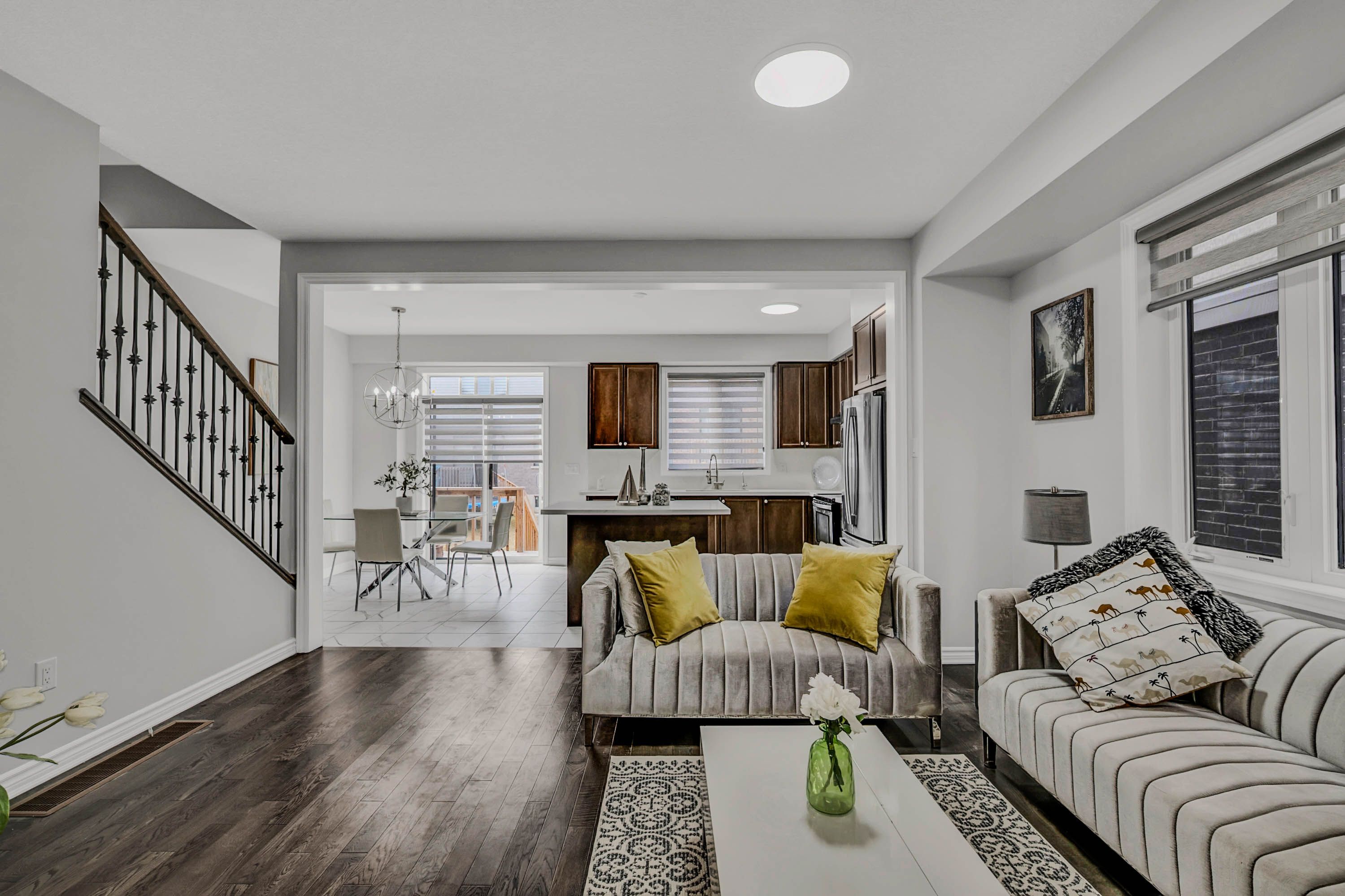 Nestled in the beautiful community of breslau, 406 dolman street offers a modern inviting 3-bedroom, 2. 5-bath home that blends comfort with contemporary upgrades. This home enjoys a desirable east-facing orientation, offering abundant morning sunlight and a bright, welcoming ambiance throughout the day. Featuring a double-door entry, 9-foot ceilings, and hardwood flooring throughout the main level, the home welcomes you with spaciousness and style. The beautiful kitchen showcases stainless steel appliances, quartz countertops and overlooks a deep backyard complete with a deck, perfect for relaxing or entertaining. An oak staircase with iron pickets, upgraded washroom vanities, and large interior doors add to the refined feel of this property. Practicality is built in with a deep lot, big closets for ample storage, and parking for two cars on the driveway plus one in the garage. Warm, well-kept, and thoughtfully designed, this is a cozy home ideal for families or anyone seeking a comfortable modern living space.