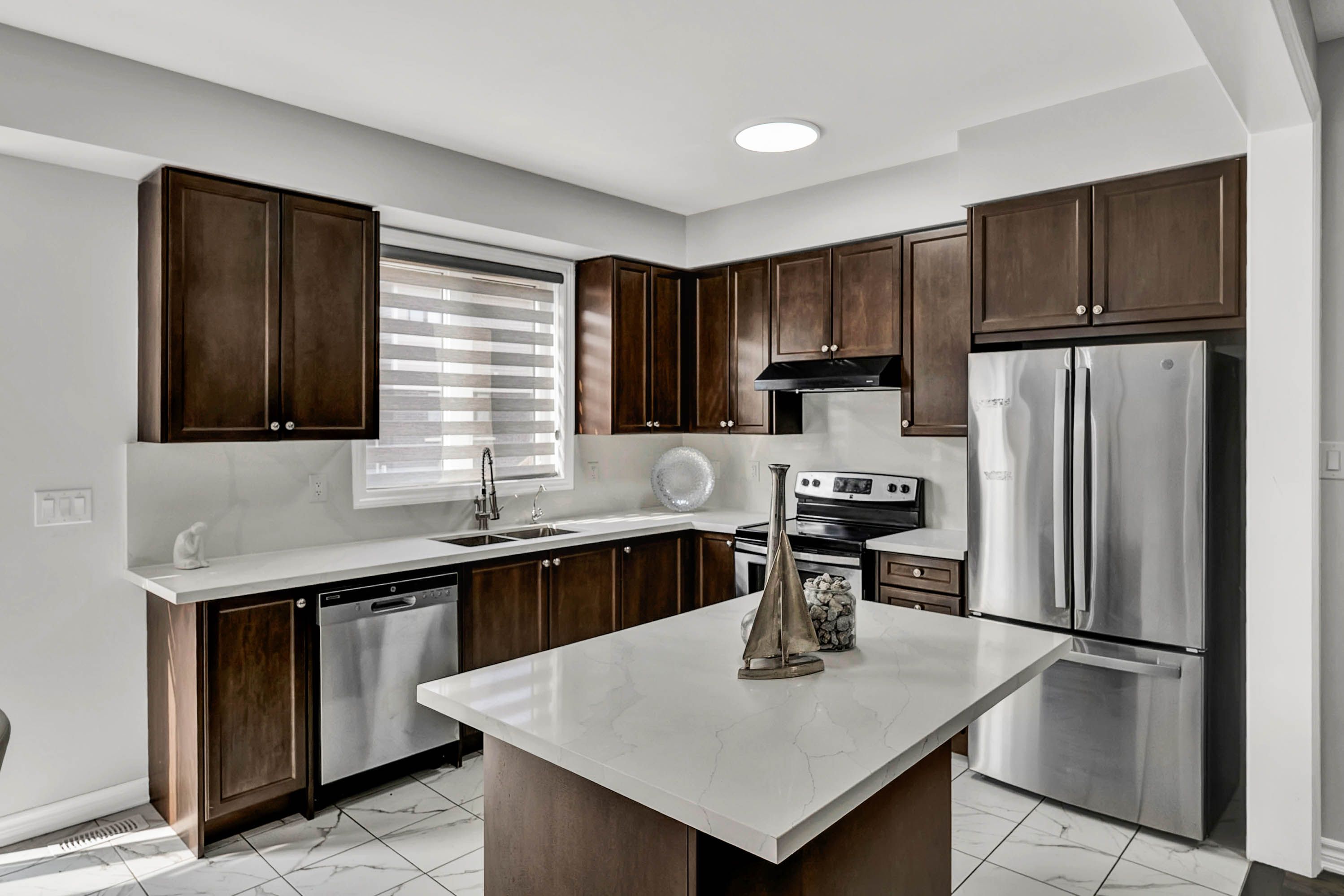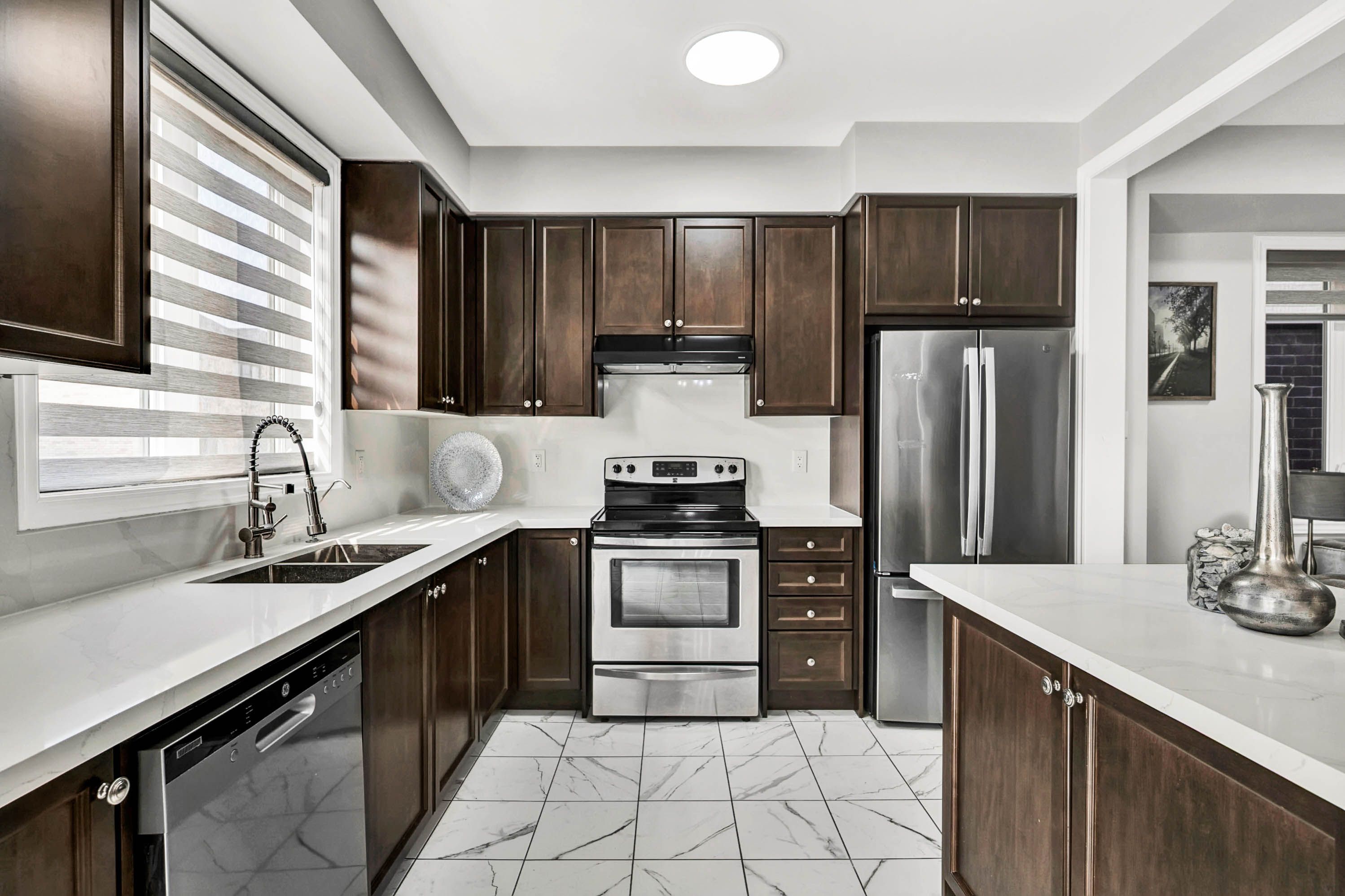 • Stylish kitchen with stainless steel appliances and Quartz countertops.