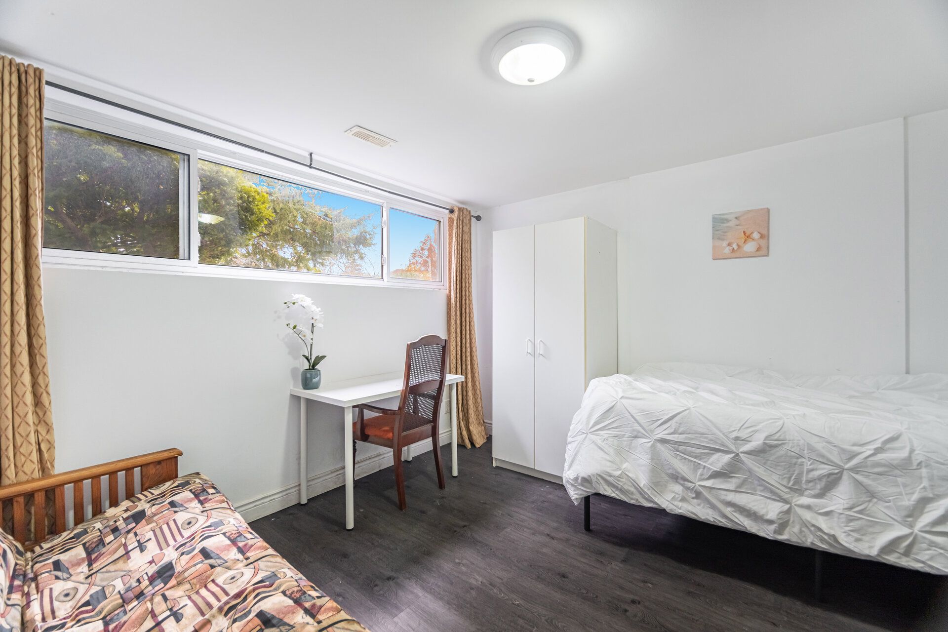 Legal, licensed student housing. Entire lower floor for rent , 1 bedroom with living room/ used as 2nd bedroom . Separate entrance, kitchen, bathroom & laundry, furnished detached raised bungalow, located in a highly sought-after neighbourhood within all universities district, new stove, very bright large living rm with wall to wall window, walking distance to all universities. It's a perfect house for young couple or 1person who enjoy big living space or university student to share with other friends or as your family home. Security camera, smoke detector. Carbon monoxide detector. Students are welcome. 1 parking included, fully furnished. 2 single beds + mattress, 2 desks, sofa, dining table and chairs. Fridge, stove, washer, dryer. Microwave, all existing window coverings and all elfs . Tenant pays 40% utilities. 1500 gb internet is included. Short term lease to august 30
