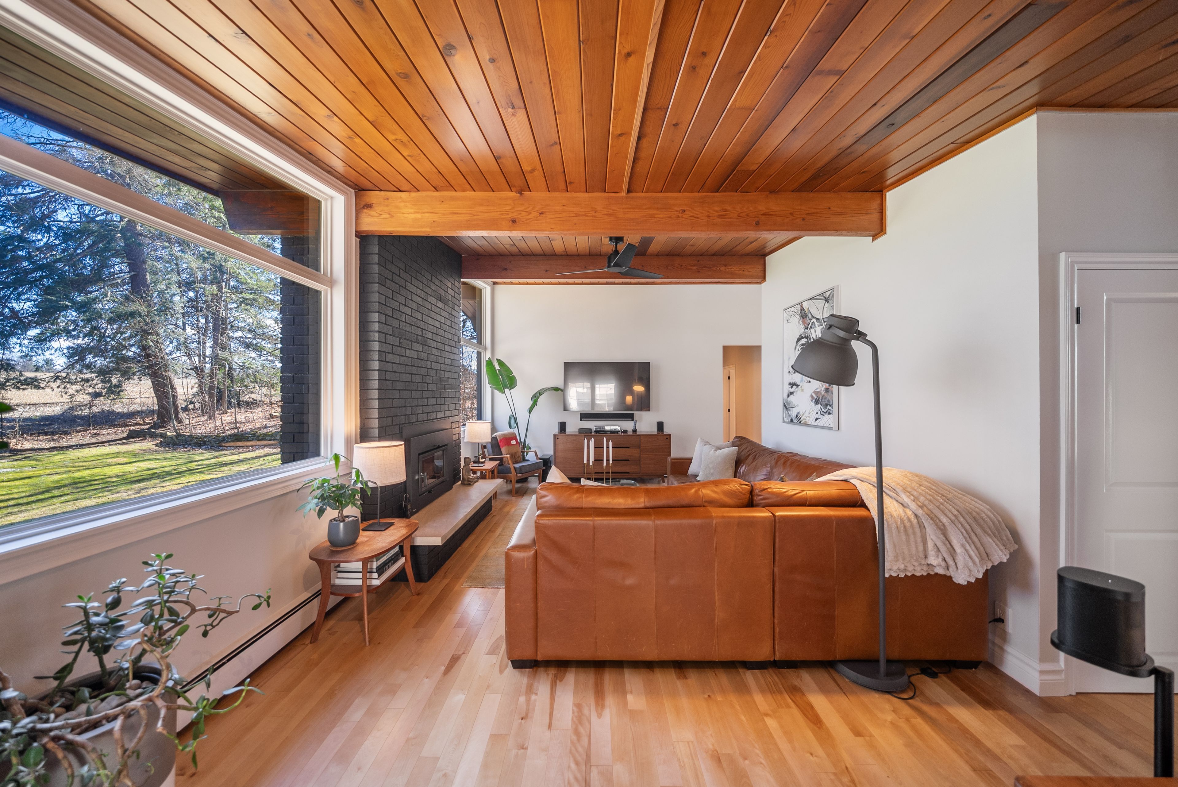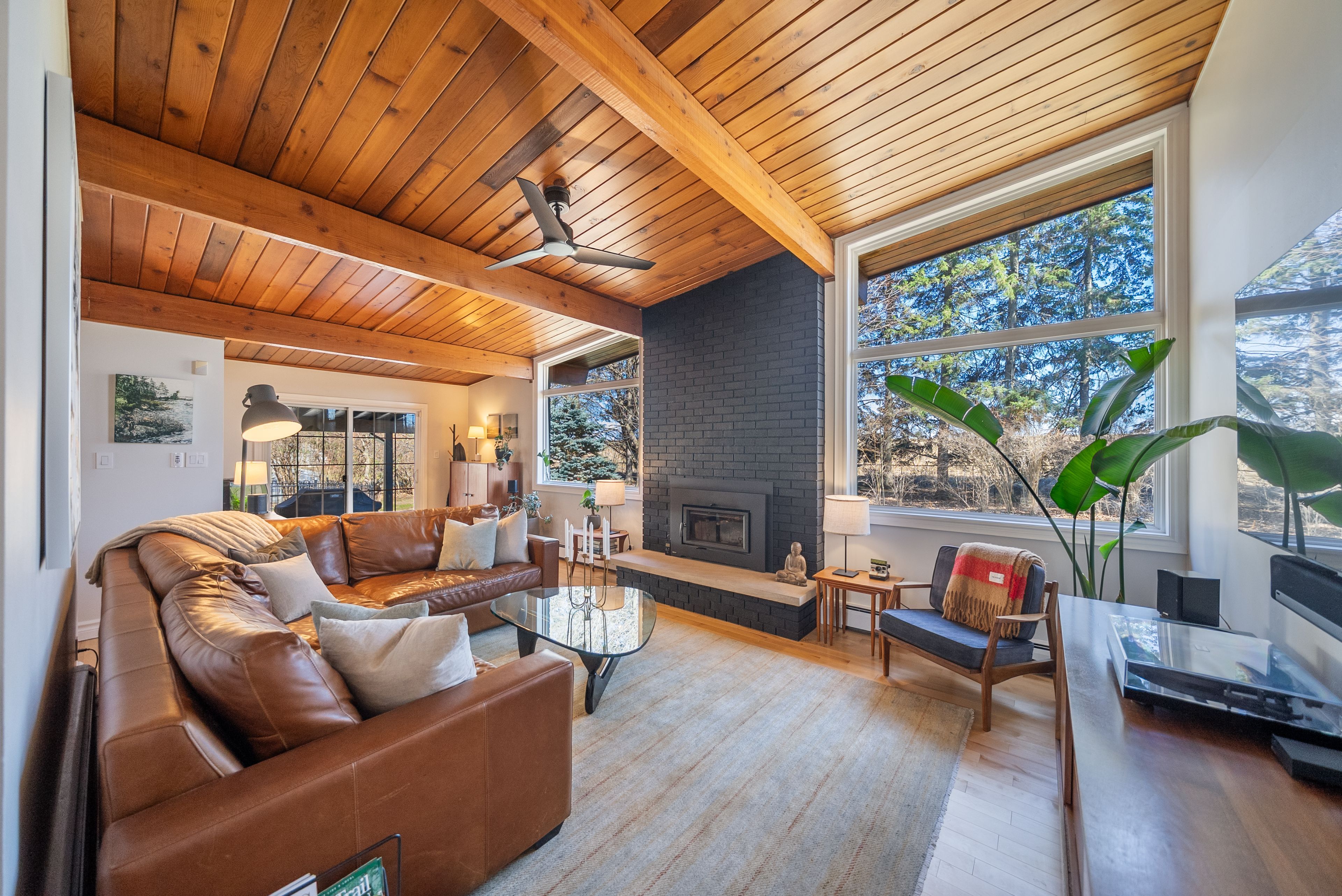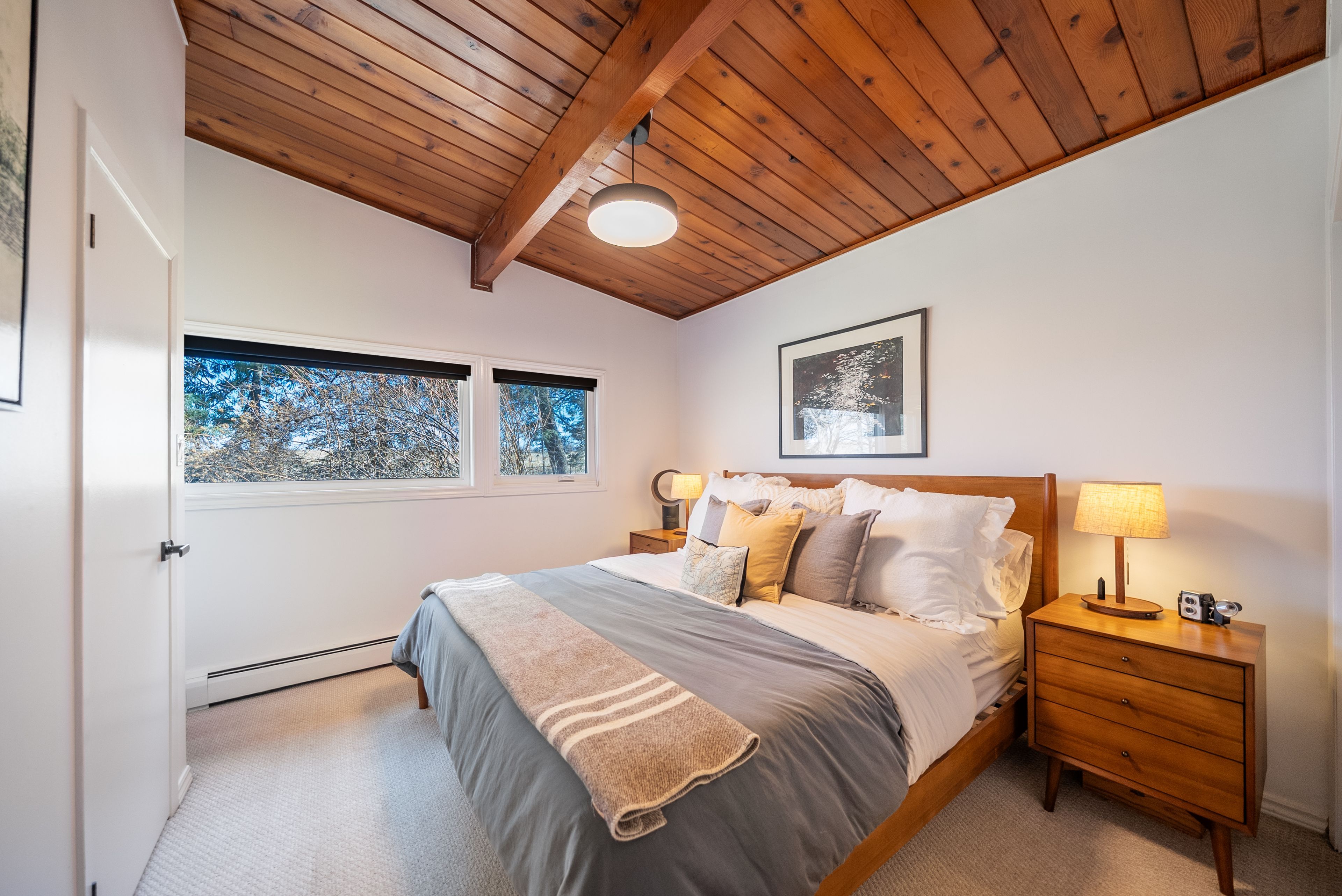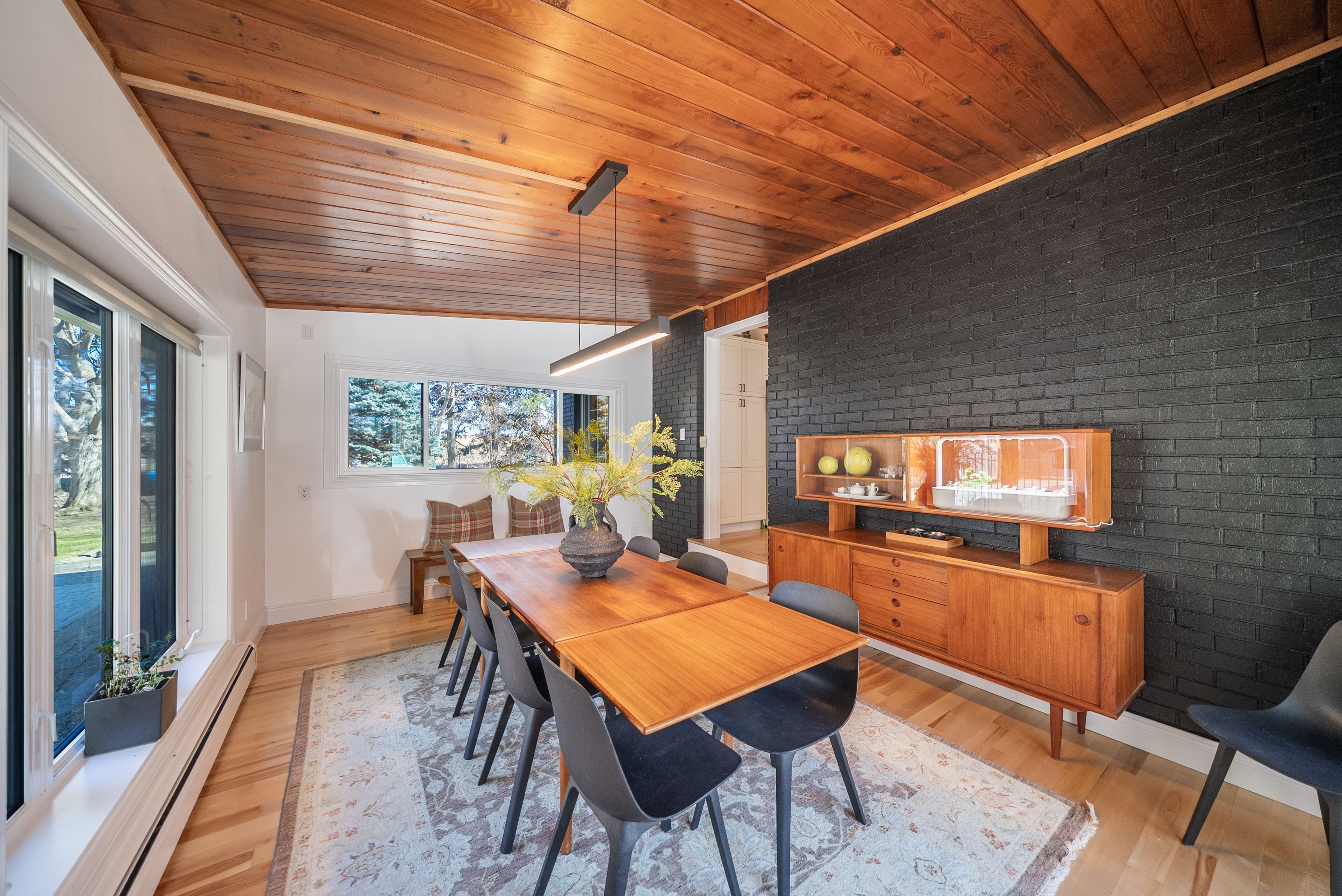 • Original mid-century design features warm wood tones and clean lines.