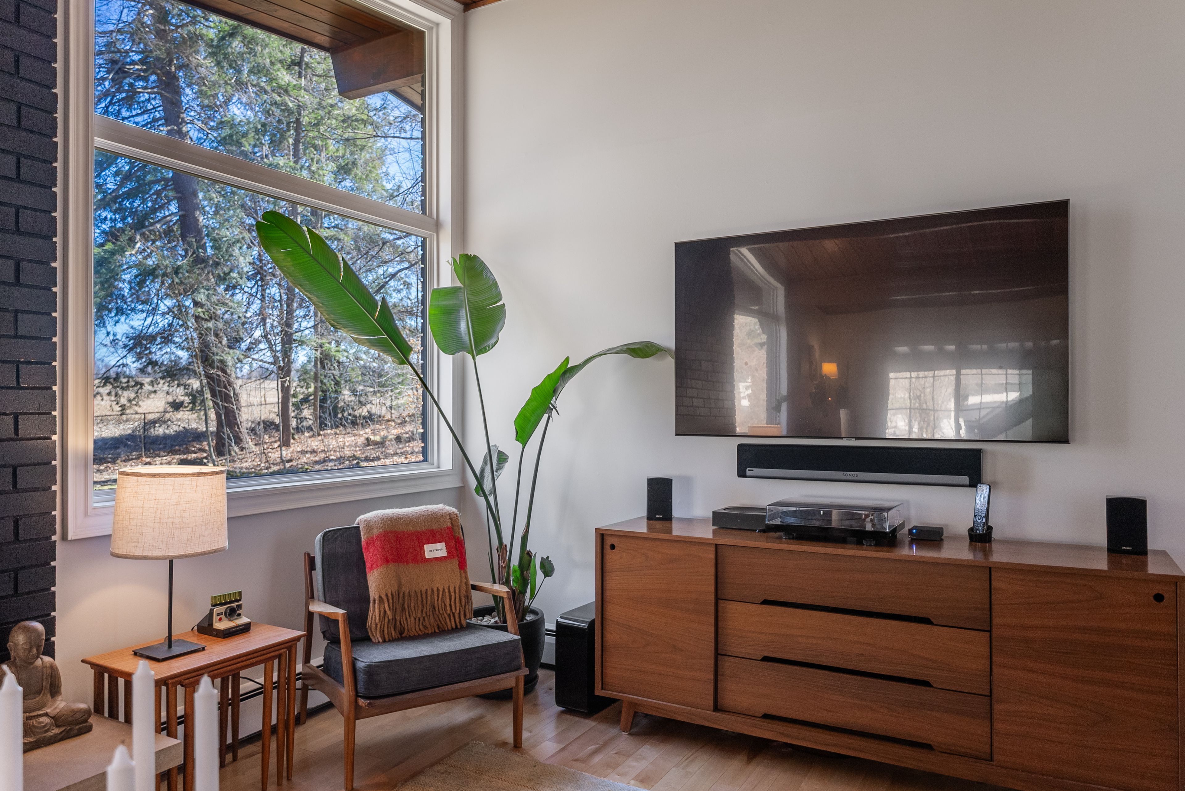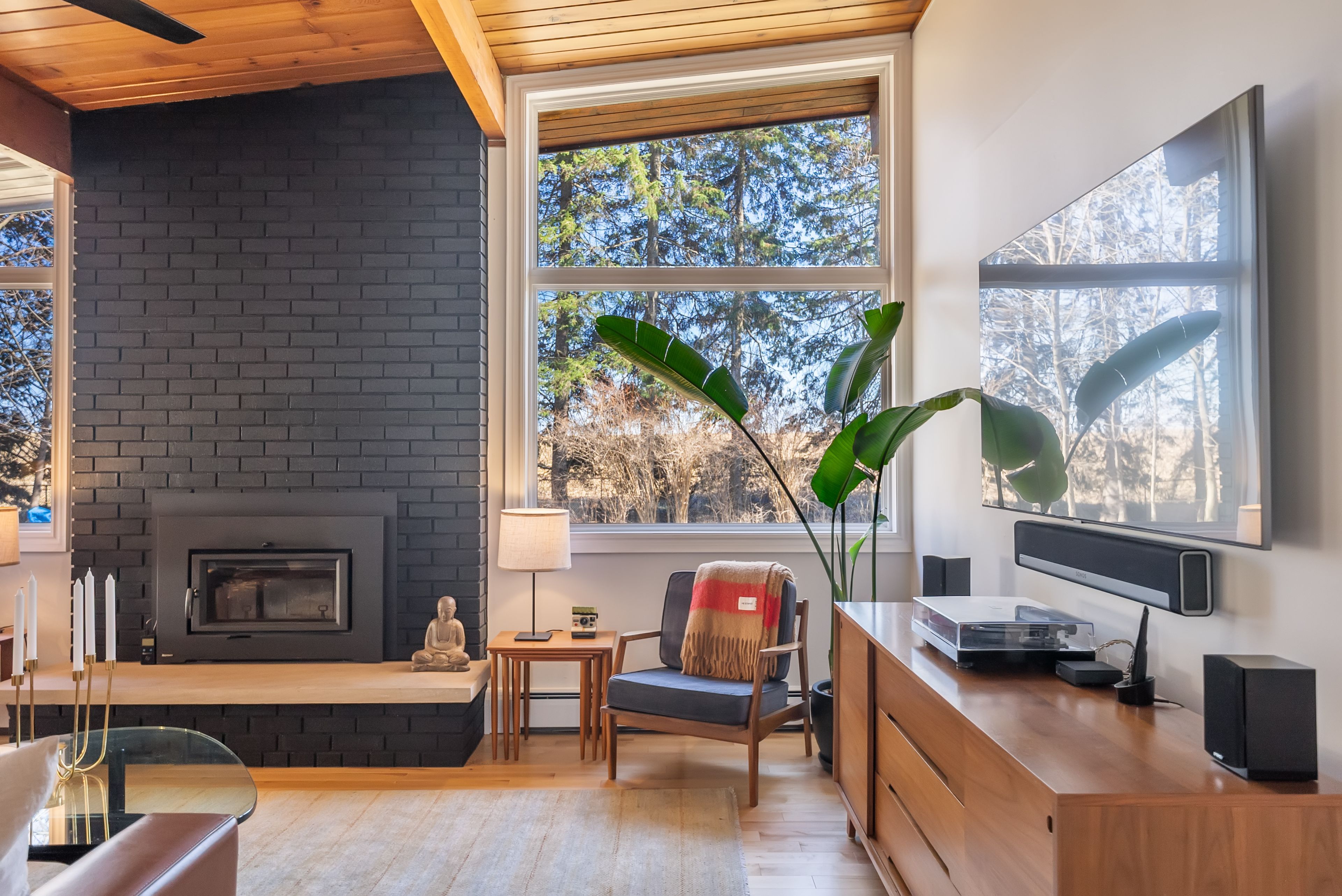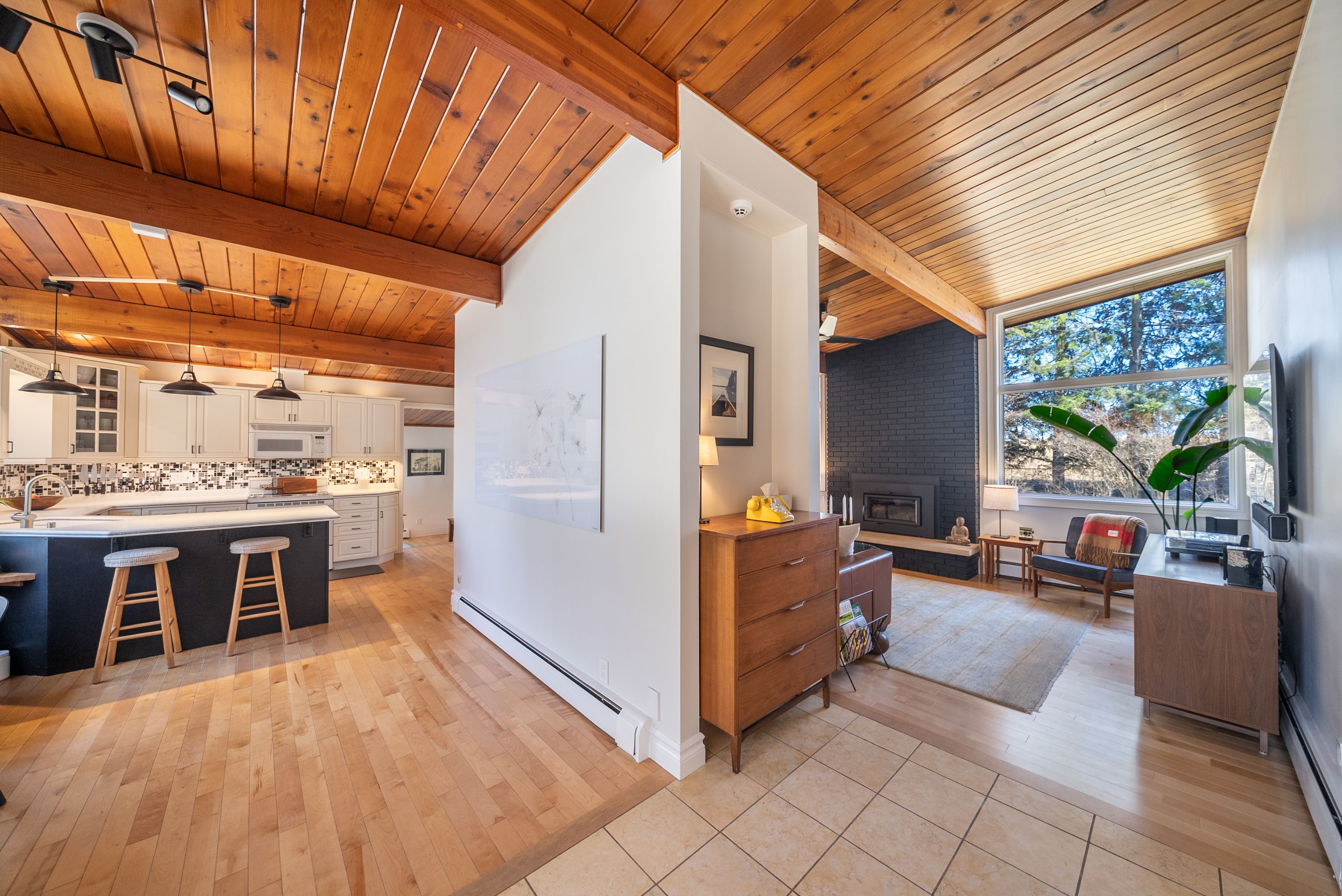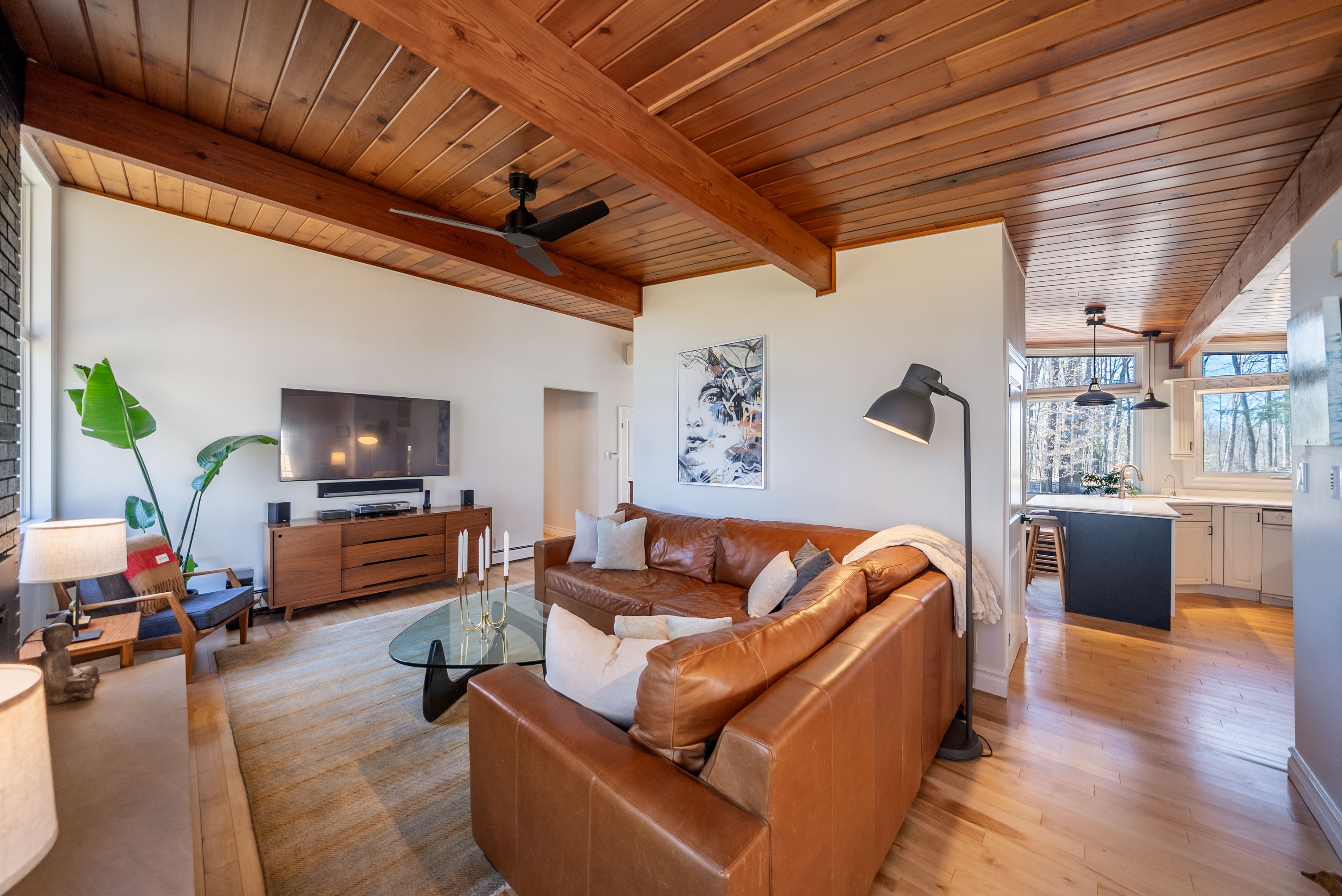 • Original mid-century design features warm wood tones and clean lines.