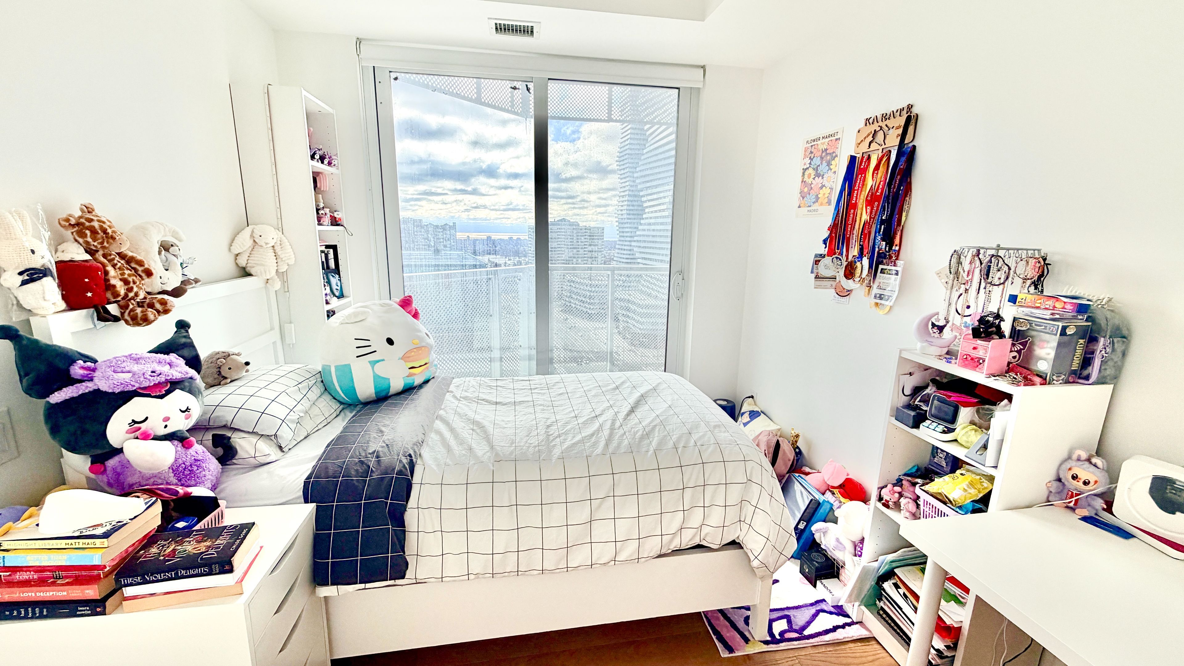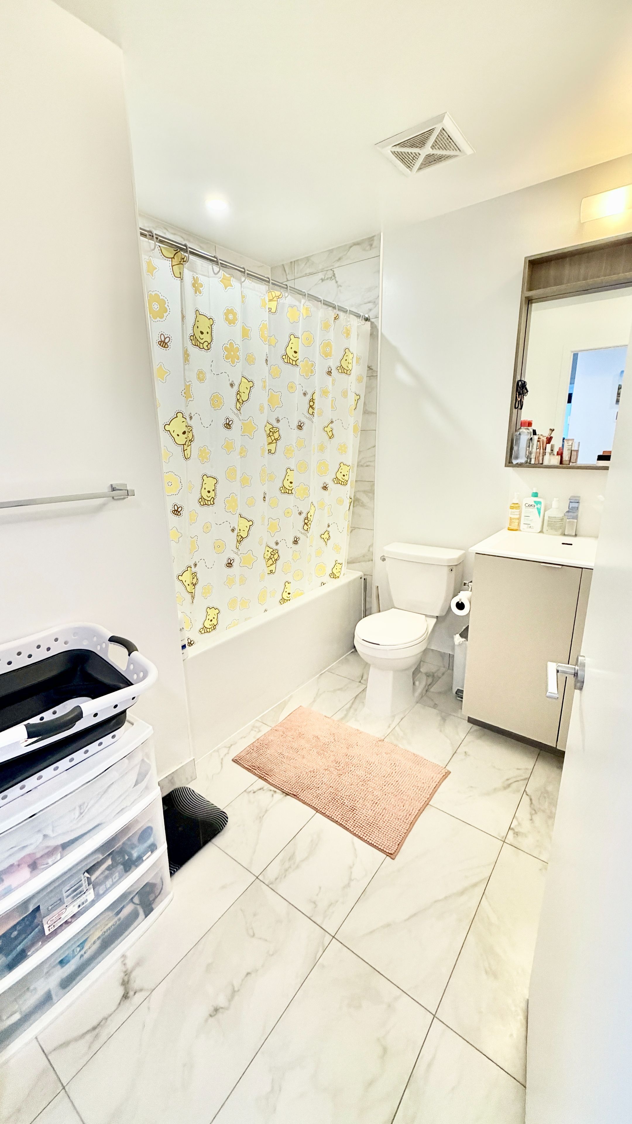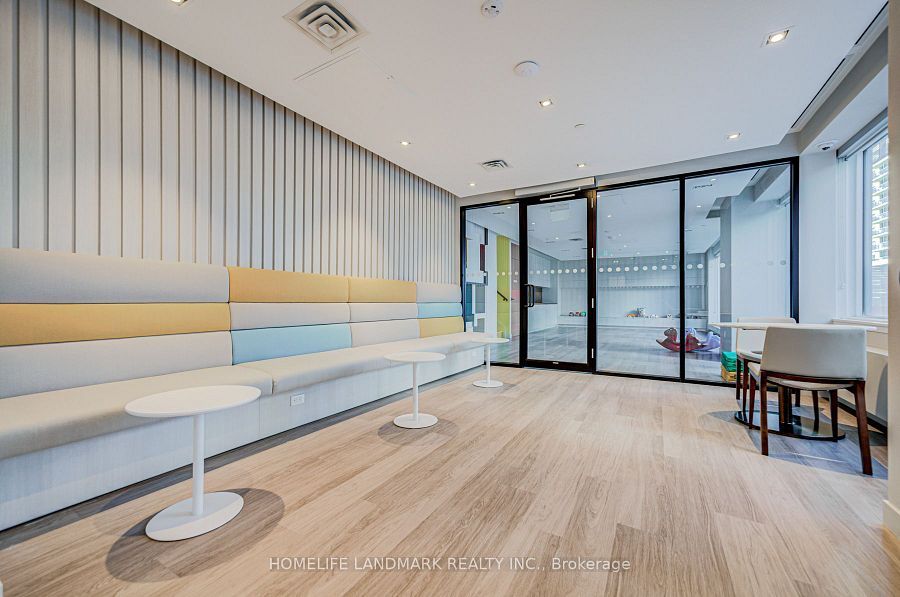 • Building amenities include a gym, climbing wall, kid zone, and party room.