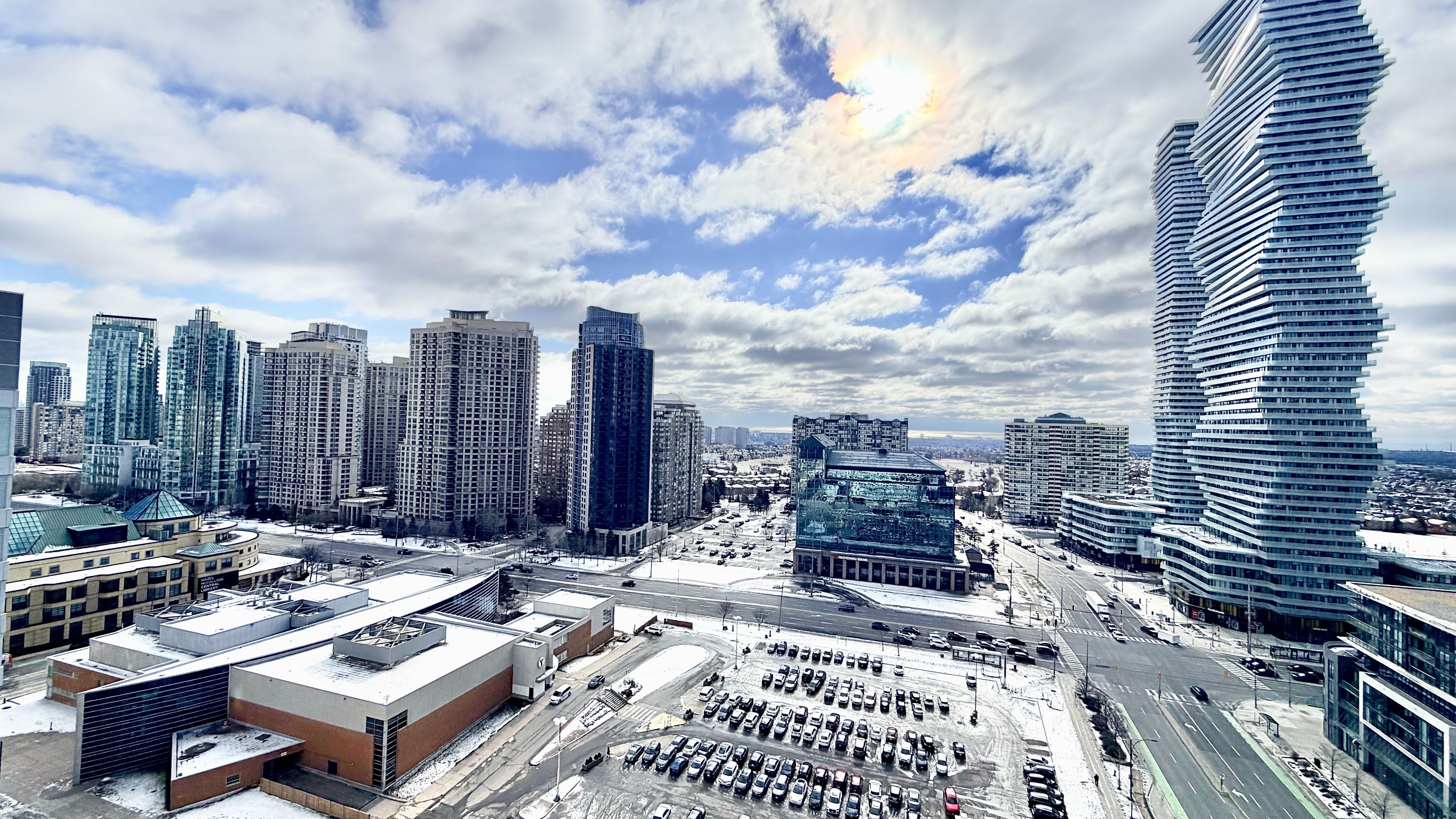 Welcome to the wesley tower located right in the heart of mississauga. Walk anywhere to schools, parks, restaurants, places of worship and shopping, including square one mall. Public transit at your doorsteps. Ymca, library, and restaurants. Easy hwy 403, 401 & 407. Spacious 3 bedrooms, 2 bathrooms at south east corner with 2 big balconies, this unit comes with 2 side-by-side parkings & 1 locker! Huge balconies with clear view of the city. Modern open concept living room with high ceiling. Chef's delight kitchen with quartz counter and s/s appliances. Good size breakfast bar. Well-lit unit with direct sunlight. Building amenities - rock climbing wall, gym/ workout zone, kid zone, and a lovely party room. Every room is surrounded by balcony space.