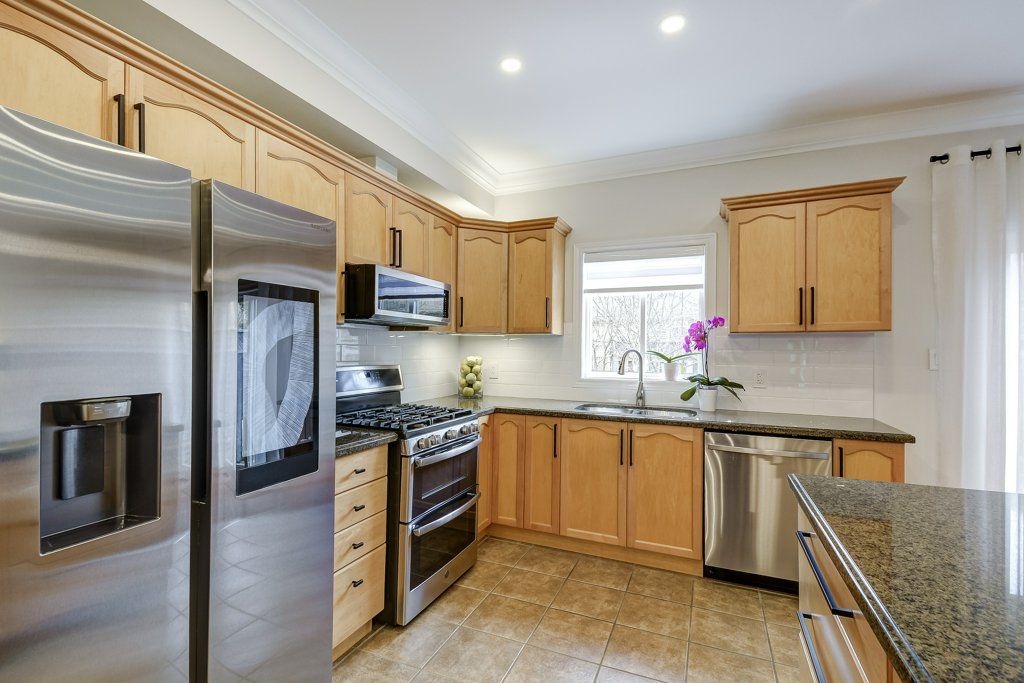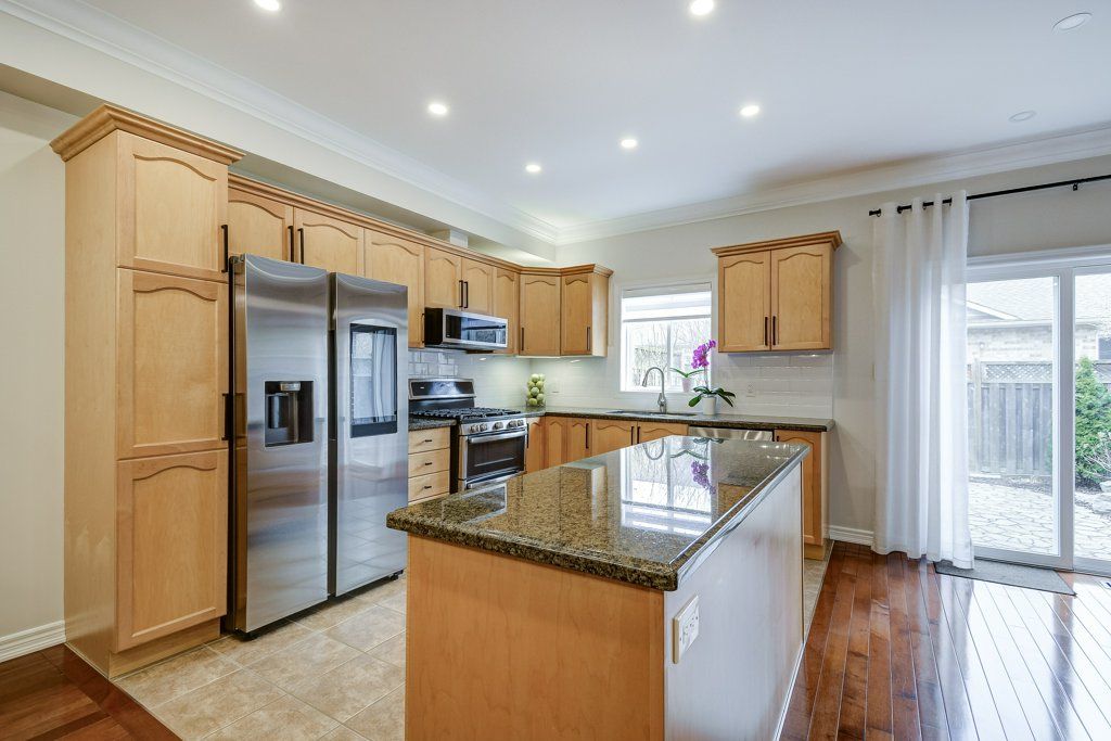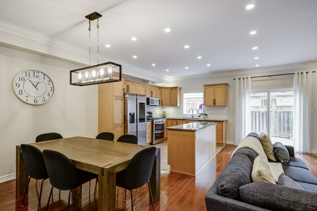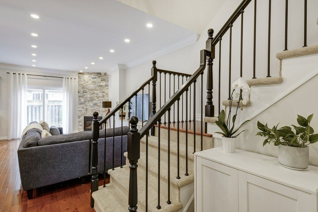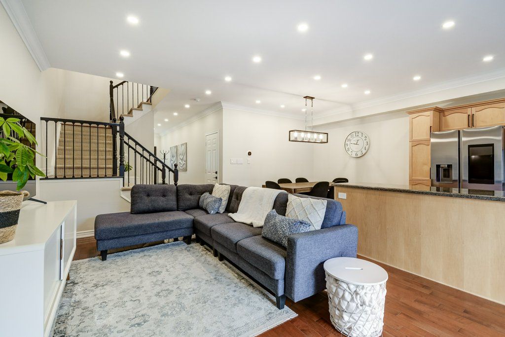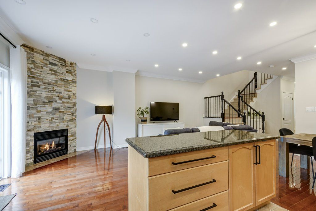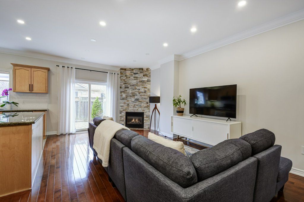 Welcome to this immaculate, spacious 3-bedroom freehold townhouse that shows like new. Ideally located across from tansley woods park, it offers beautiful green space, walking trails, and a perfect setting for families and outdoor enjoyment. Exceptionally well maintained and thoughtfully updated, this home blends modern finishes with everyday functionality. The bright main floor features 9-foot flat ceilings, crown moulding, and pot lights that create a warm, well-lit atmosphere. Fresh paint is complemented by modern light fixtures, updated decora plugs and switches, and a stylish gas fireplace in the family room, perfect for cozy evenings. The kitchen is both beautiful and functional, featuring granite countertops, a new backsplash, and a full suite of approximately 4-year-old appliances, including a ge gas stove, samsung fridge, samsung dishwasher, and built-in samsung microwave. A convenient 2-piece powder room with updated toilet, inside garage entry, and garage door opener complete the main level. Upstairs offers additional pot lights, updated railings, and modern door handles. The large landing enhances the sense of space and leads to second floor laundry with an electrolux washer and dryer. Maple hardwood flooring runs throughout both levels, leading to a spacious primary bedroom with a walk-in closet and private 4-piece ensuite. Two additional bedrooms and a second 4-piece bathroom provide comfort for the whole family. The professionally finished lower level adds living space with pot lights, laminate flooring, and a bathroom rough-in. Enjoy a fenced backyard with perennial garden and gas bbq hookup. Additional features include central vacuum, smart thermostat, humidifier, new furnace and a/c, phantom screen door, and 2022 roof. This turnkey home combines style, comfort, and an unbeatable location, ready for you to move in and enjoy.