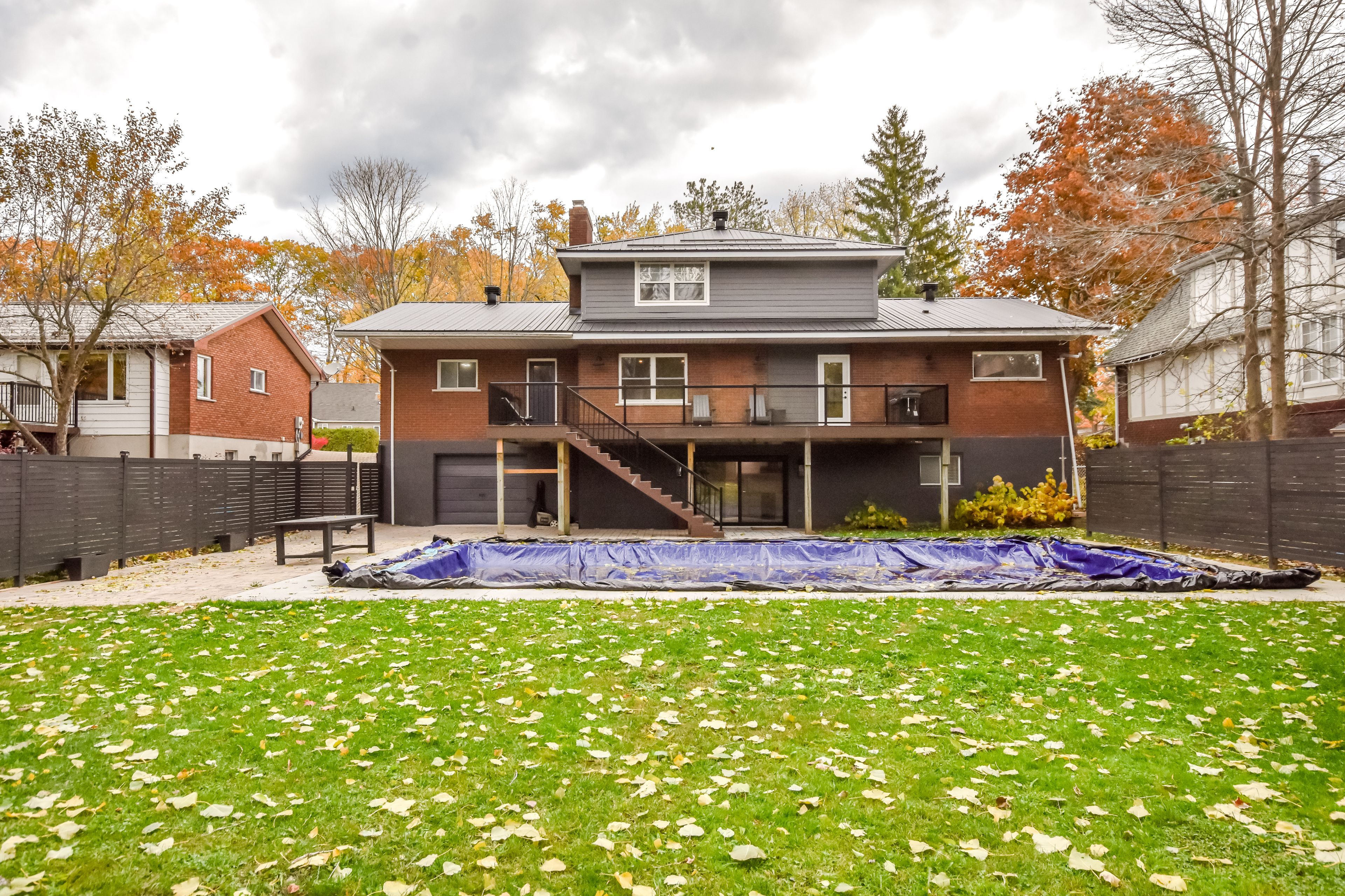 Welcome to 407 bay street, orillia - located in one of the city's most desirable neighbourhoods. This stunning custom-built 5-bedroom, 3. 5-bath, two-storey home showcases exceptional craftsmanship, modern design, and high-end finishes throughout. The main level offers an open-concept dining area and a gorgeous farmhouse-style kitchen featuring a custom oak island, quartz countertops, floating shelves, and a pot filler. The living room boasts a beautiful brick accent wall and a gas fireplace, complemented by an office, 2-piece bath, and a spacious laundry/mudroom with garage access and a walkout to the rear deck. Upstairs, you'll find three bedrooms, including a bright primary suite with a 3-piece ensuite, plus an additional 4-piece bath. The fully finished lower level features a large recreation room with a gas fireplace, wet bar/kitchenette, walkout to the backyard, two additional bedrooms, a 3-piece bath, fitness area, utility room, and storage. The backyard is perfect for family enjoyment, backing onto scenic recreational trails and featuring an in-ground pool with a newer liner and concrete surround. This home has been extensively updated with premium finishes - custom millwork, built-in cabinetry, ship lap details, cedar accents, stunning tile work, upgraded fixtures, and elegant brass hardware. Additional updates include a metal roof, new main and second level windows, composite decking, regal railing and more. Located across the street from lake couchiching, water access from fittons rd or borland st, just minutes to downtown, couchiching beach park, boat launch, shopping and more. A truly remarkable home that must be seen in person to be appreciated.