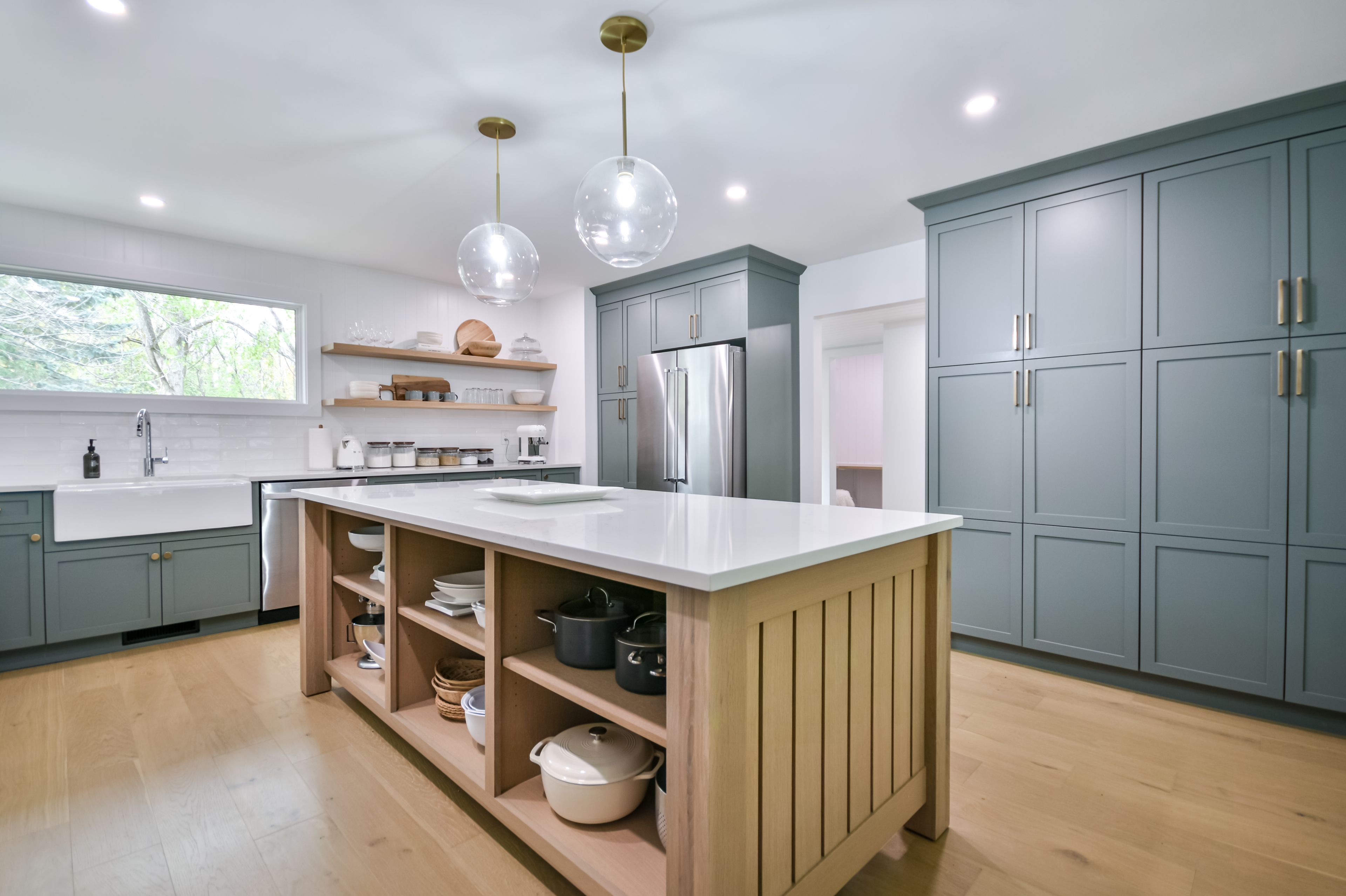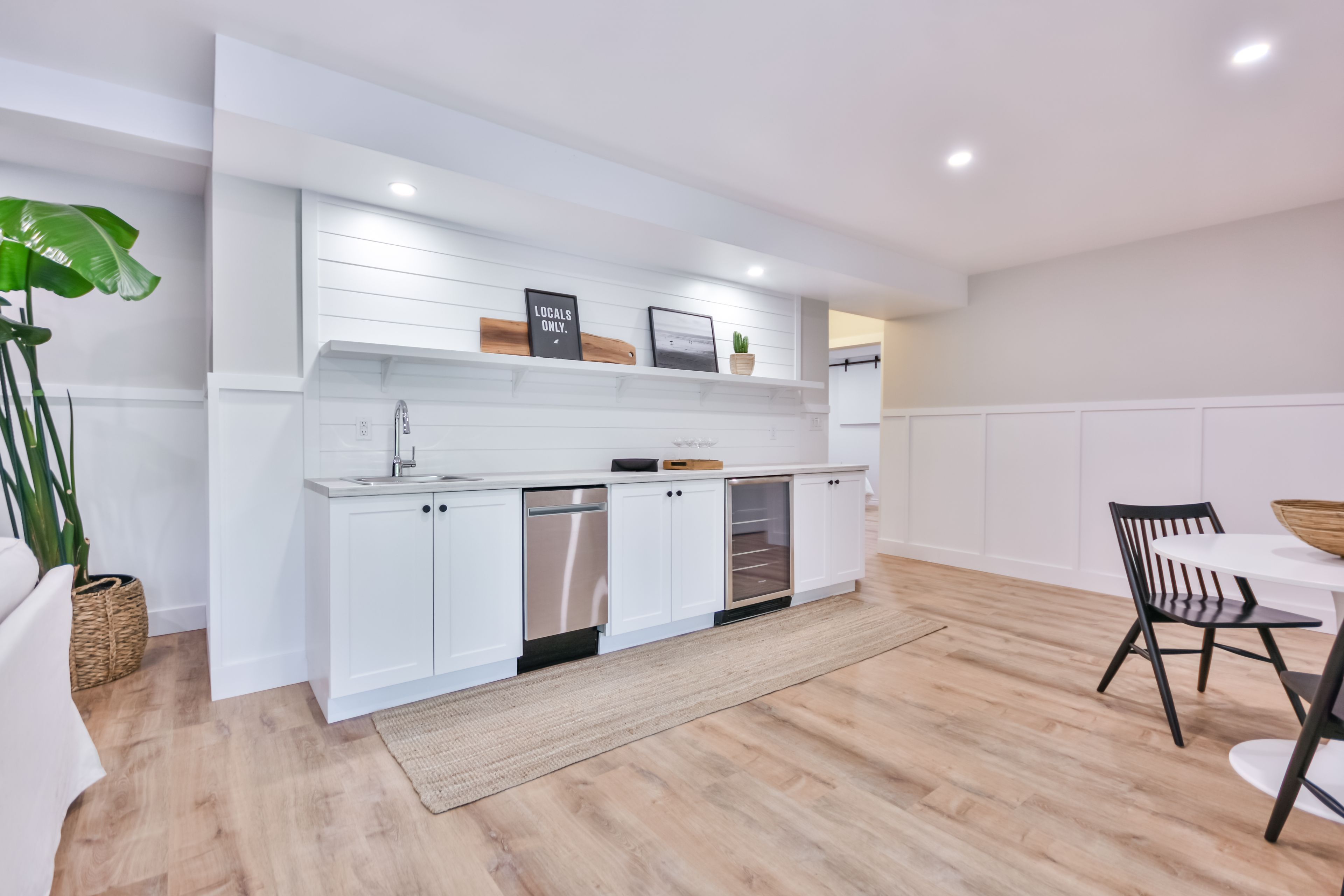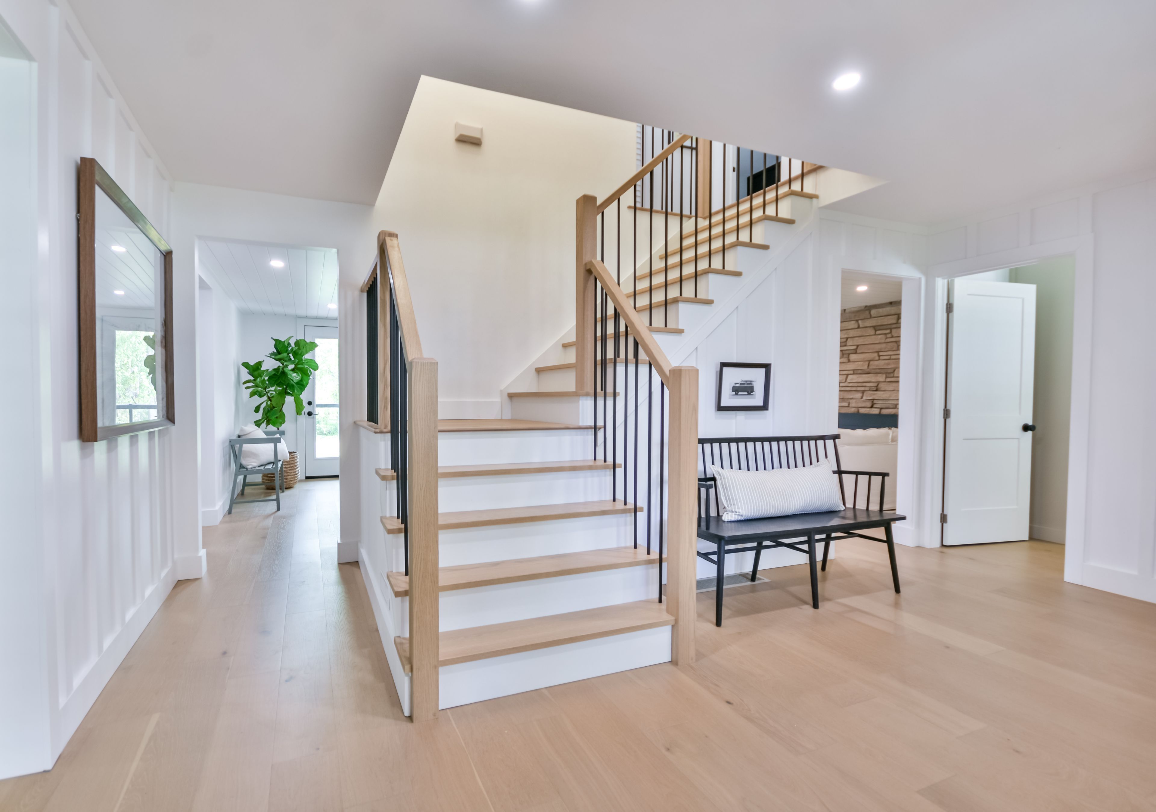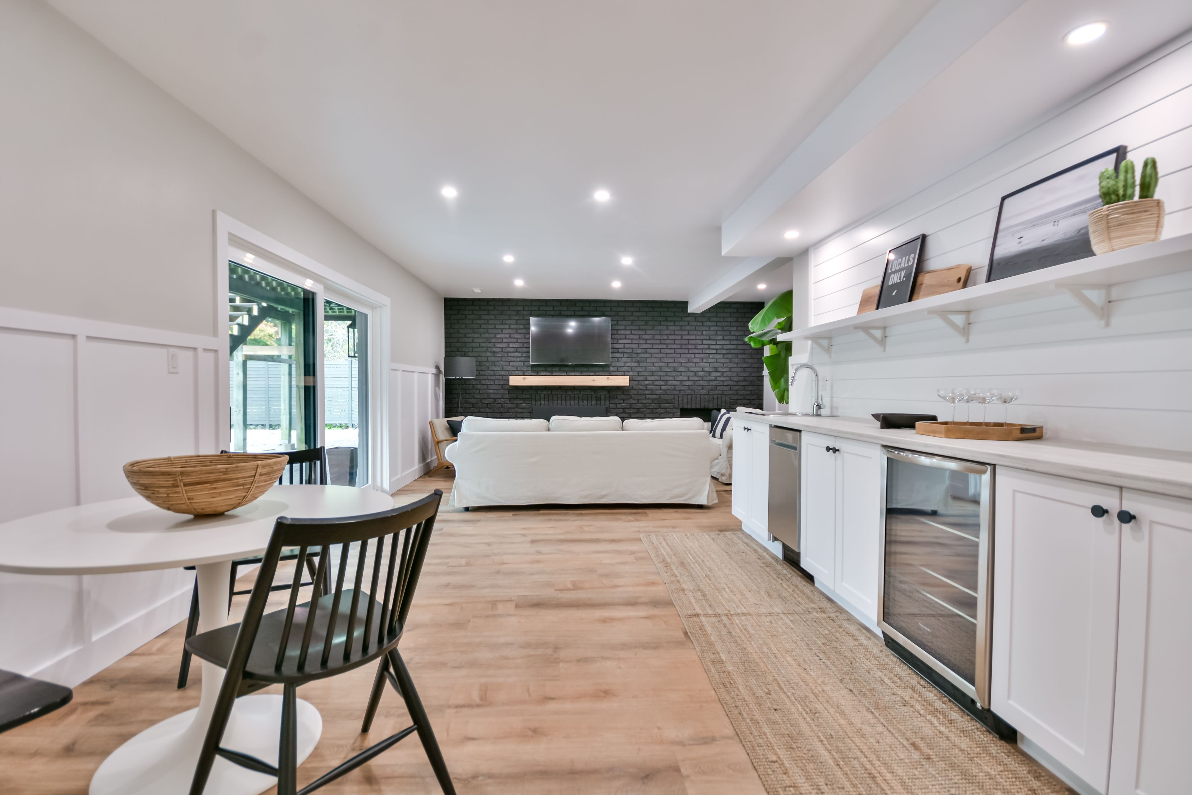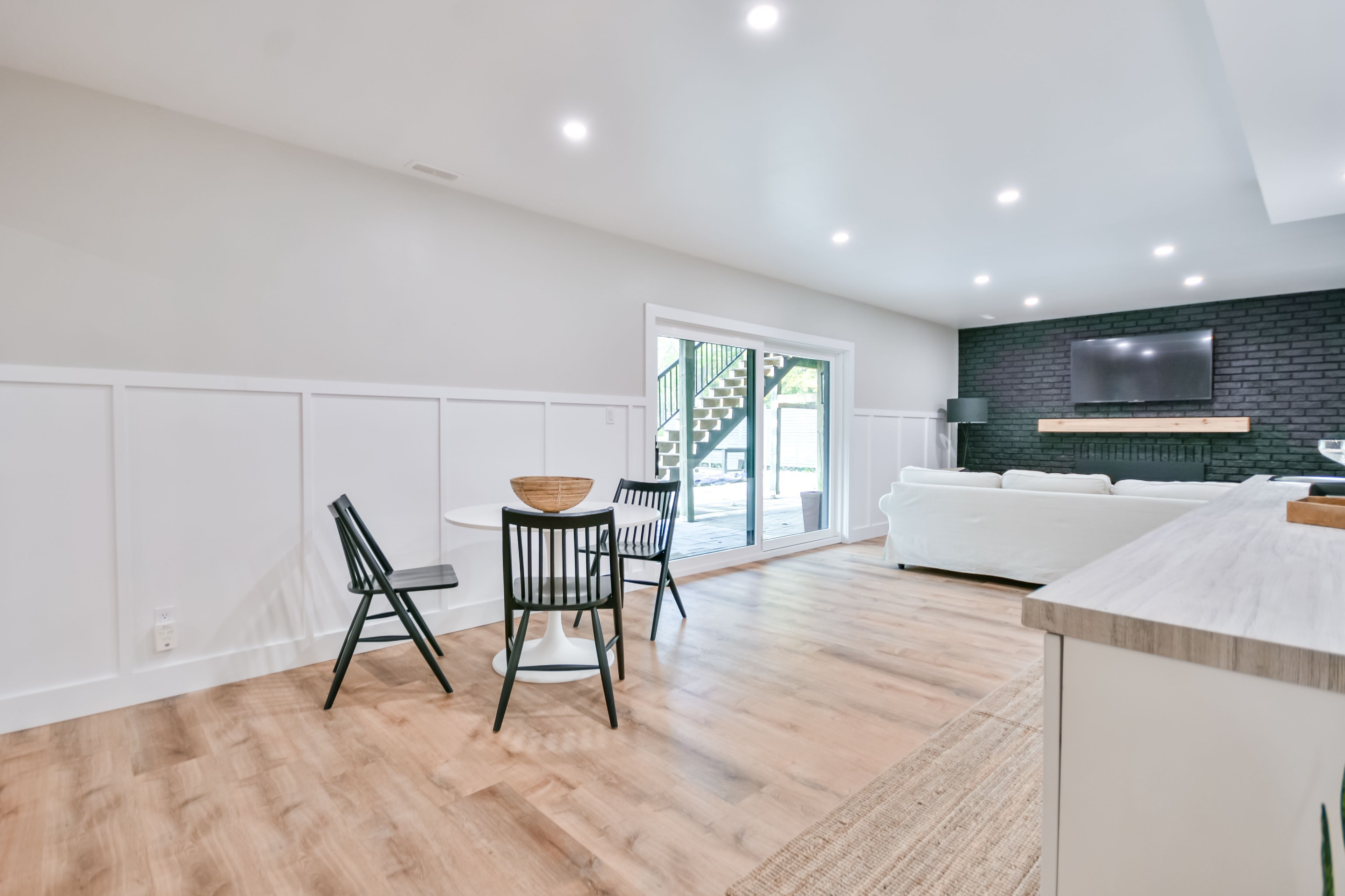 • Open-concept dining and farmhouse-style kitchen with high-end finishes.