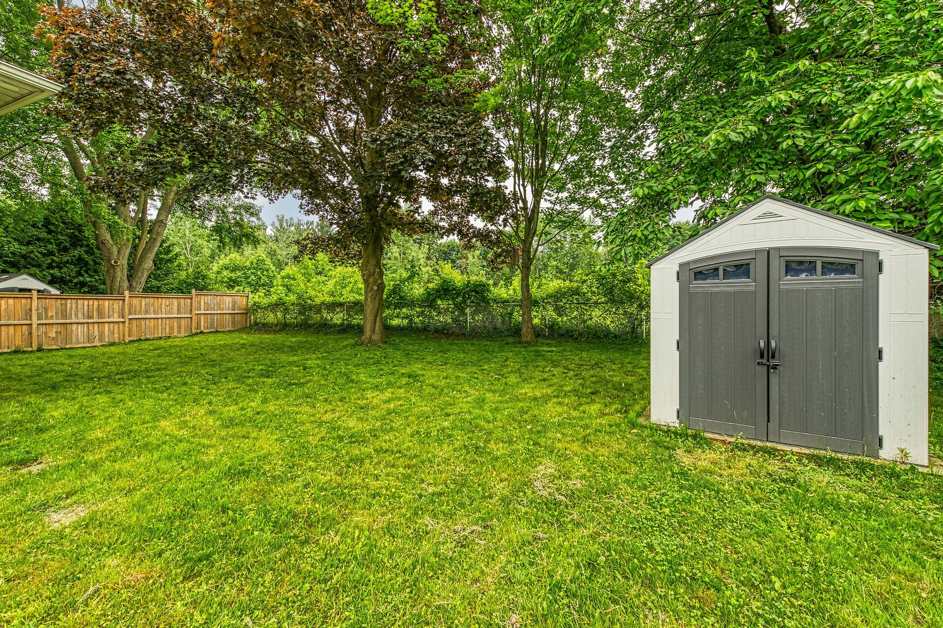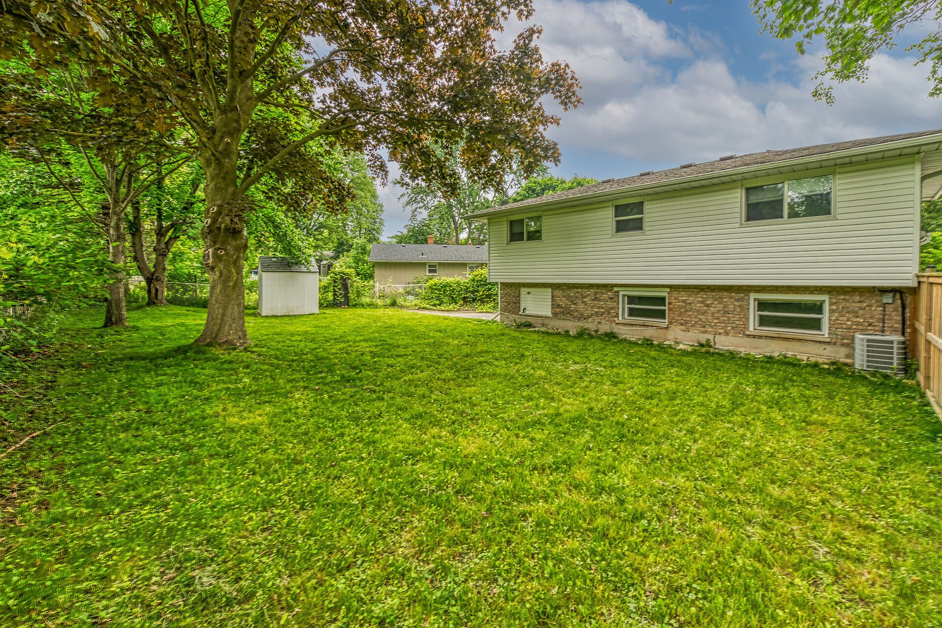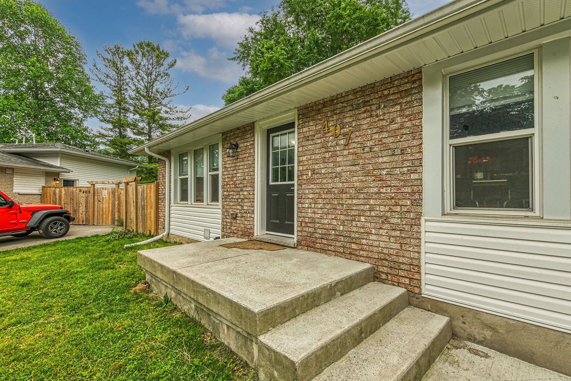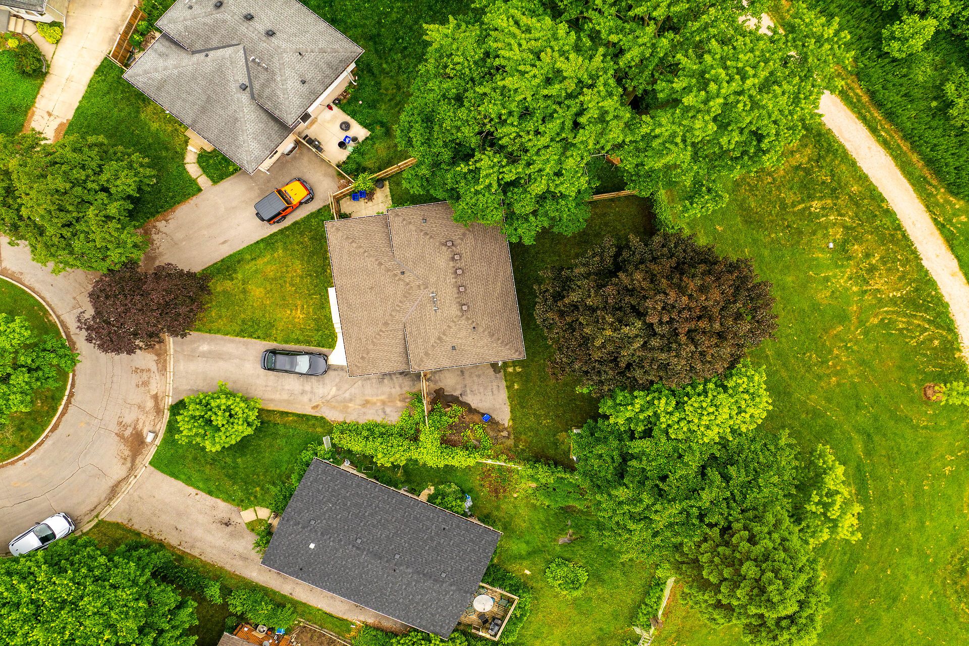 • Large pie-shaped lot with parking for four vehicles.