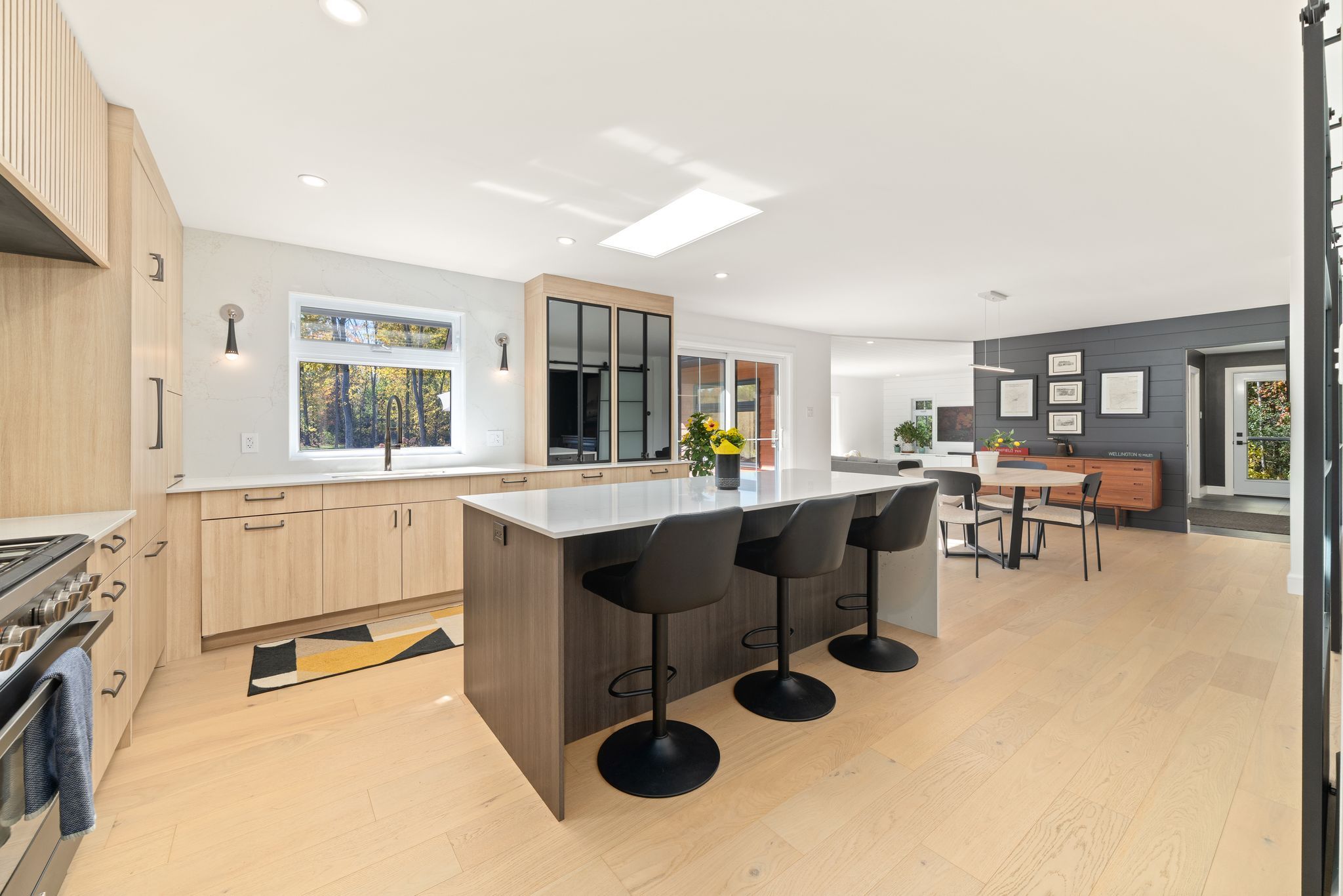 • Open-plan design connecting kitchen, dining, and living areas for easy flow.