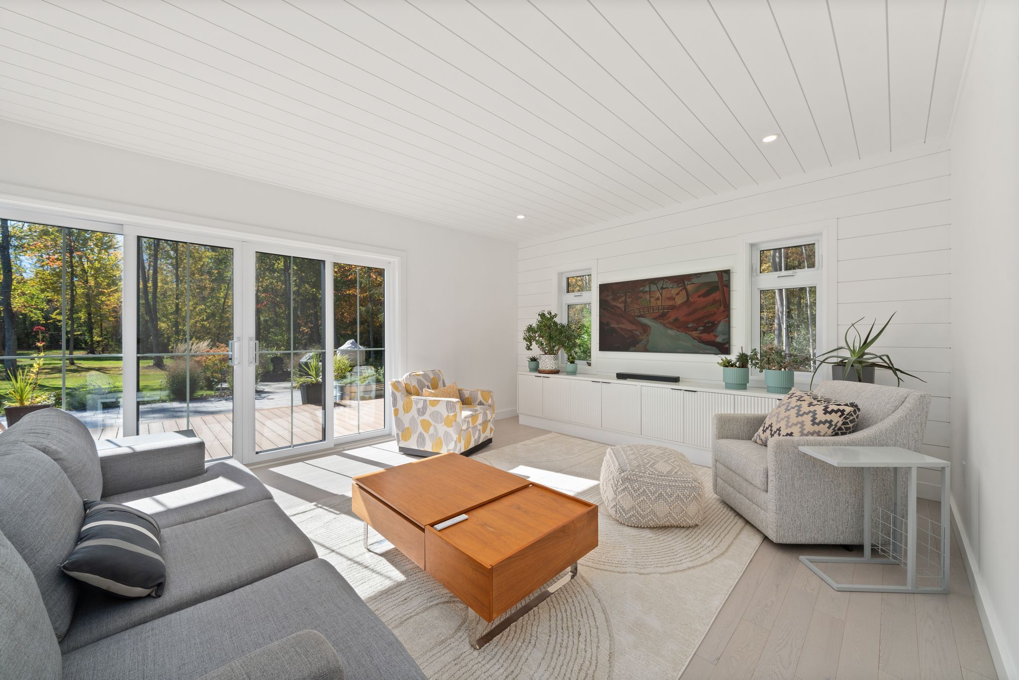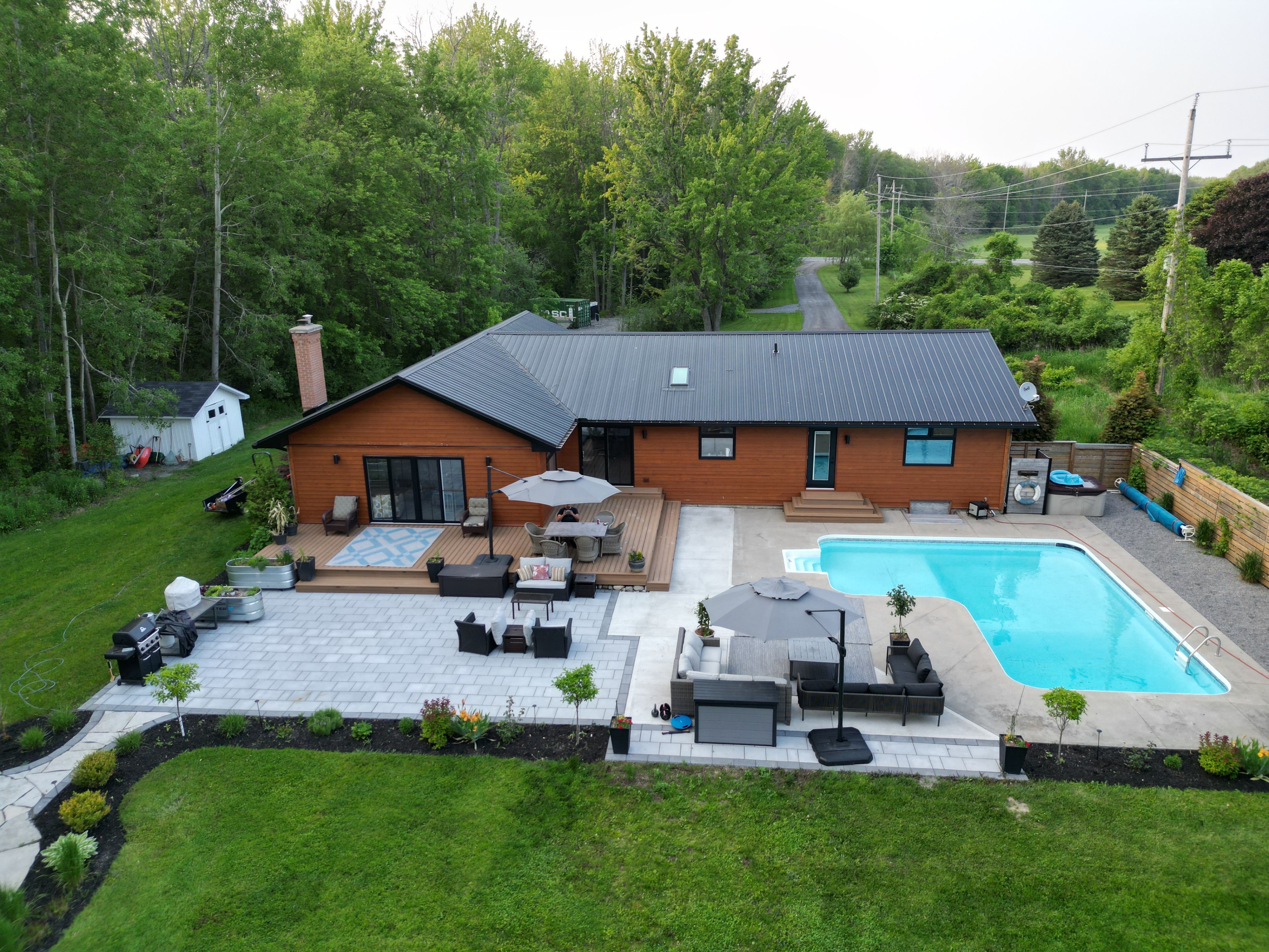Discreetly set back from the road and enveloped by green space, this masterfully reimagined residence offers over 1,800 sq ft of sophisticated single-level living, meticulously renovated with both modern luxury and enduring materials. Every element from the trex composite decking to the custom millwork has been executed with a thoughtful eye for detail and a deep respect for craftsmanship. Inside, soaring ceilings, shiplap accents, and engineered hardwood floors lead you through a gracious open-plan design where the kitchen, dining, and living areas flow effortlessly for entertaining or quiet evenings at home. The bespoke kitchen, adorned with sleek cabinetry and premium appliances, anchors the heart of the home, while expansive windows frame the surrounding haven and flood the interior with natural light. Three well scaled bedrooms, including a generous primary suite with walk-in and spa-like ensuite, offer serene retreats. Generous secondary bedrooms and a full guest bath extend the home's capacity for comfort and flexibility. Electrical and plumbing systems have been fully upgraded, including a state-of-the-art water filtration setup and intellidrive pressure system. Beyond the interiors, a saltwater pool glistens as the catapult into a backyard oasis with an invitation to relax, entertain, and immerse in the luxury of outdoor living. Exterior updates elevate livability and include new siding, roofing, patios, walkways, and integrated landscape lighting create a setting that is both polished and inviting. The attached double garage won't disappoint while adding convenience, storage, and potential for additional creative / work at home pursuits. Perfectly positioned on the edge of picton and central to the county's most celebrated destinations, this home is a turn-key invitation to embrace refined county living. In every sense, it is ready to be experienced.