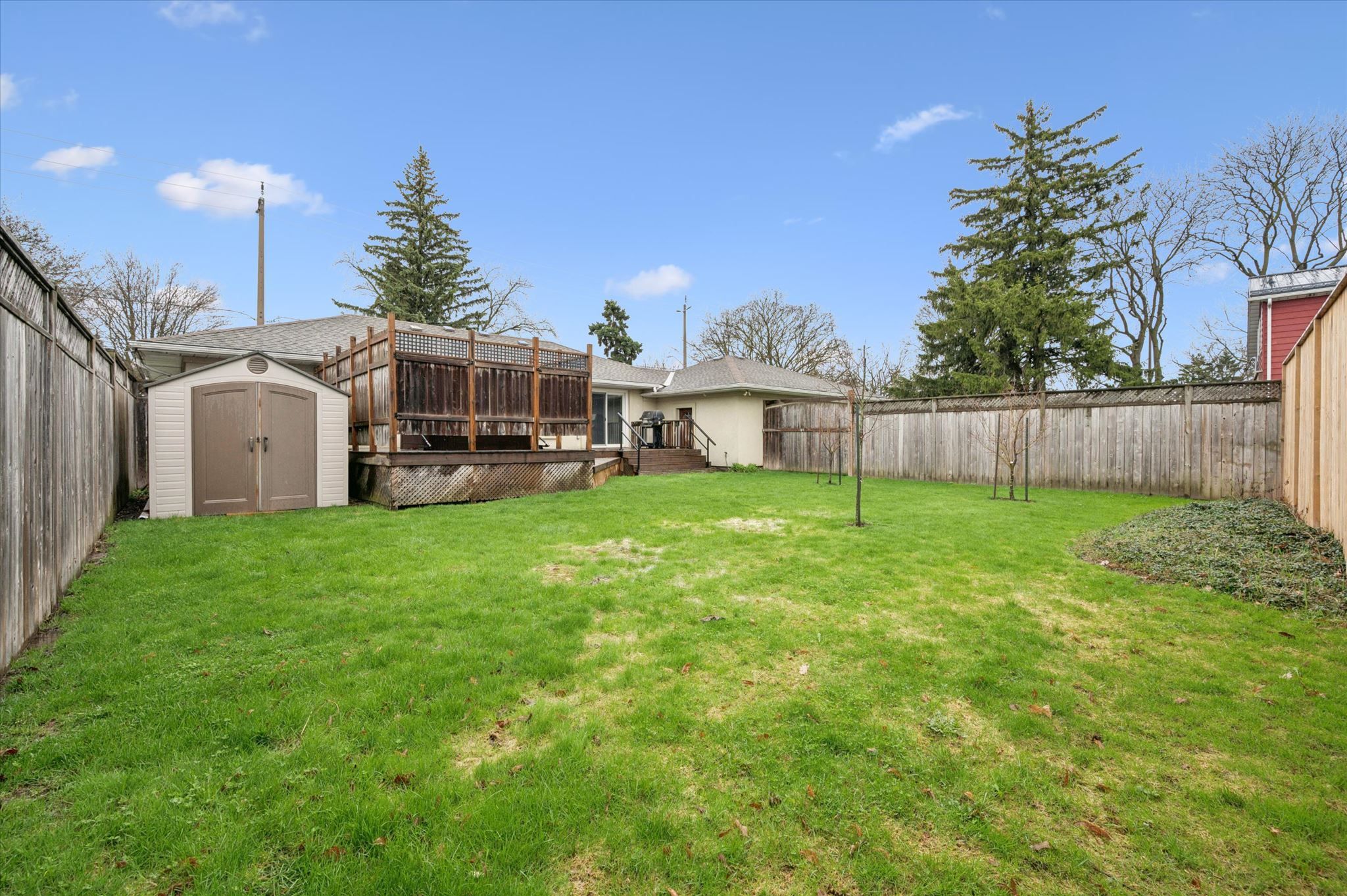 • Large, fully fenced yard ideal for entertaining and pets.