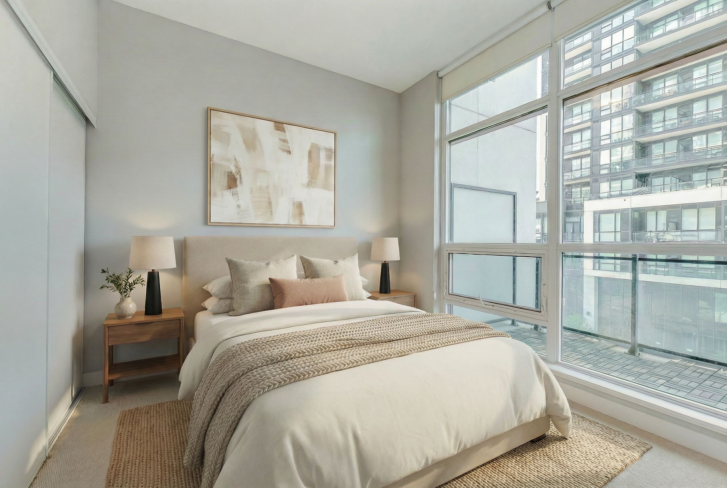 • Bright 1-bedroom suite with 10-ft ceilings and floor-to-ceiling windows.