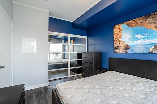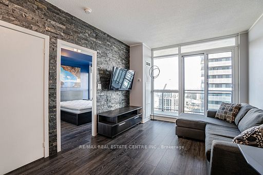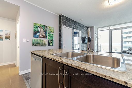 Enjoy resort like living in excellent condo building. Modern open concept one bedroom with 9 foot ceiling. Fantastic easterly views ( airport/toronto skyline/lake ontario) from 22 foot (approx.) balcony. This lovely unit offers upgraded kitchen w/granite counters, s/s appliances and breakfast bar. Spacious living/dining room combo w/gleaming laminate floors and beautiful accenting natural stone feature wall. Great size bedroom with mirror slide closet door. Inviting entrance with tile floor and mirror closet. Bright 4 piece bathroom.