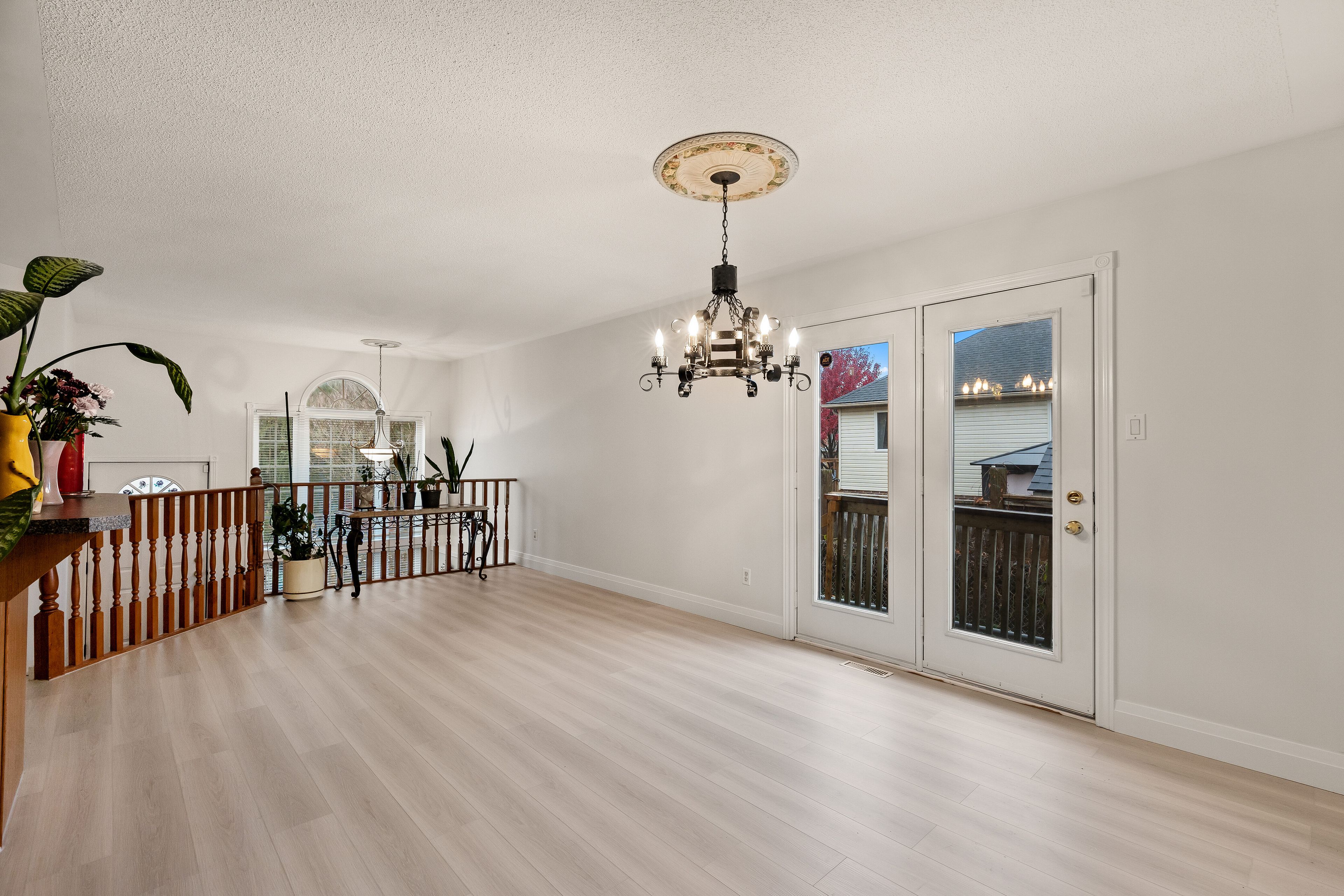 Situated on a quiet cul-de-sac in desirable northeast london, this beautifully updated 5-bedroom, 2-bathroom raised bungalow has been lovingly maintained and thoughtfully upgraded throughout. The bright open-concept main level features a spacious kitchen with island and breakfast bar, great room overlooking the large front window and foyer, and dining area with direct access to the backyard-perfect for entertaining or family living. Three generous bedrooms and a 4-piece bathroom complete the main floor. The fully finished lower level offers even more living space with a cozy gas fireplace, two additional bedrooms, a 3-piece bathroom, and a convenient laundry room. This carpet-free home features new luxury vinyl plank flooring throughout for easy maintenance and modern appeal. Enjoy the outdoors in your private, fully fenced backyard complete with a newer deck, colourful gardens, pond, and a handy storage shed-an ideal retreat for morning coffee or evening relaxation. A single-car attached garage adds everyday convenience to this wonderful family home. Updates include: flooring (2025), deck (2025), hot water heater (2025), furnace (2025), washer and dryer (august 2025), fireplace (2025), a/c approx. 8 yrs