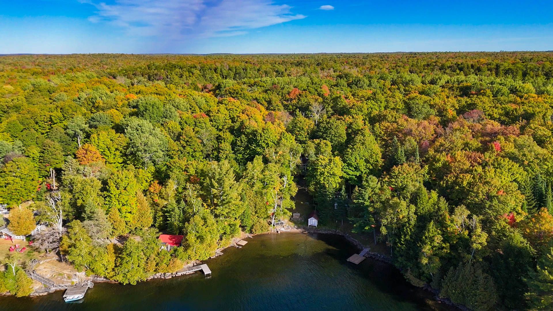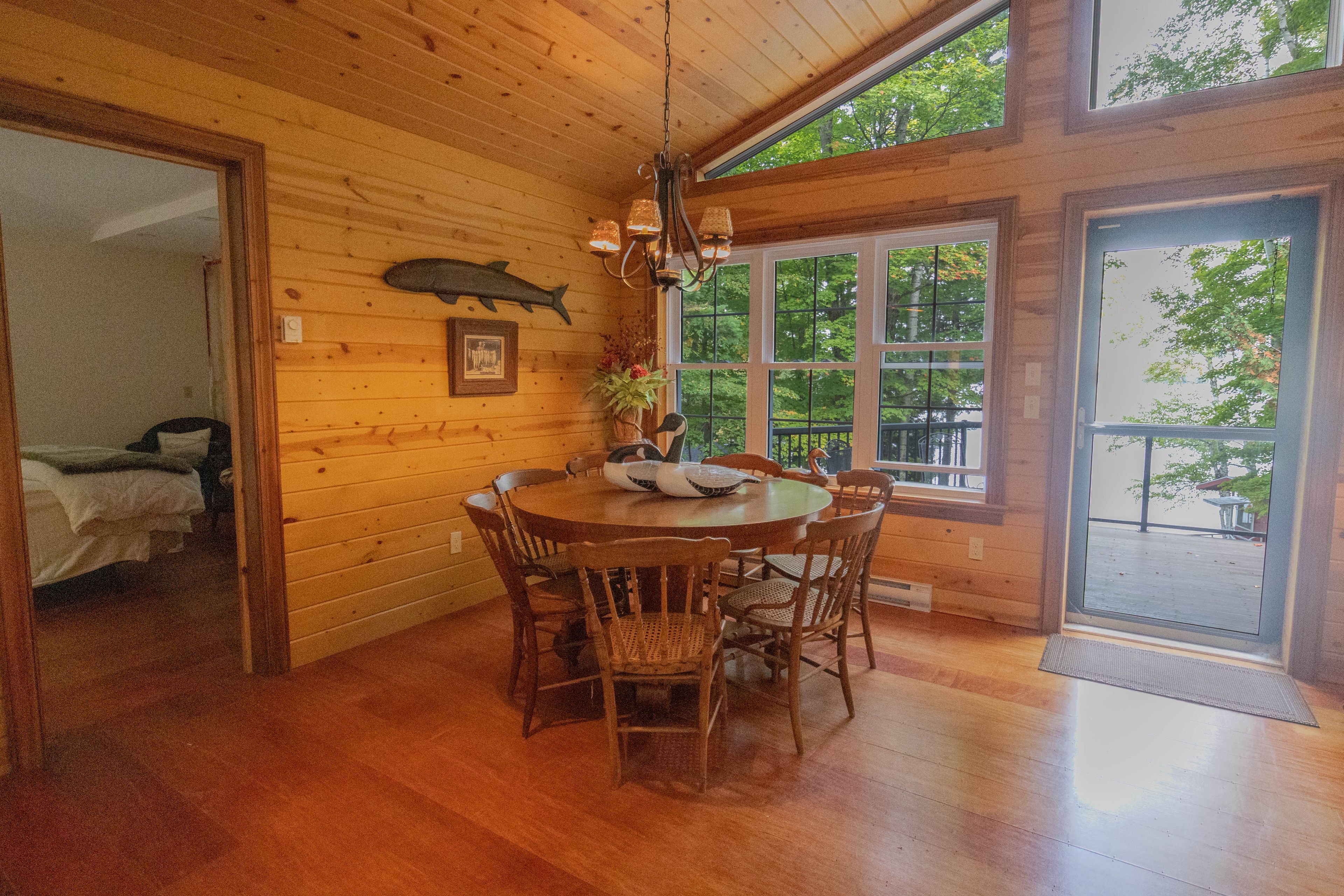 Big lake views, unforgettable sunsets, and room for everyone-this is the chandos lake retreat families wait years to find. Set on the sought-after shores of chandos lake, this exceptional waterfront property showcases expansive northwest views, offering stunning sunsets right from your dock. With a walk-in sandy beach, it delivers the perfect blend of privacy, protection, and classic cottage living. Designed for gathering, this multi-building property comfortably accommodates up to 20 guests-ideal for hosting family and friends. The main cottage features three bedrooms, a full bathroom, a spacious kitchen with island and lake views, and a welcoming living room with a cozy wood-burning fireplace. A bright great room opens onto the deck, creating seamless indoor-outdoor flow. At the water's edge, the guest house/second cottage offers two bedrooms-one with beautiful lake views-an open-concept eat-in kitchen, and a convenient two-piece bath, giving guests their own private space. Above the garage, a large loft adds flexibility with additional sleeping for up to six and a recreation area. The waterfront is a true highlight, featuring a boathouse at the shoreline, a separate deck overlooking the beach, and a dock that accommodates multiple boats-perfect for enjoying the crystal-clear, spring-fed lake. Start your mornings with coffee by the water and end your days taking in breathtaking sunsets across the open lake. Additional features include a garage with washer, dryer, and workbench, a storage shed, and parking for five or more vehicles. Lovingly maintained by one family for decades, this rare offering combines space, setting, and lifestyle-an incredible opportunity to own a legacy property on chandos lake.