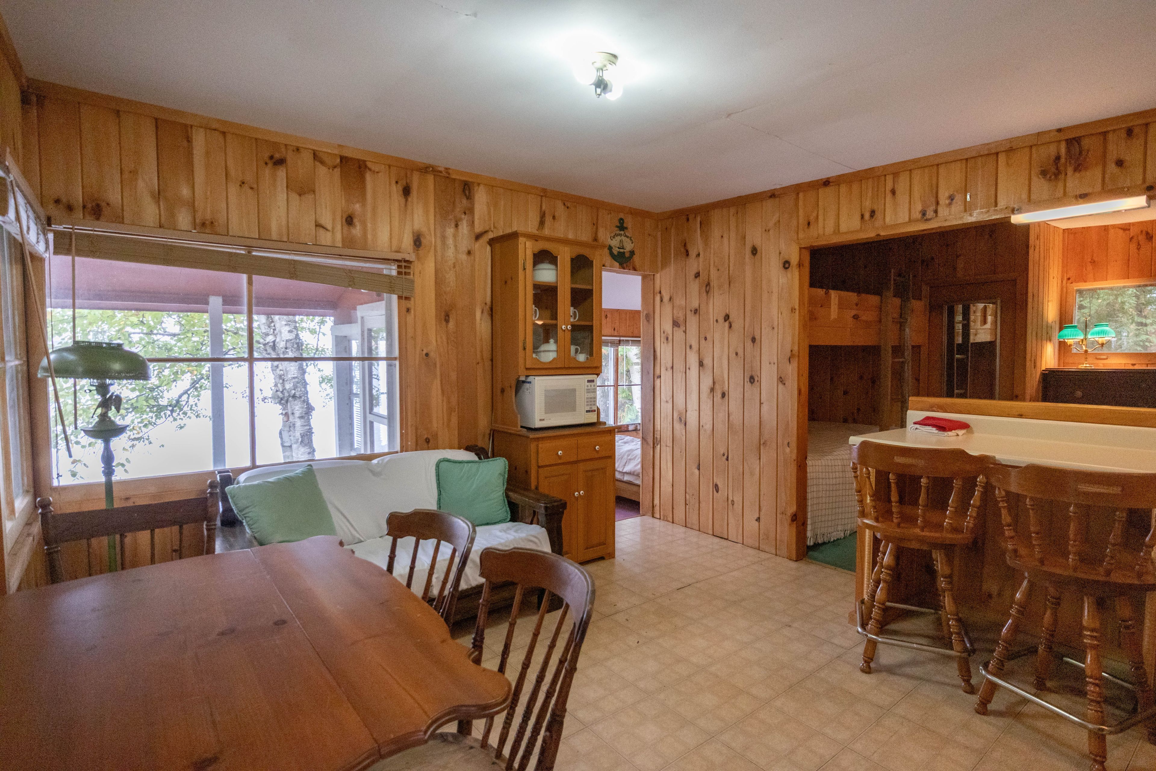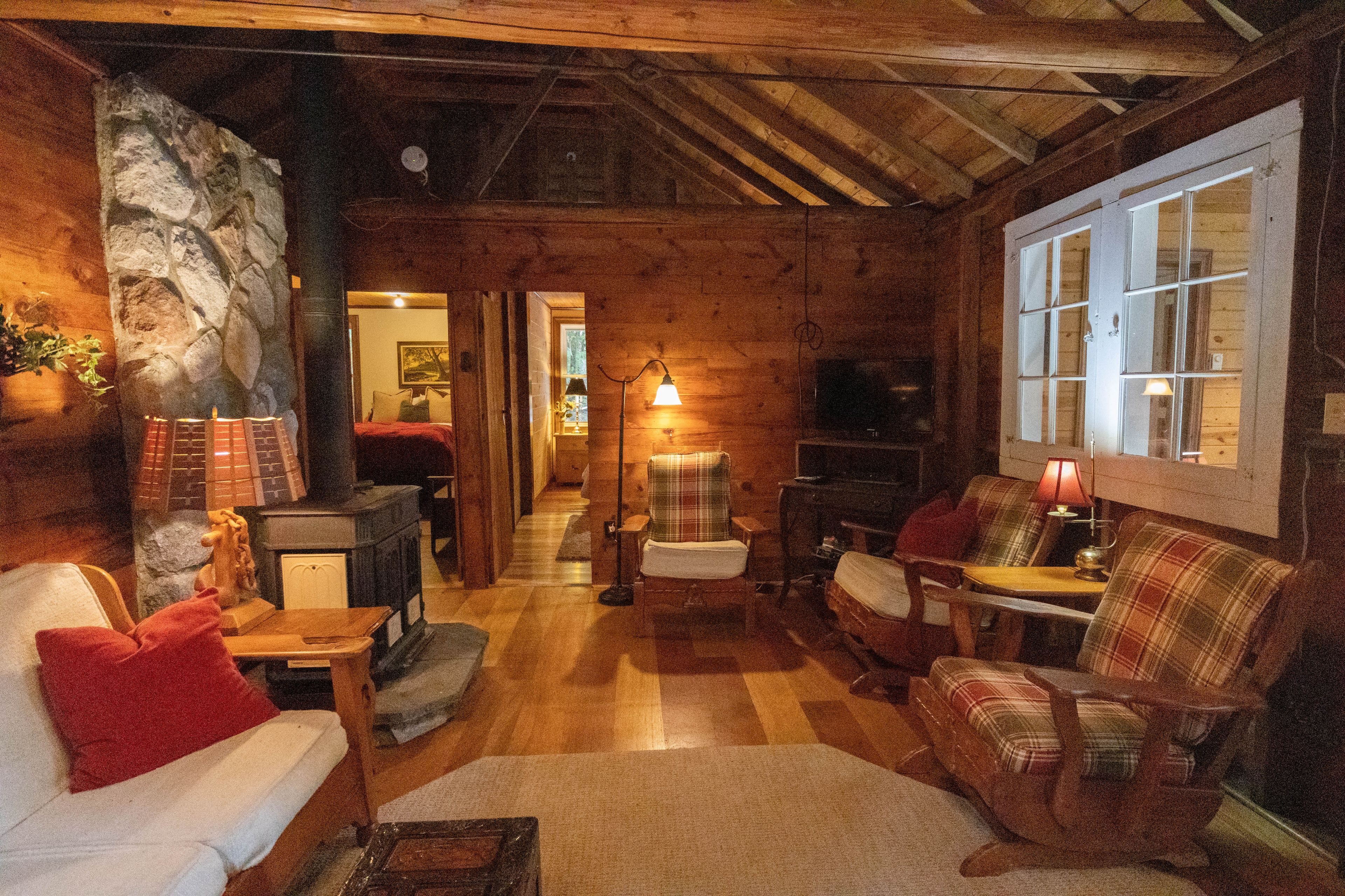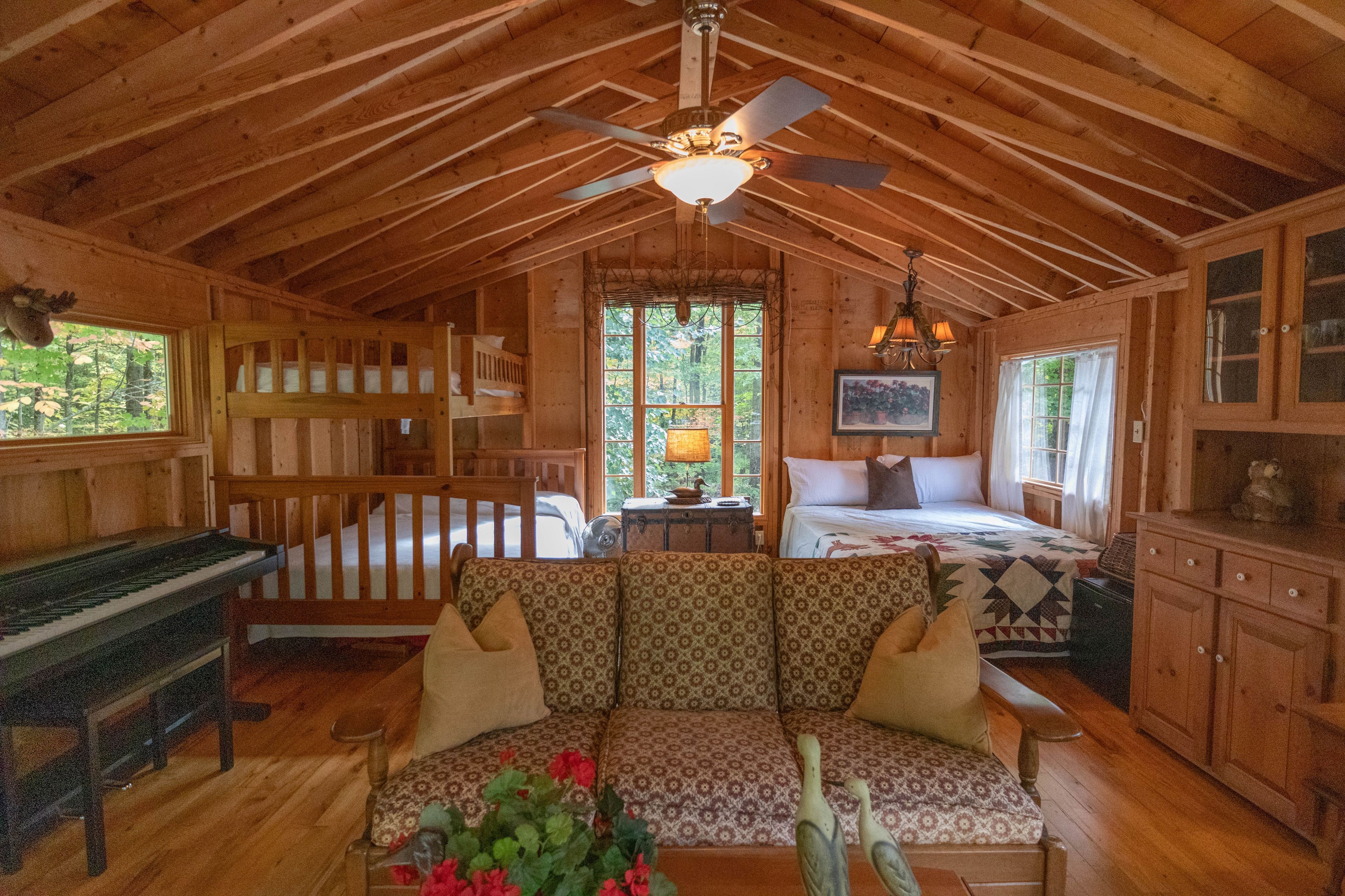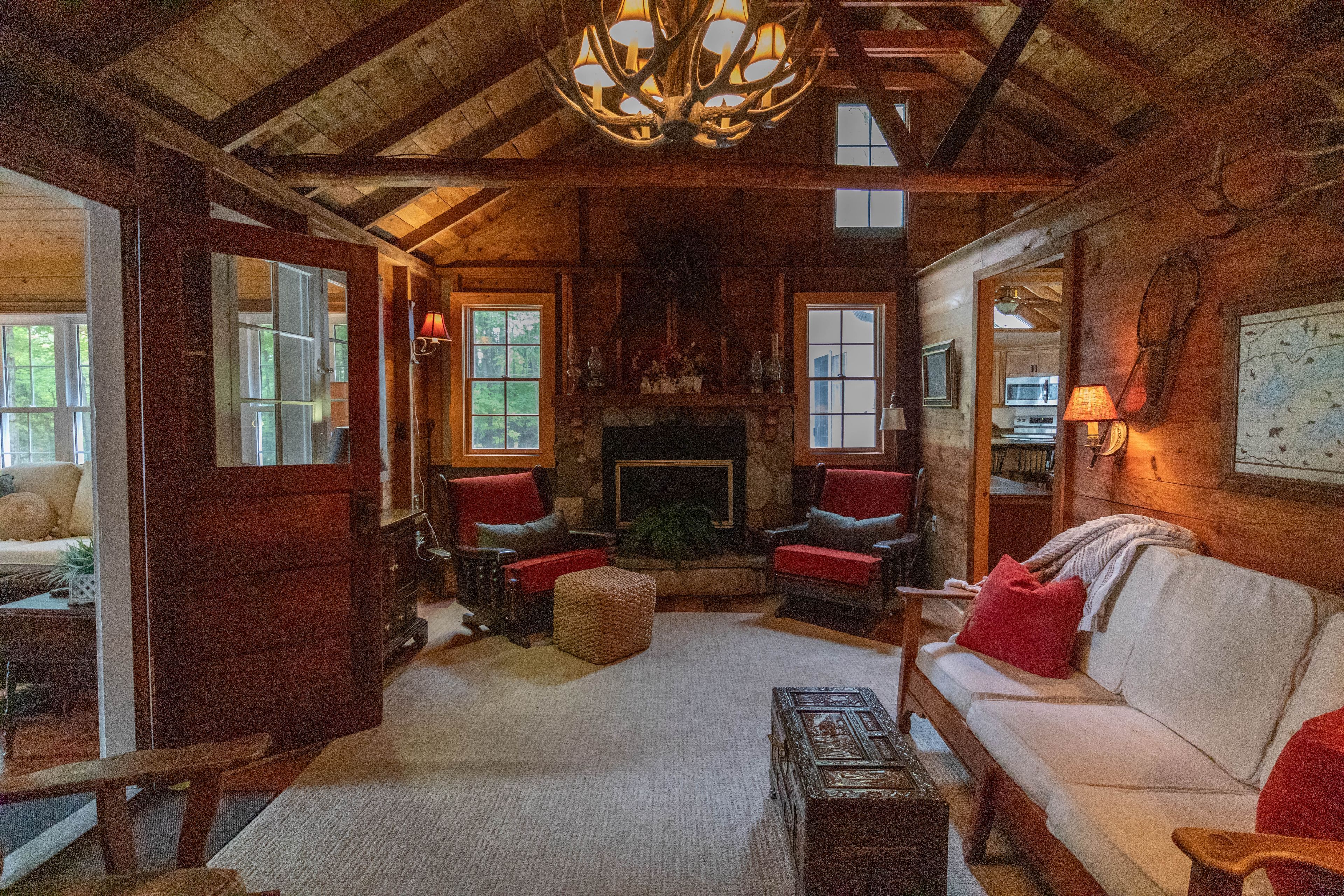• Main cottage features a cozy living room and spacious kitchen.