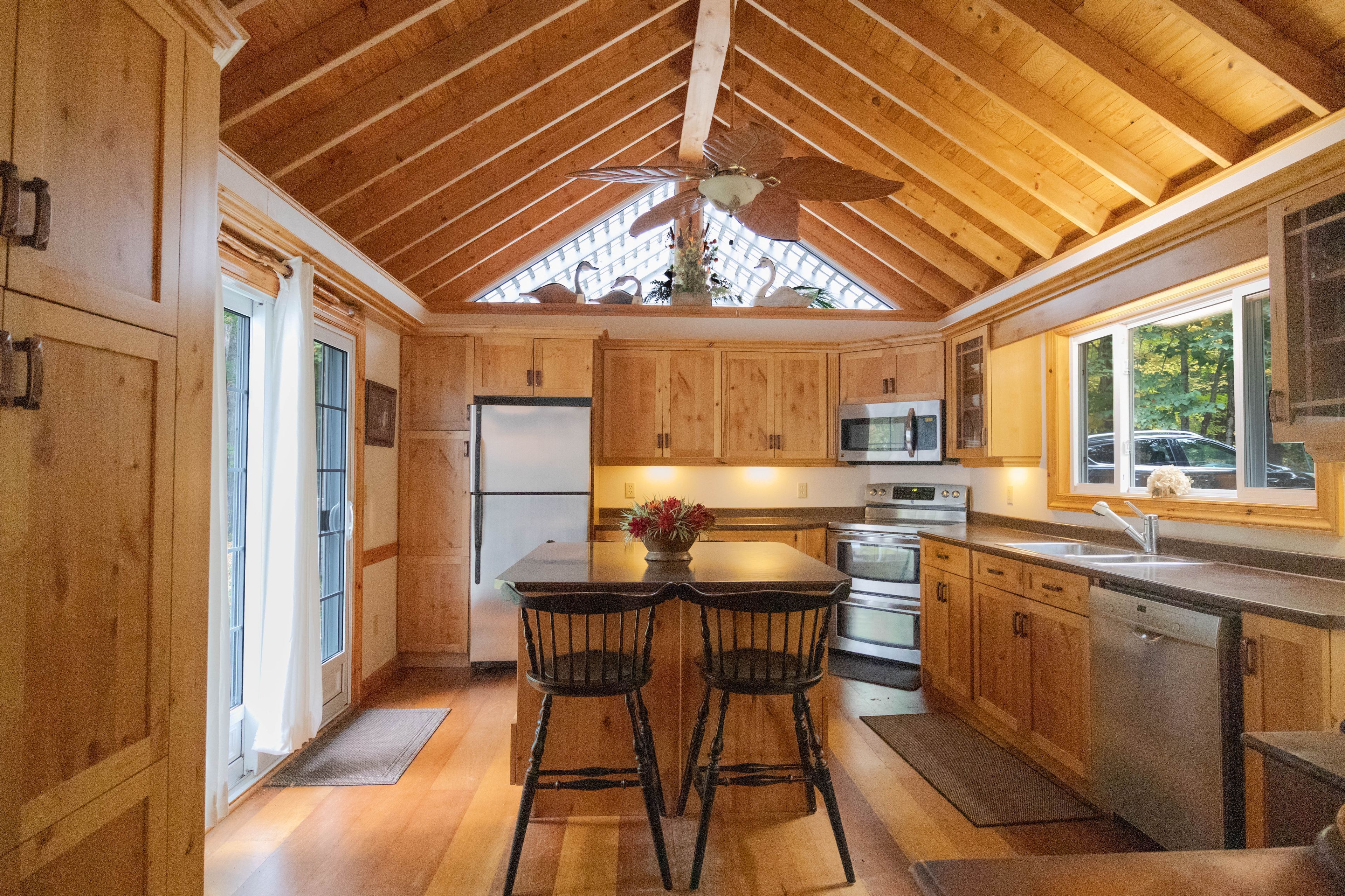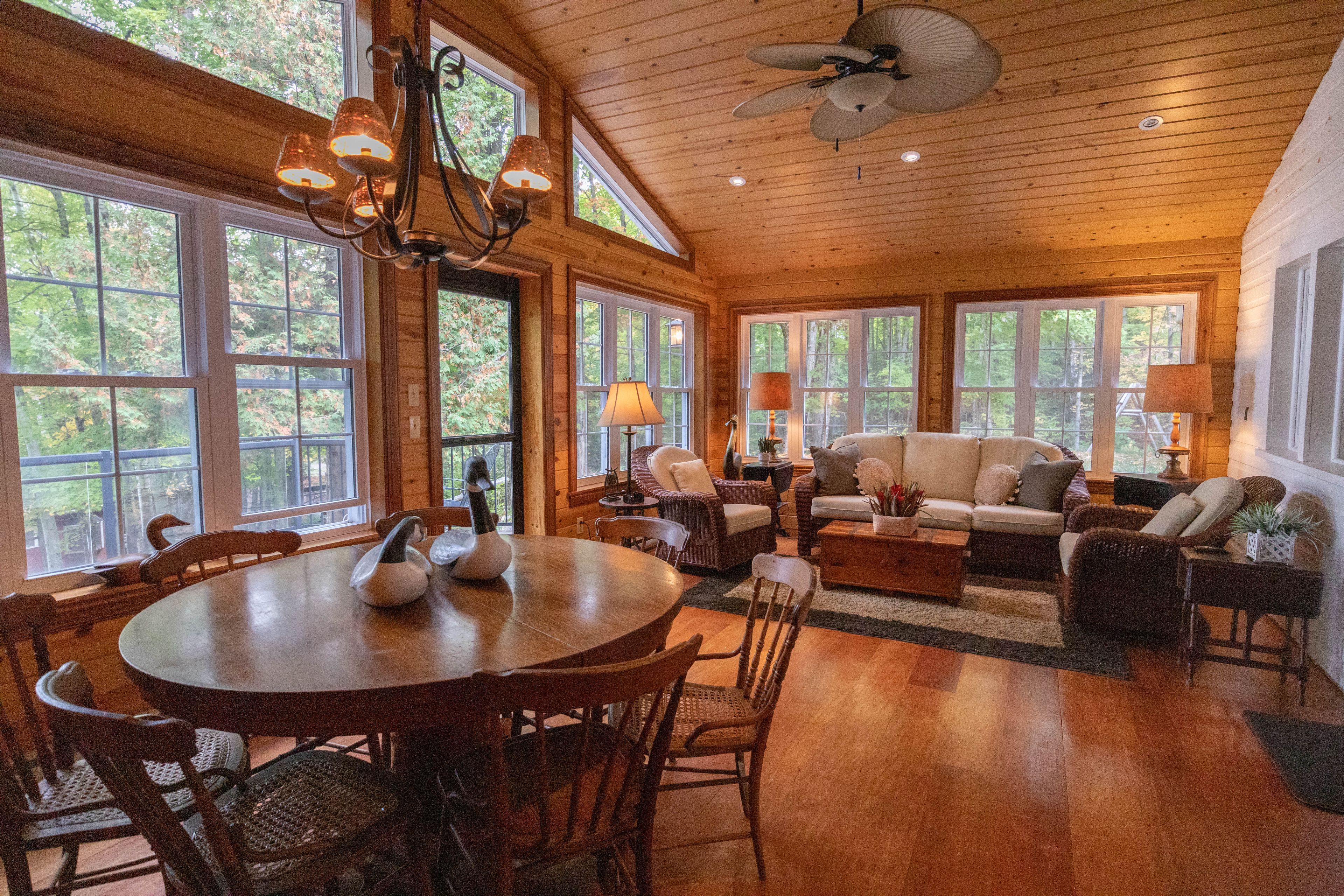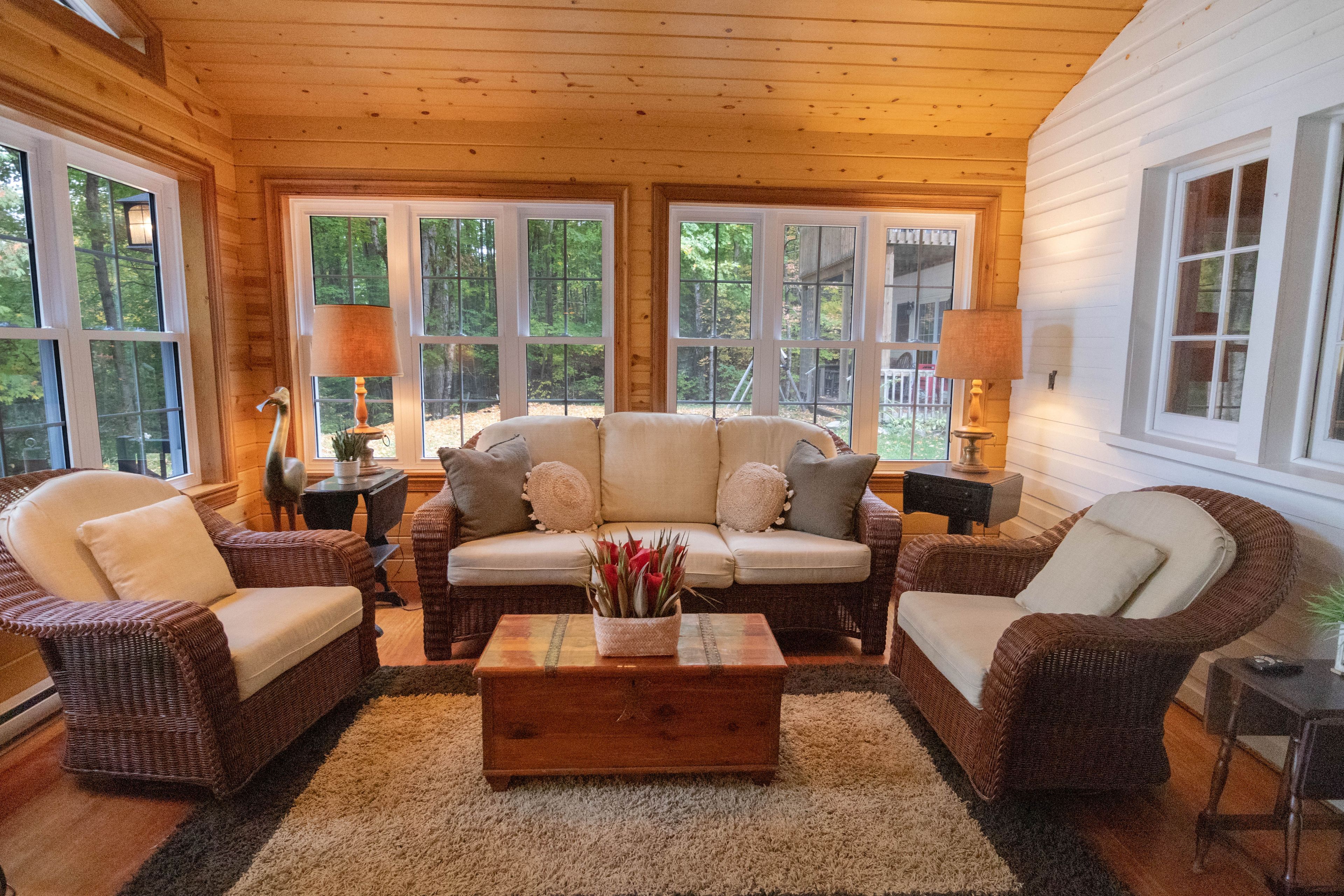 • Main cottage features a cozy living room and spacious kitchen.