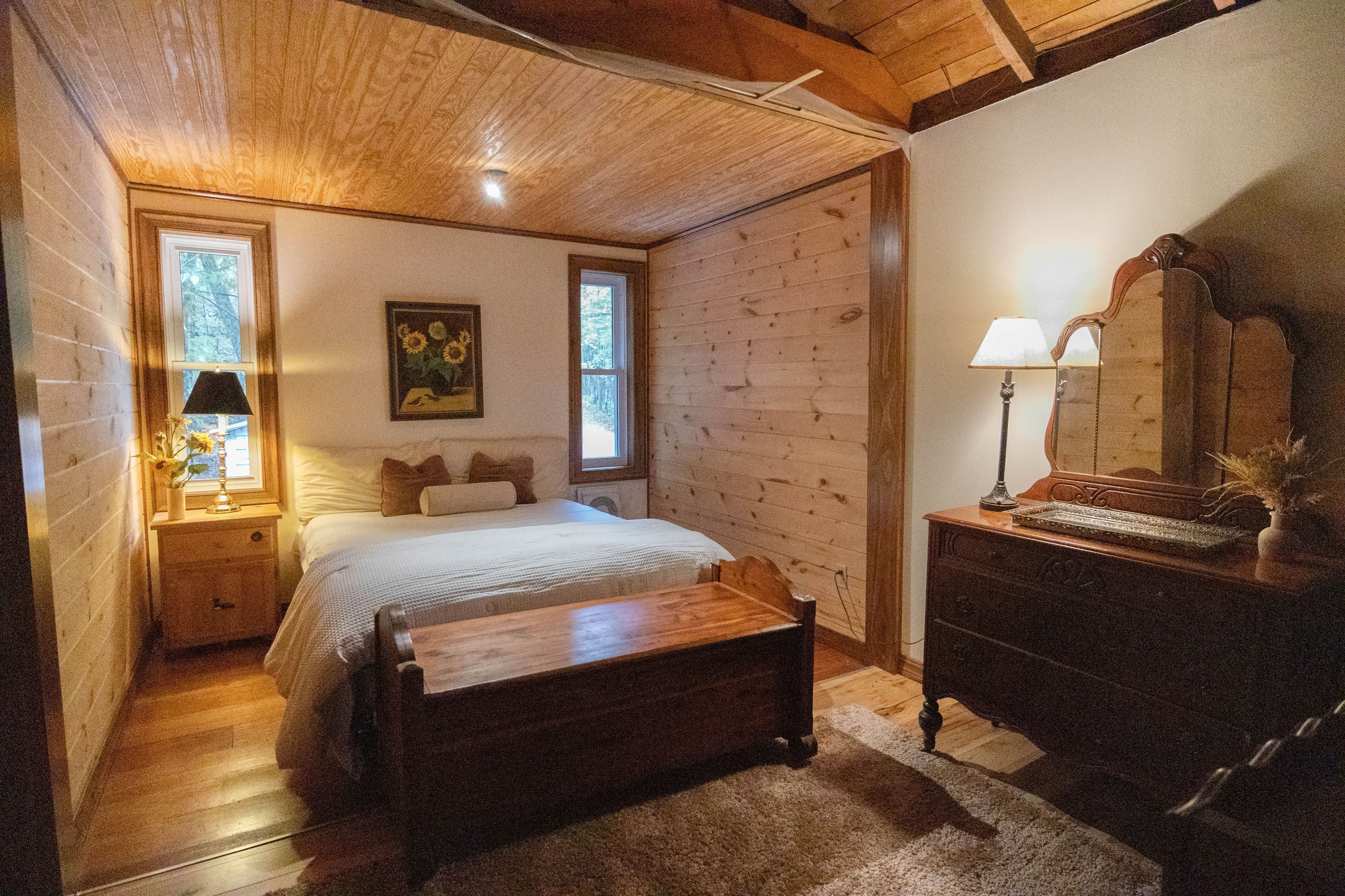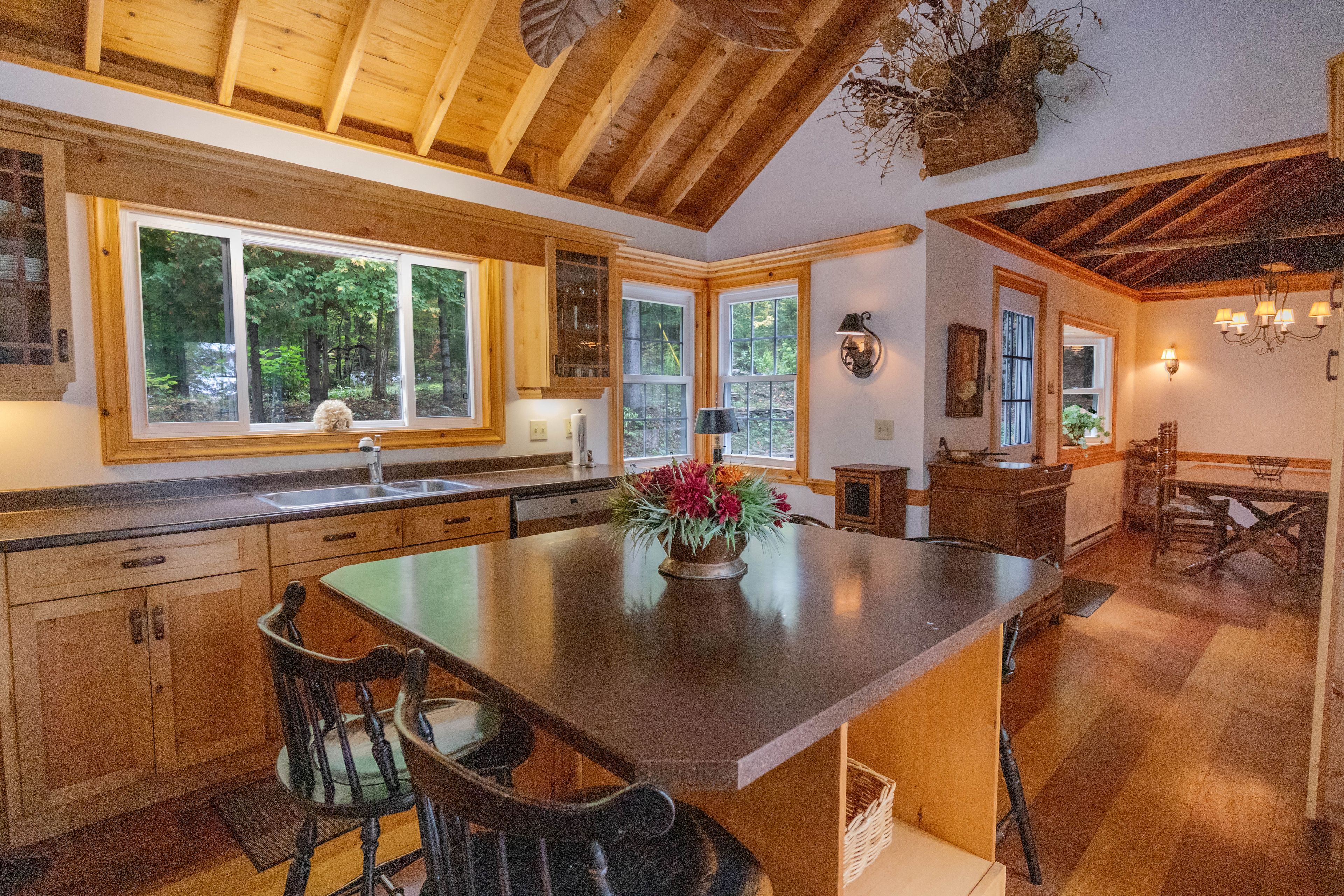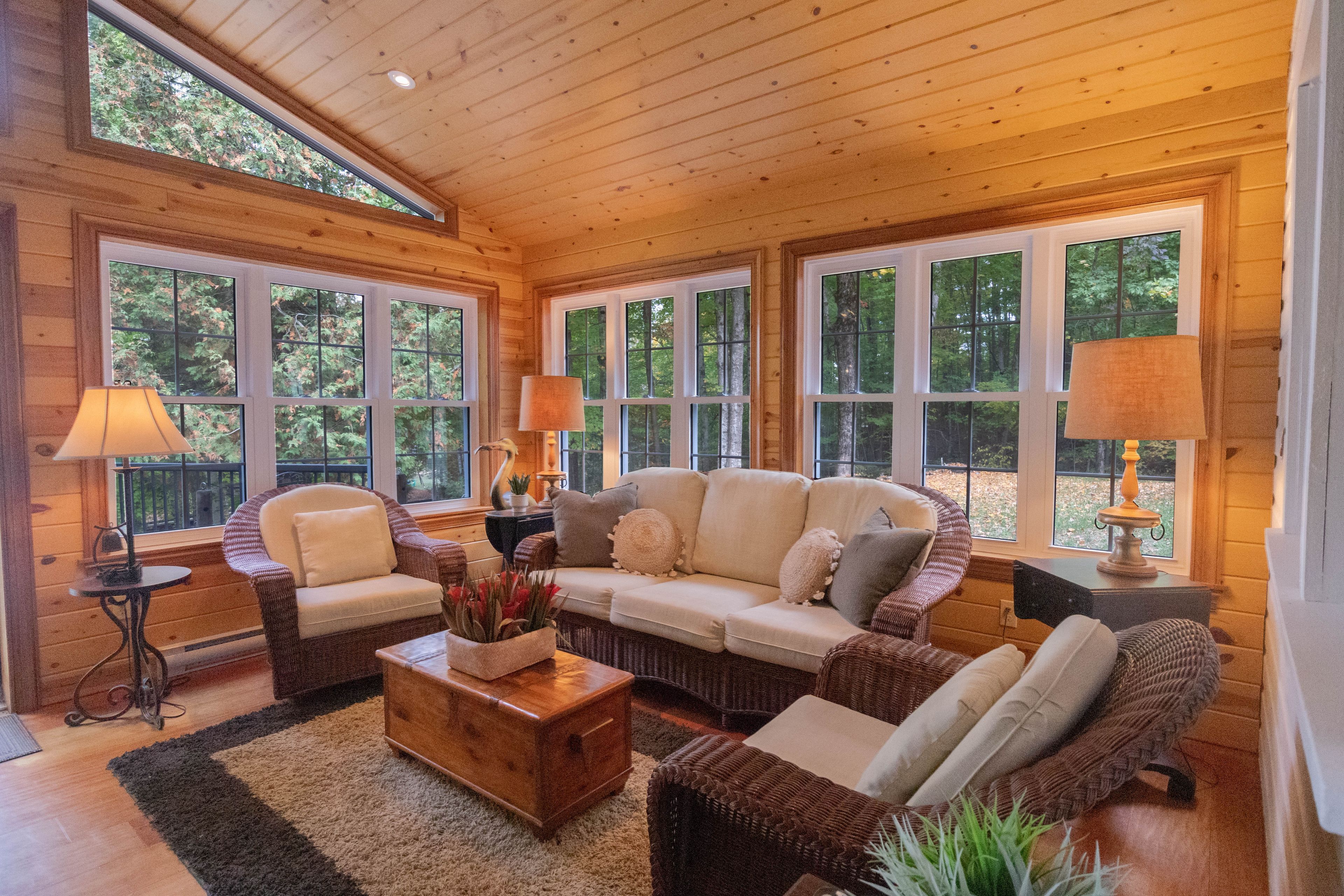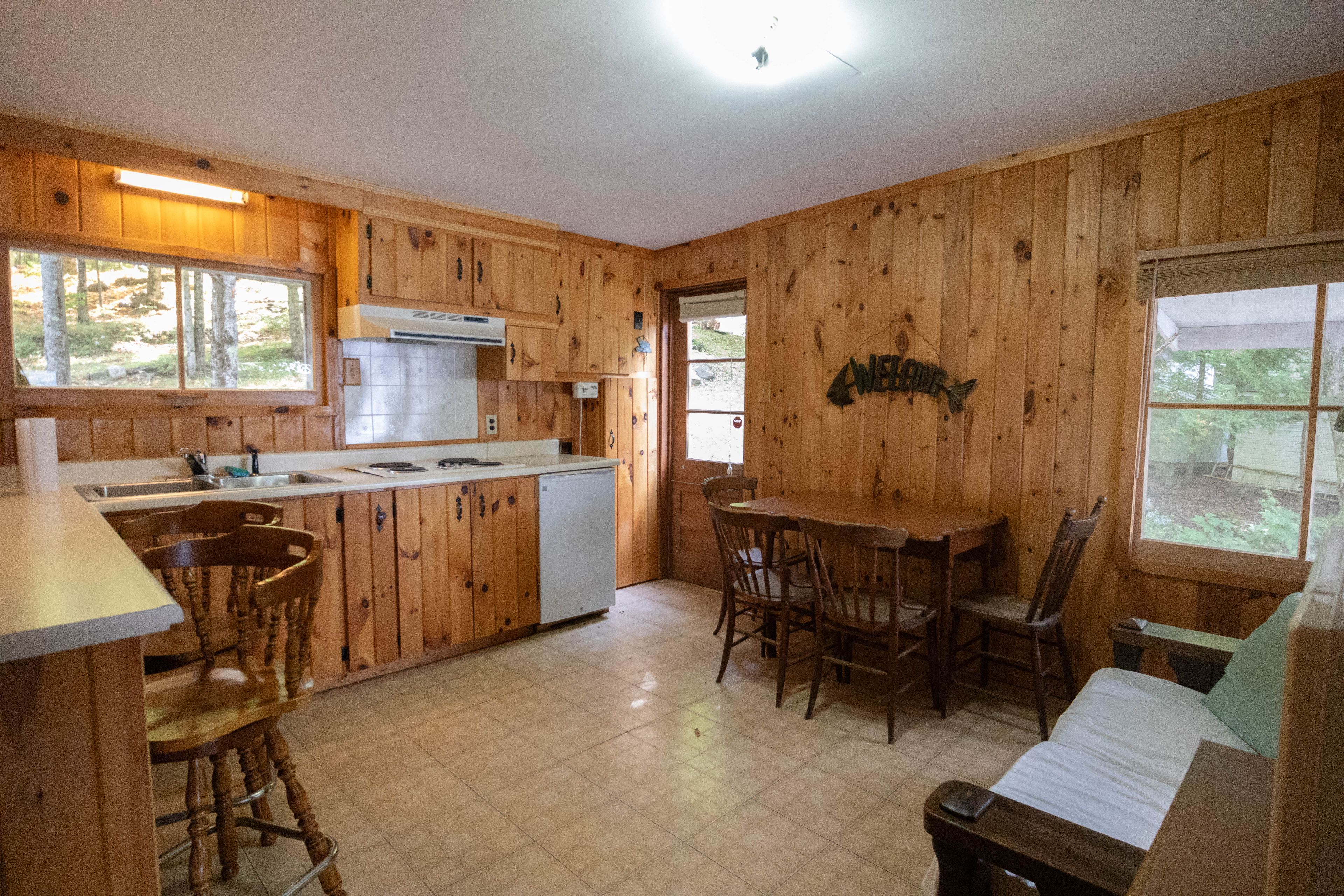 • Main cottage features a cozy living room and spacious kitchen.