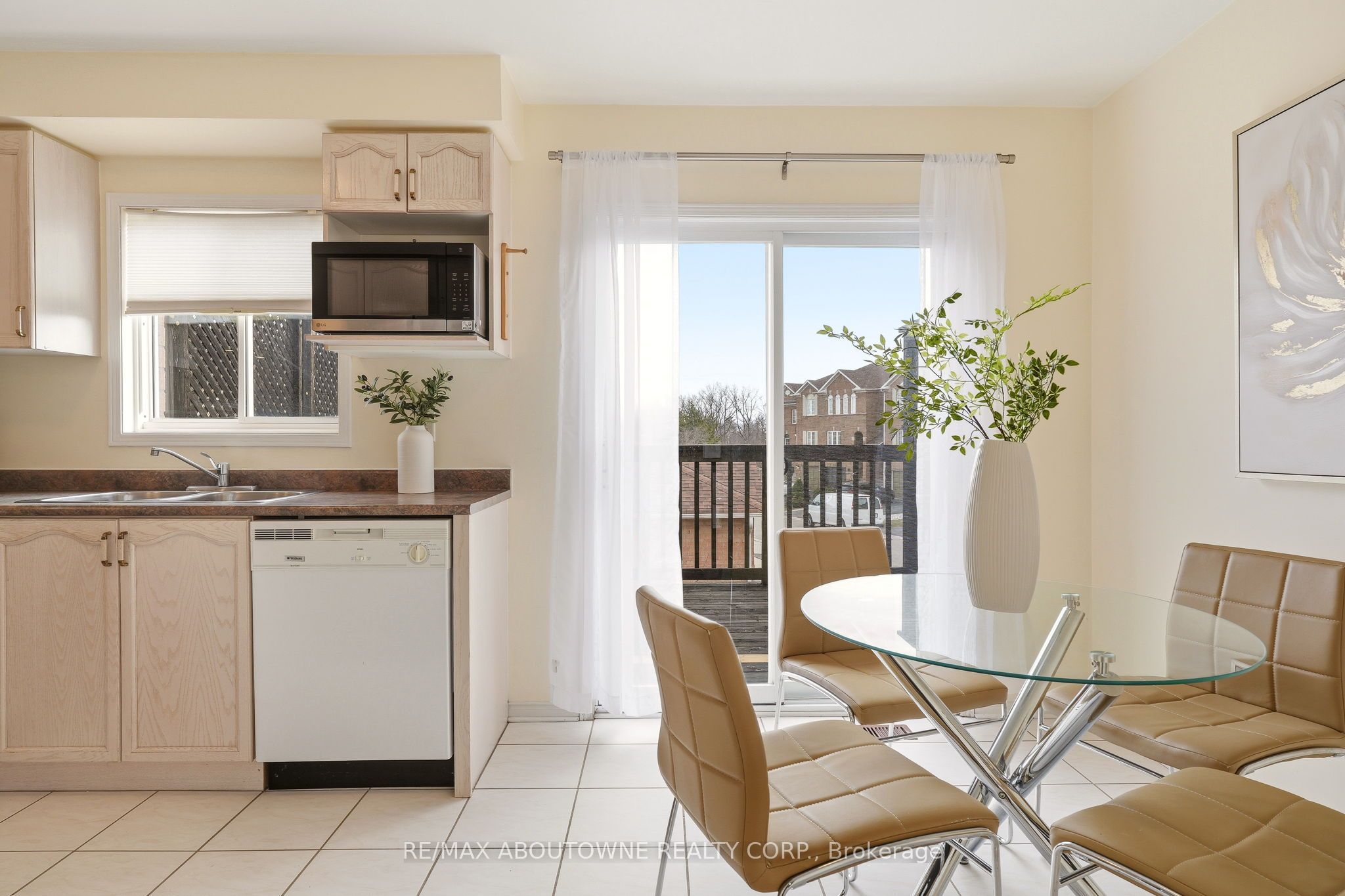 Calling all gardeners! Start your day on the deck, unwind in your private garden retreat at the end of the day, and enjoy a lifestyle where everything is just steps away. Welcome to this beautifully maintained & upgraded, end unit freehold featuring 2-bedrooms, 2. 5-bath and offering comfort, functionality, and an ideal layout for modern living. The primary bedroom features an updated ensuite and the 2nd spacious bedroom can enjoy the renovated main bath -perfect for privacy, guests, or a shared lifestyle. The sun-filled eat-in kitchen walks out to a private deck with a clear view, while the walkout basement extends your living space to a fully fenced, landscaped and hardscaped backyard, truly a gardener's dream and a peaceful outdoor escape. The lower level boasts tasteful cork flooring and would make a great family room, bright office space or gym, even a third bedroom if needed! Inside, you'll appreciate hardwood floors and solid hardwood staircases, an eat in kitchen complimented by stainless steel appliances. Enjoy the convenience of inside entry from the garage and a private driveway! Step outside and embrace a walkable lifestyle-just steps to shops, restaurants, parks, and endless amenities. Commuters will love the quick access to major highways and the go train. Located in the highly sought-after iroquois ridge high school catchment, this is more than a home-it's a lifestyle opportunity in one of the area's most desirable communities. Notable updates include: roof 2015, furnace 2023, air conditioning2023,eavestroughs 2020, ensuite 2014, main bath 2020, patio 2021, fridge 2021, range and extractor fan 2022, microwave 2025