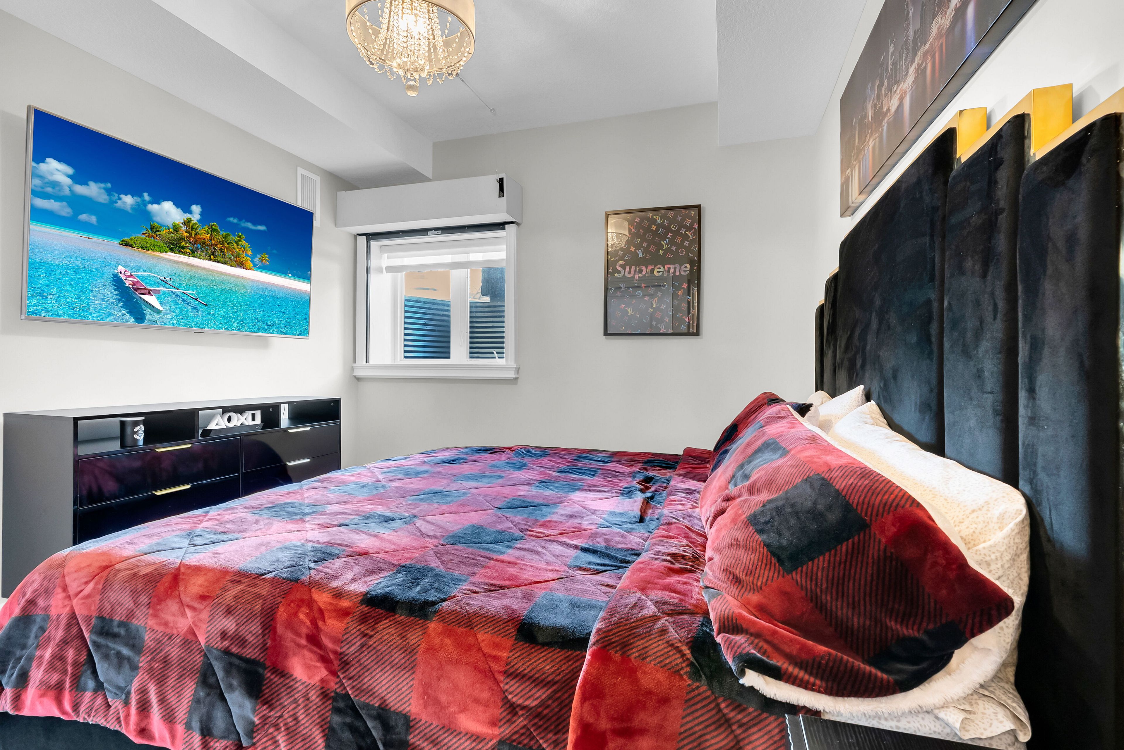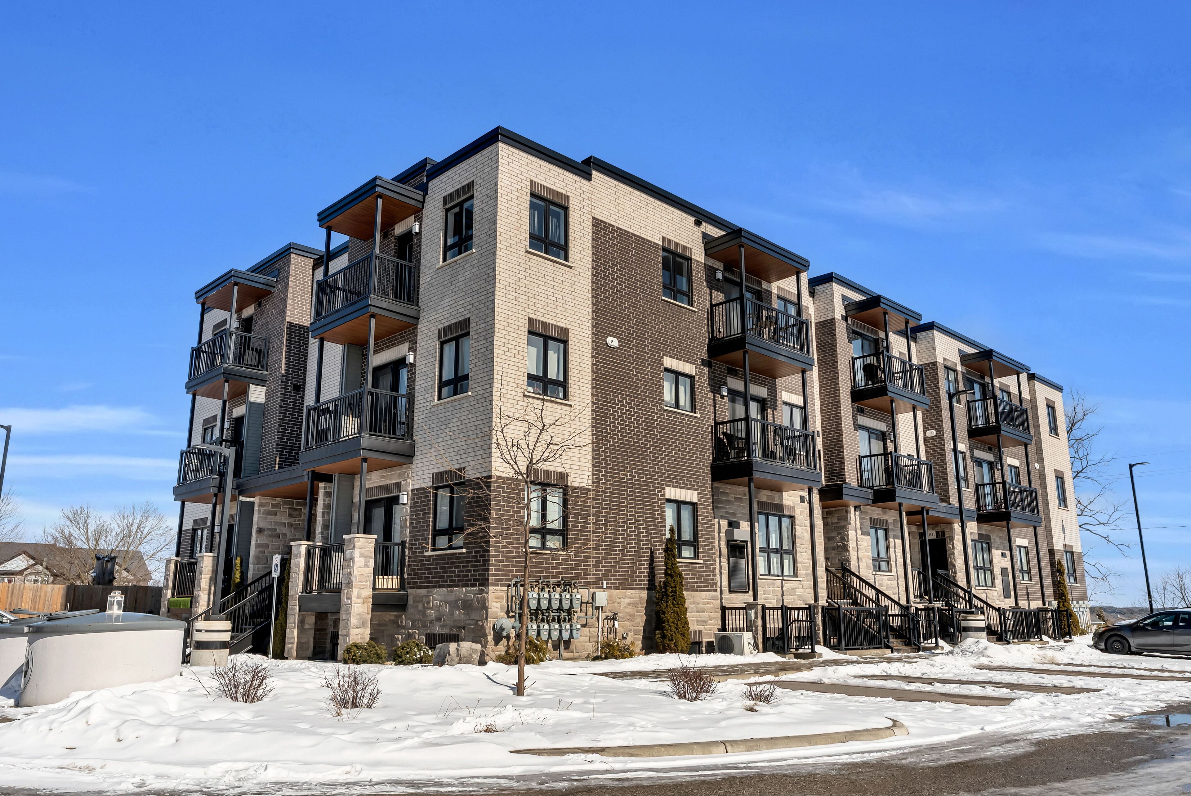 This beautifully appointed and modern 3 bedroom, 2 full bathroom stacked townhome features tasteful updates and comfortable living throughout! The first thing you will notice when you enter is the practical open concept layout with an enormous and upgraded chef-inspired kitchen with huge centre island and quartz countertops - ideal for casual meals or entertaining! The 9 foot ceilings, accent wall, updated light fixtures, pot lights and large windows make this a spacious and incredibly bright unit. The open concept layout seamlessly connects the living, dining, and kitchen spaces - perfect for everyday living, hosting guests or for a growing family. The best part is that the entire home is on one floor - no stairs to climb to go upstairs to your bedrooms! You will also notice how impeccably clean and incredibly maintained this home is. 2 parking spaces are included in addition to plenty of visitor's parking. This is a first-time homebuyer or commuters dream - only 5 minutes from hwy 401! Walking distance to schools, parks, hiking trails.