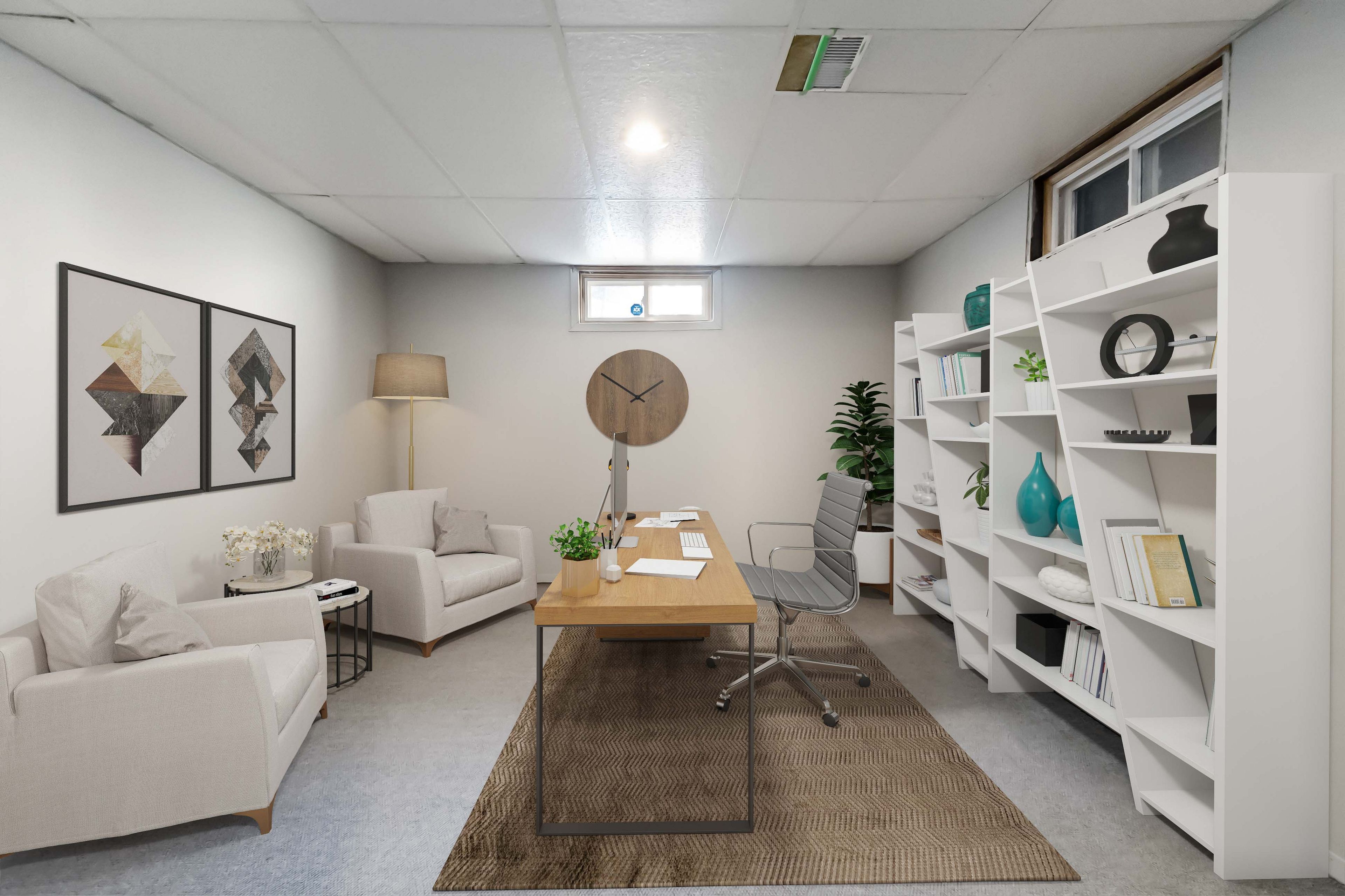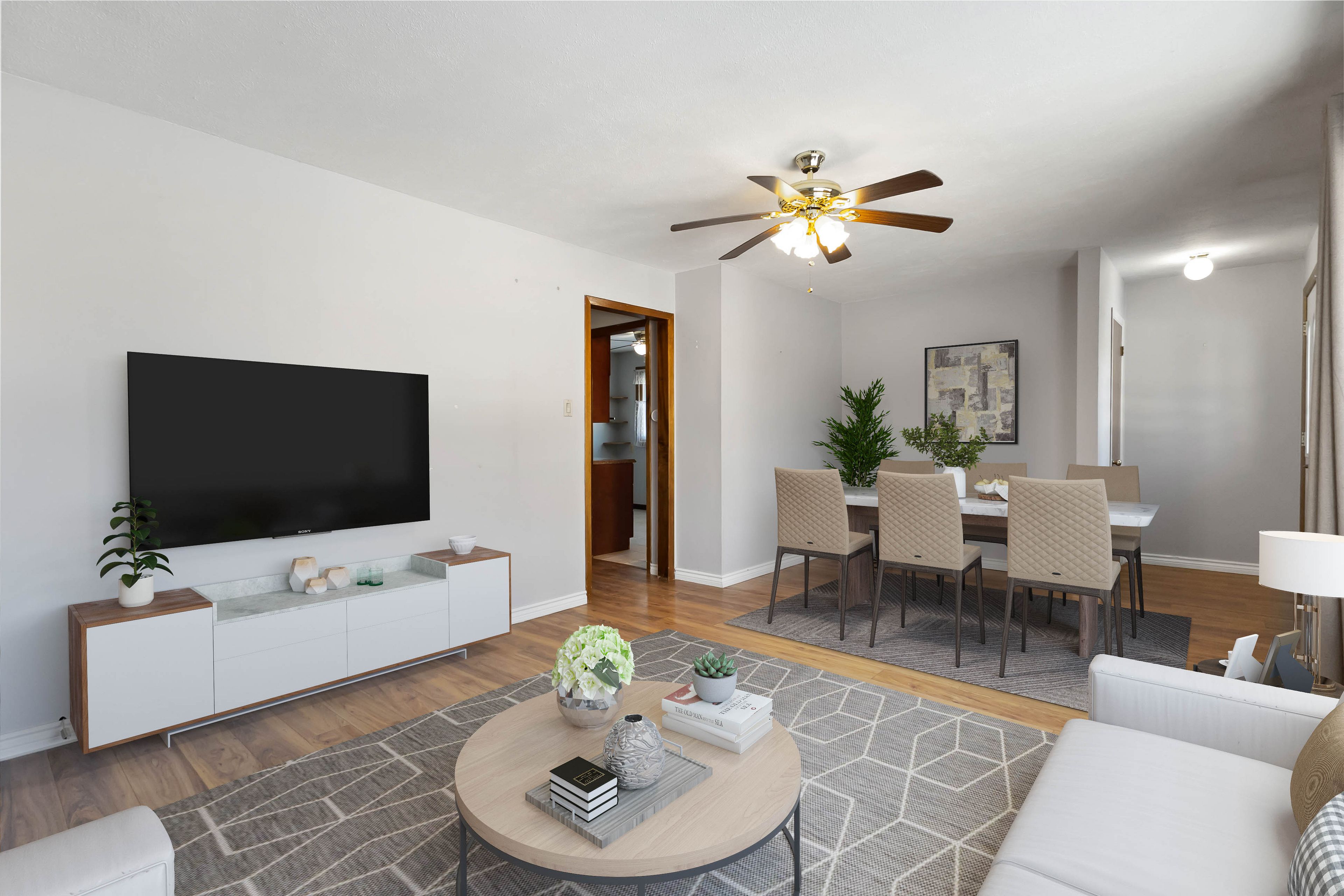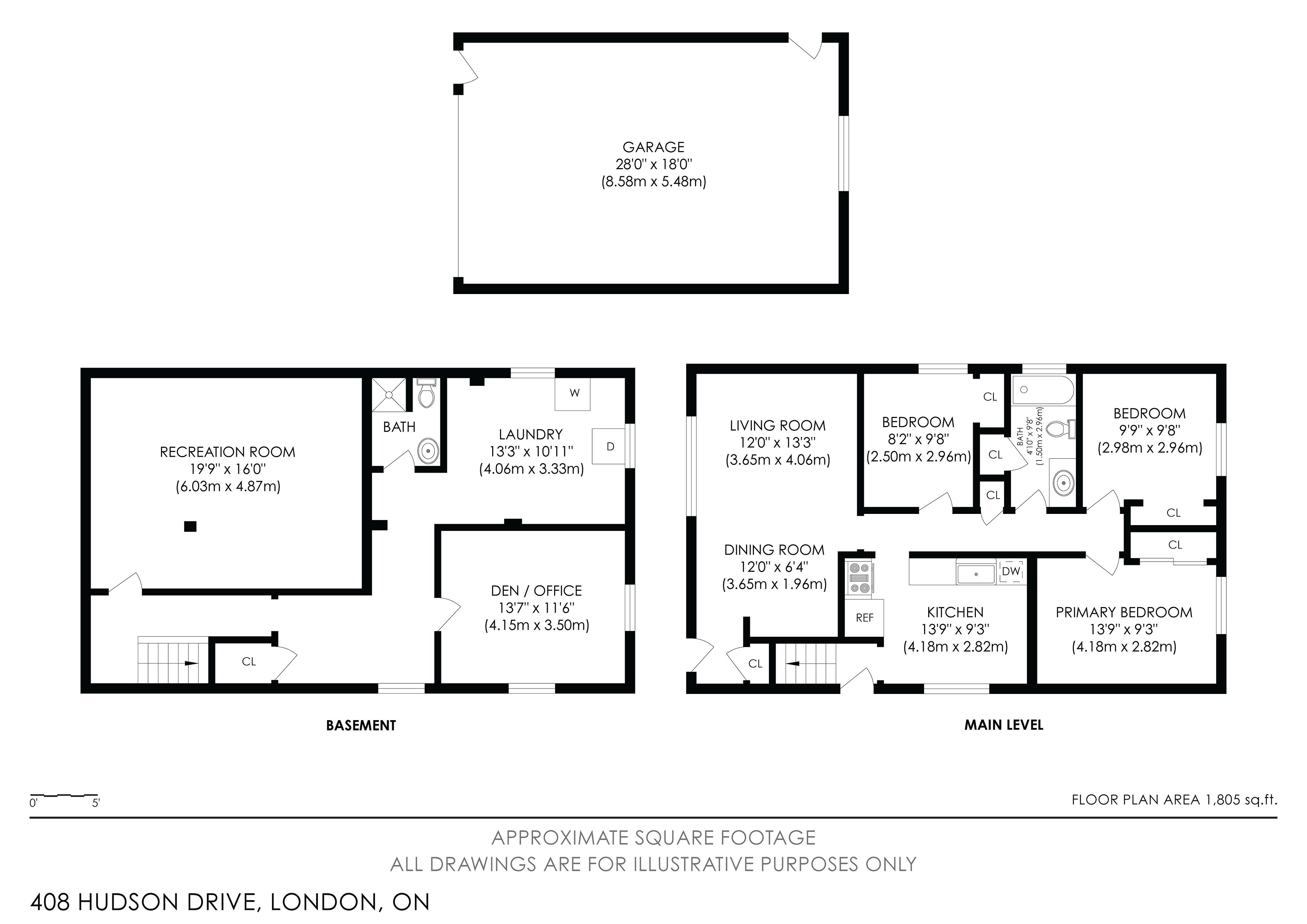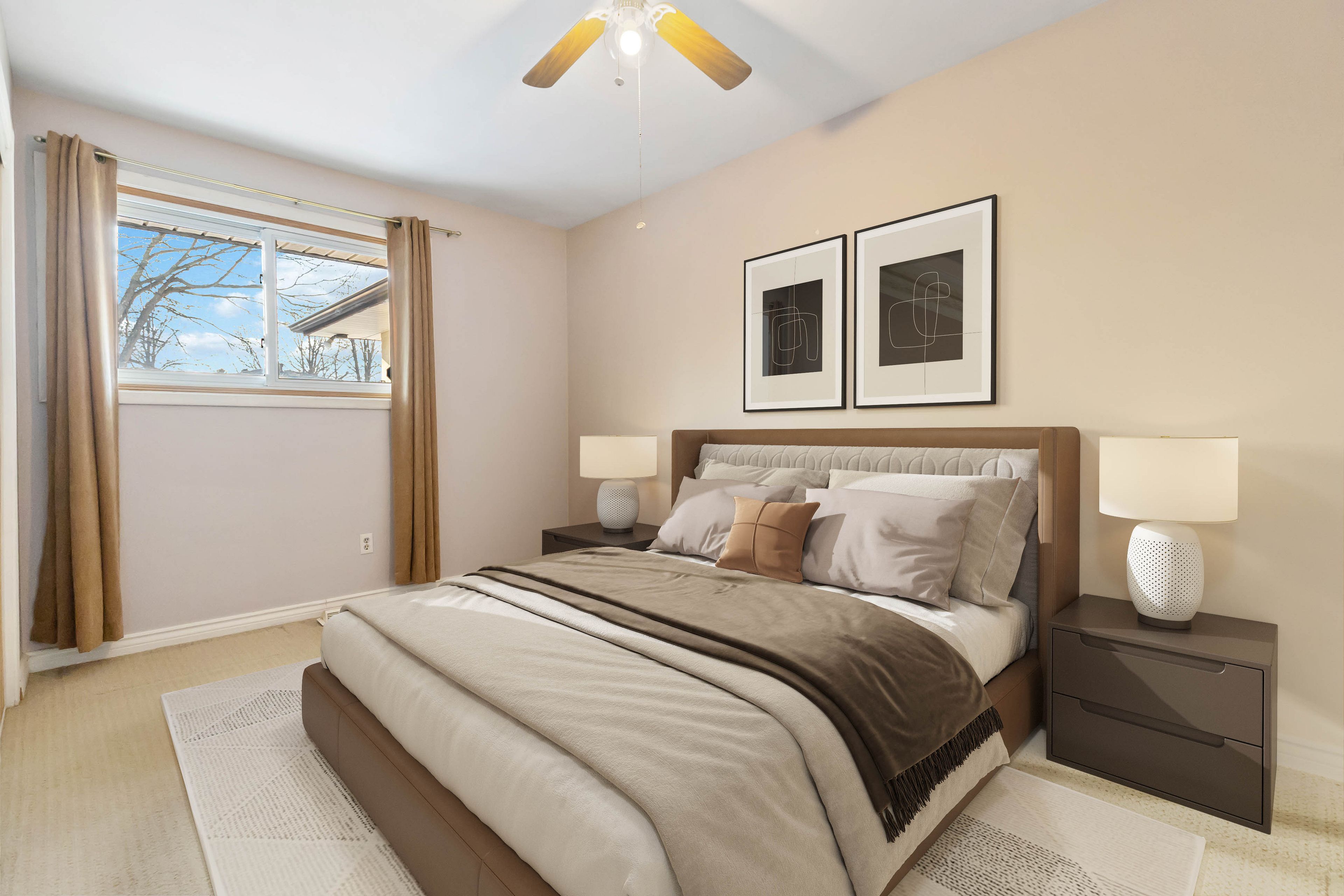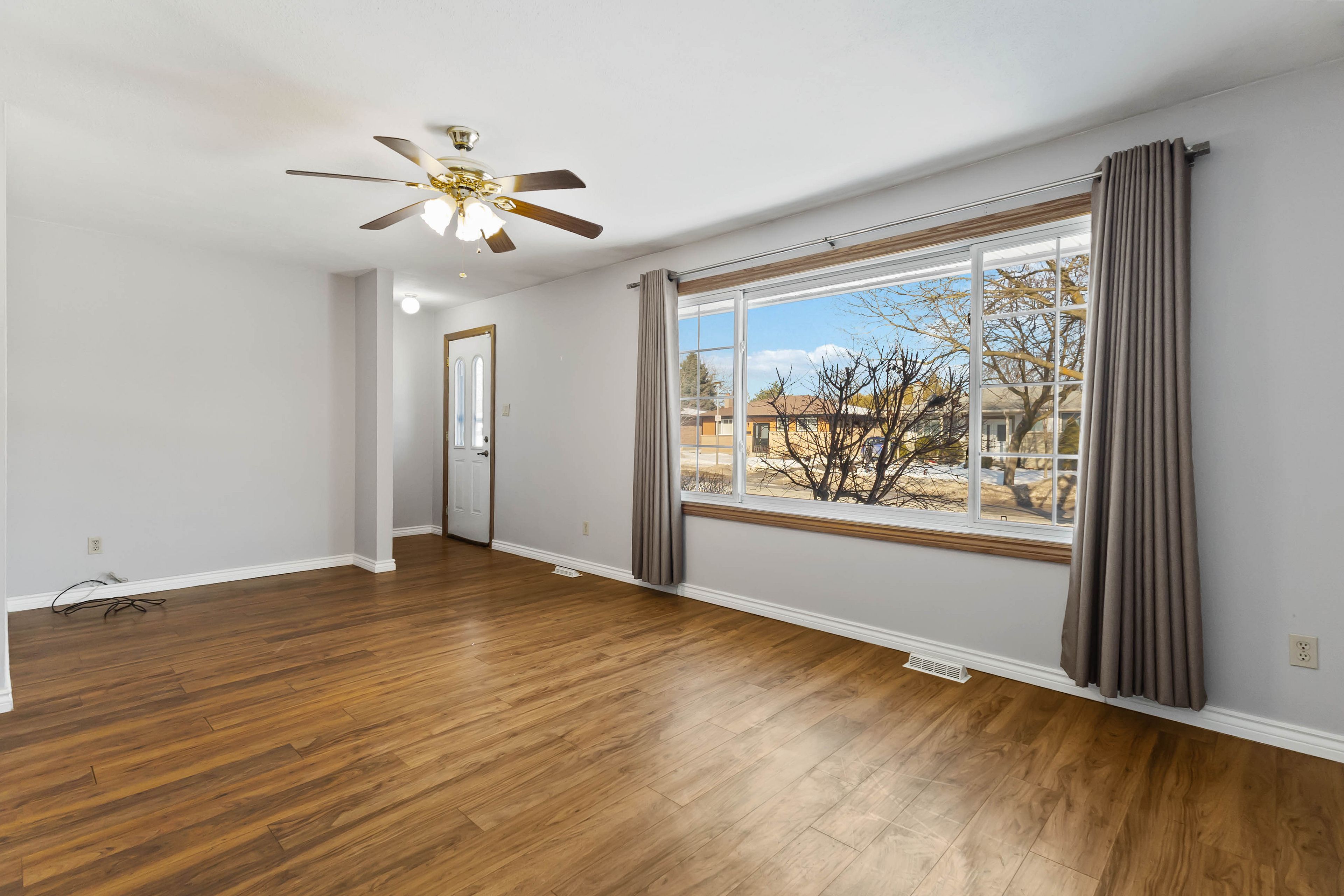 • Practical main floor layout with bright living spaces and three bedrooms.