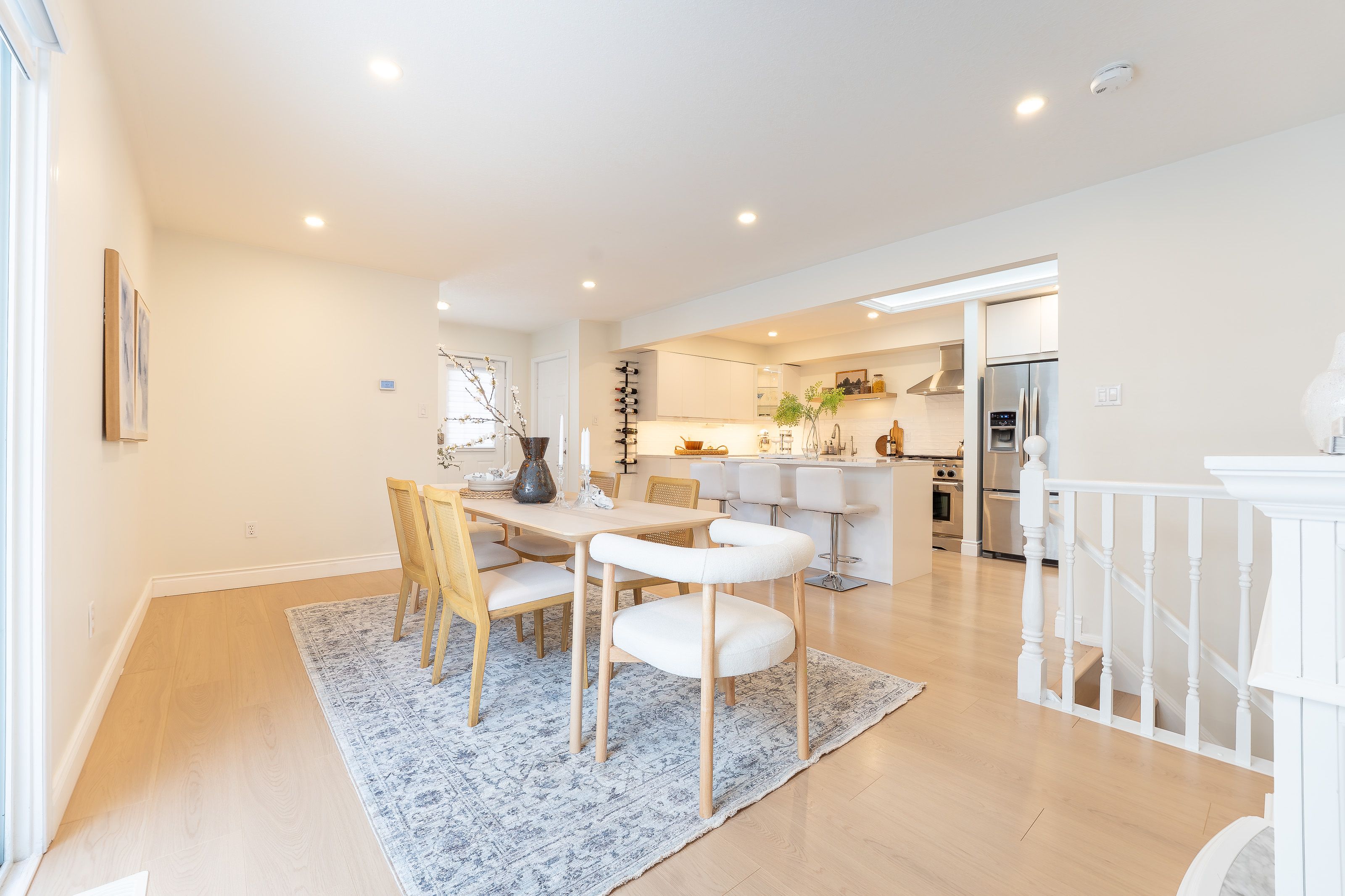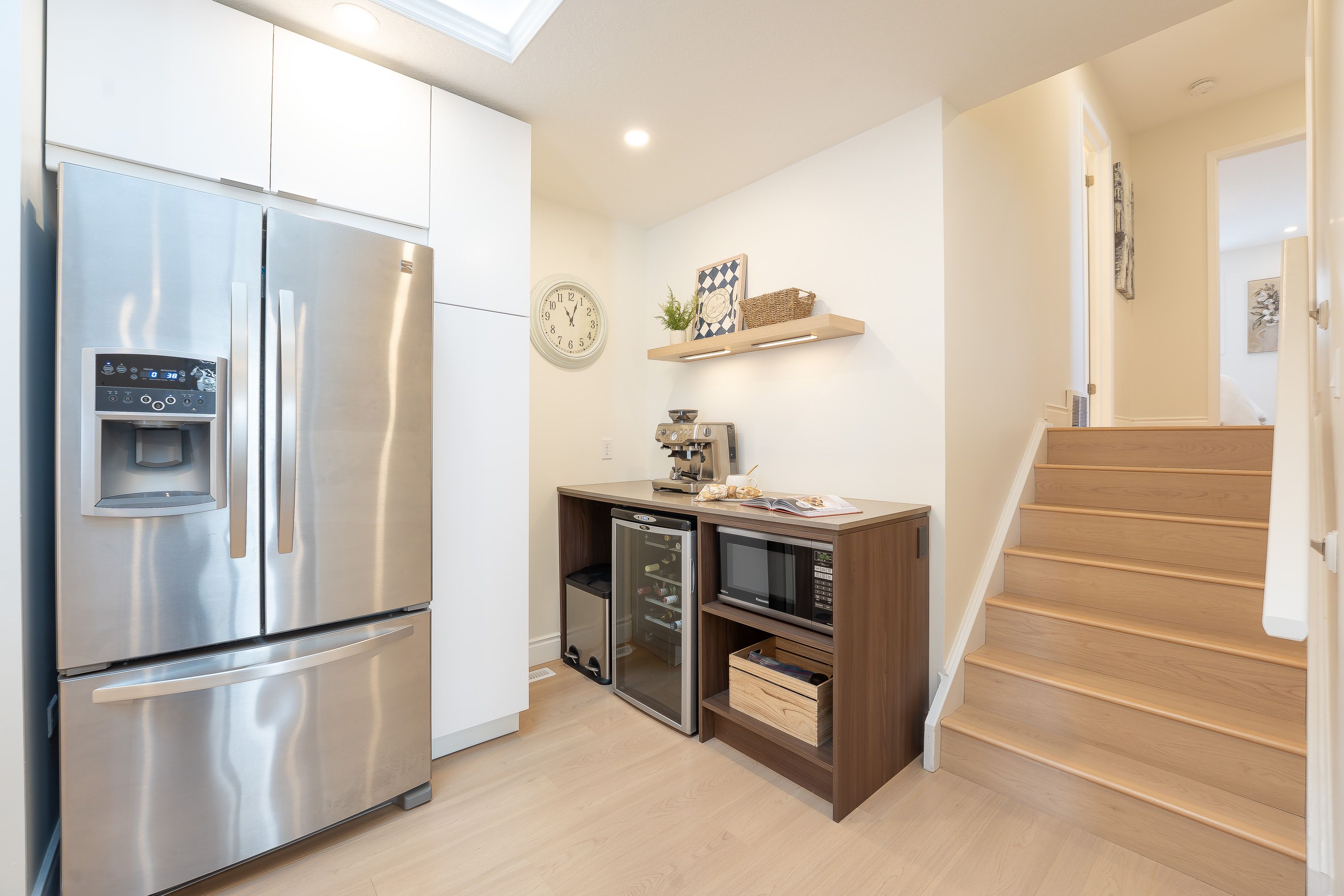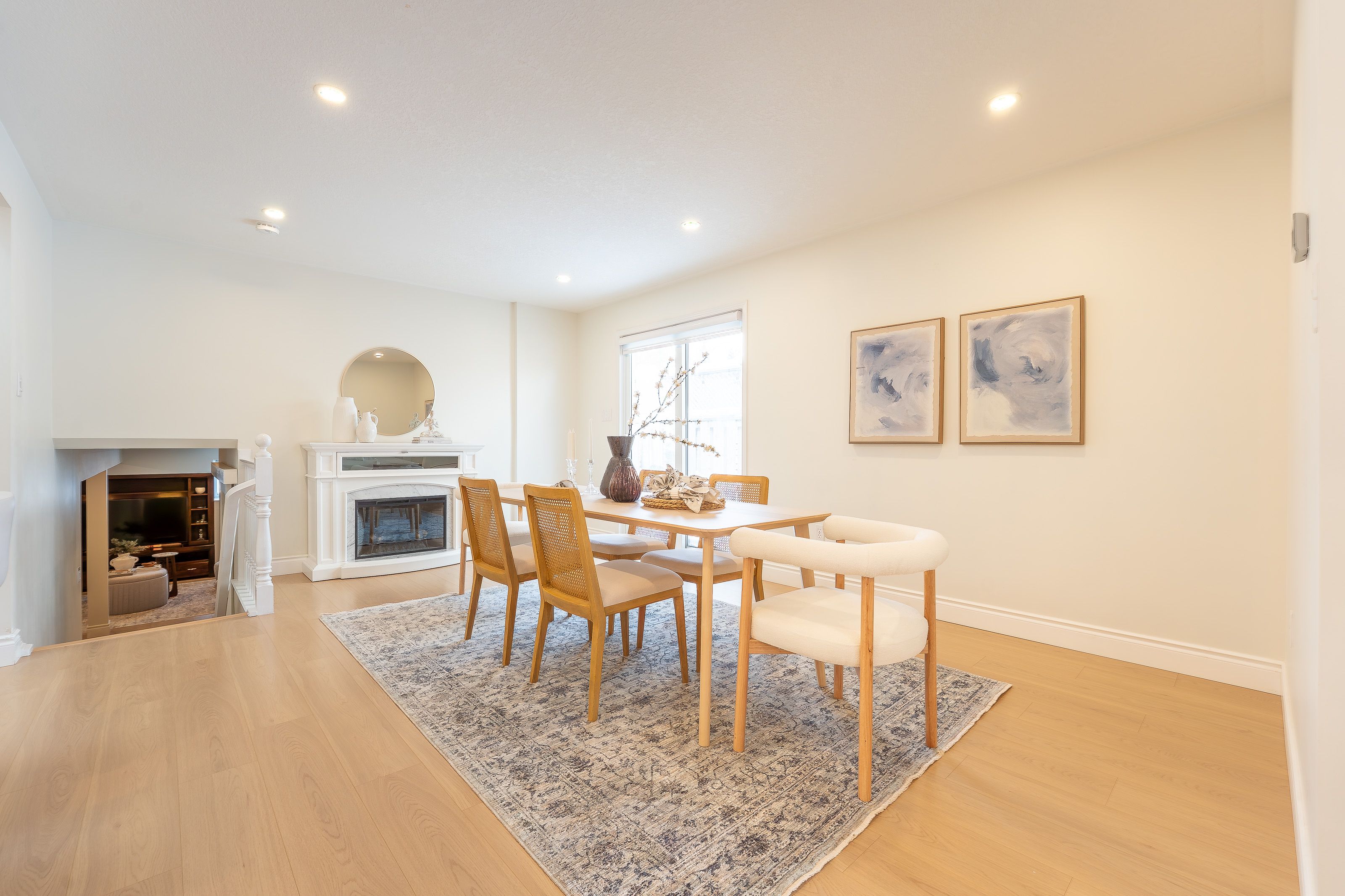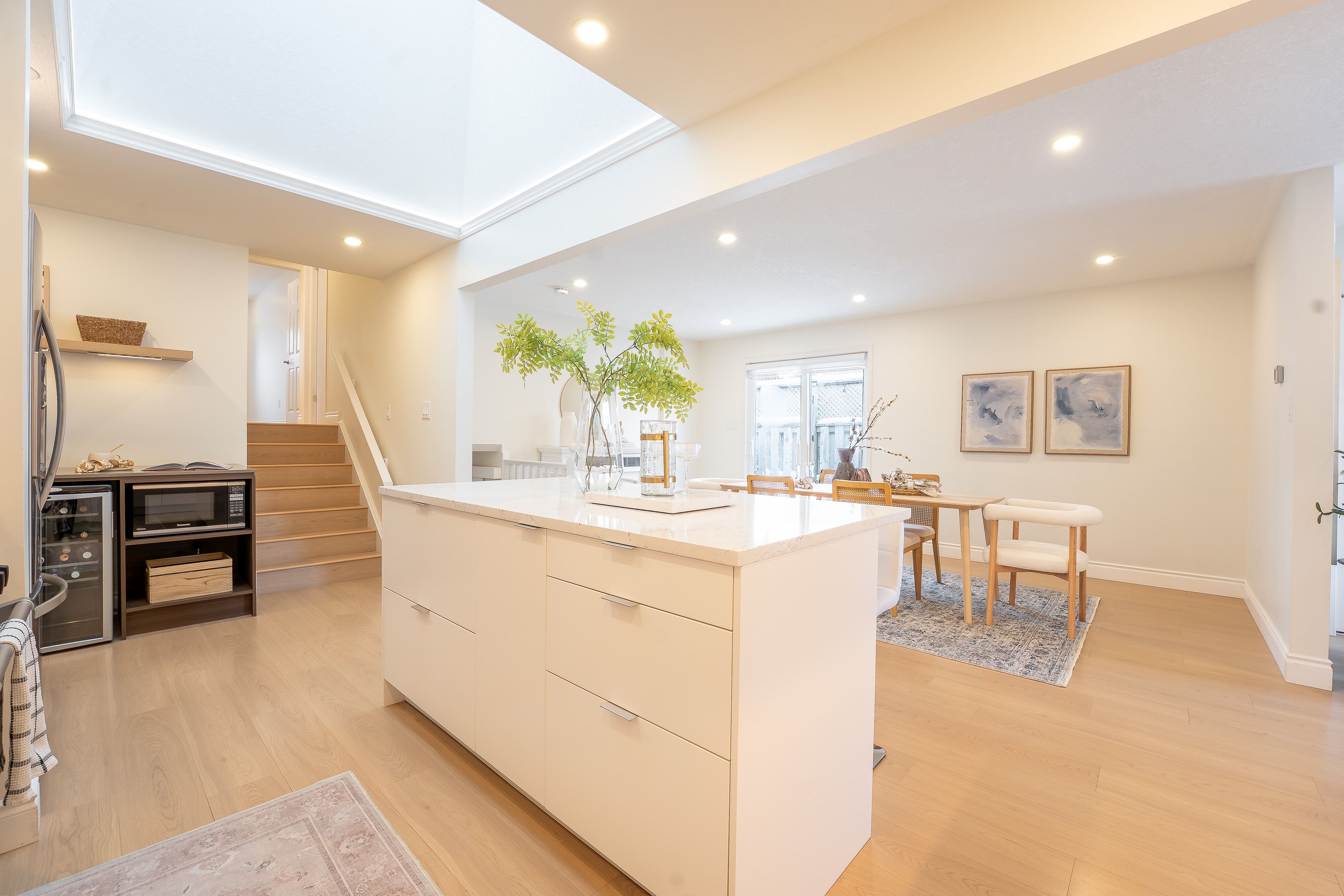 Welcome to 408 joseph street, a beautifully updated semi-detached 4 level backsplit located in family-friendly new hamburg. Offering over 1,500 sq ft of finished living space, this home features 3 bedrooms, 2 full bathrooms, a functional multi-level layout, and a fully finished lower level. The main level showcases a stunning designer kitchen with sleek flat-panel white cabinetry, quartz countertops, a large centre island with seating, stainless steel appliances, gas range, modern hood fan, open shelving, and a skylight that fills the space with natural light. The open-concept living and dining areas are finished with wide-plank flooring, recessed lighting, and a cozy fireplace, creating a warm and contemporary atmosphere ideal for everyday living and entertaining. The primary bedroom offers updated flooring, modern lighting, and generous closet space, while two additional generously sized bedrooms provide excellent flexibility for children, guests, or a home office. The main bathroom has been tastefully renovated with a floating double vanity, dual mirrors, upgraded fixtures, and a tub/shower with sliding glass doors. The lower level features a spacious living area with gas fireplace, and large above-grade windows, along with an second full bathroom, making it ideal for hosting guests. Outside, enjoy a private, fully fenced backyard with no rear neighbours, deck and patio areas, and a garden shed. The exterior offers brick and vinyl siding, an attached garage, and a wide concrete driveway with ample space for 2 vehicles . Close to parks, schools, shopping, and quick highway access. An excellent opportunity for first-time buyers, families, or downsizers.