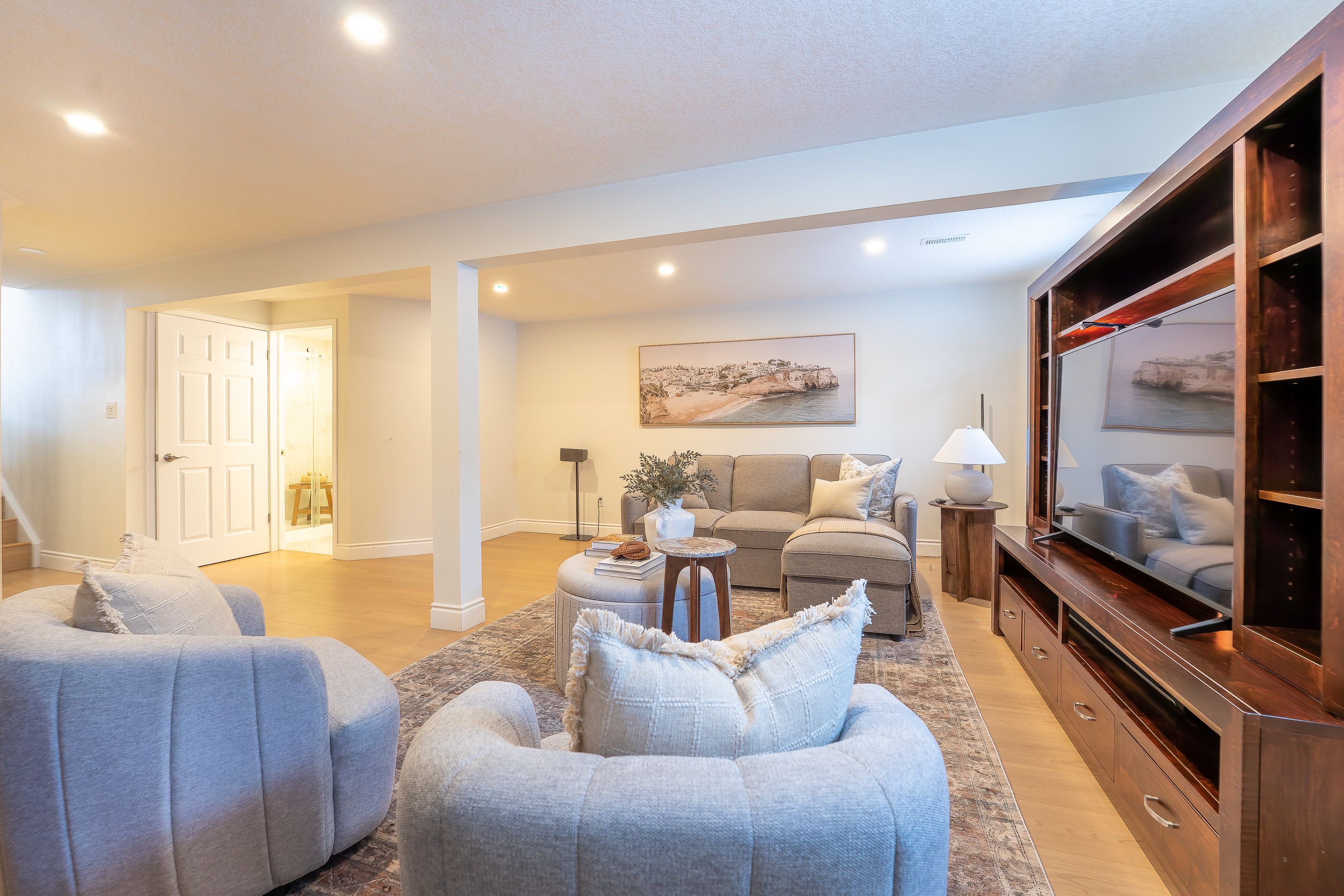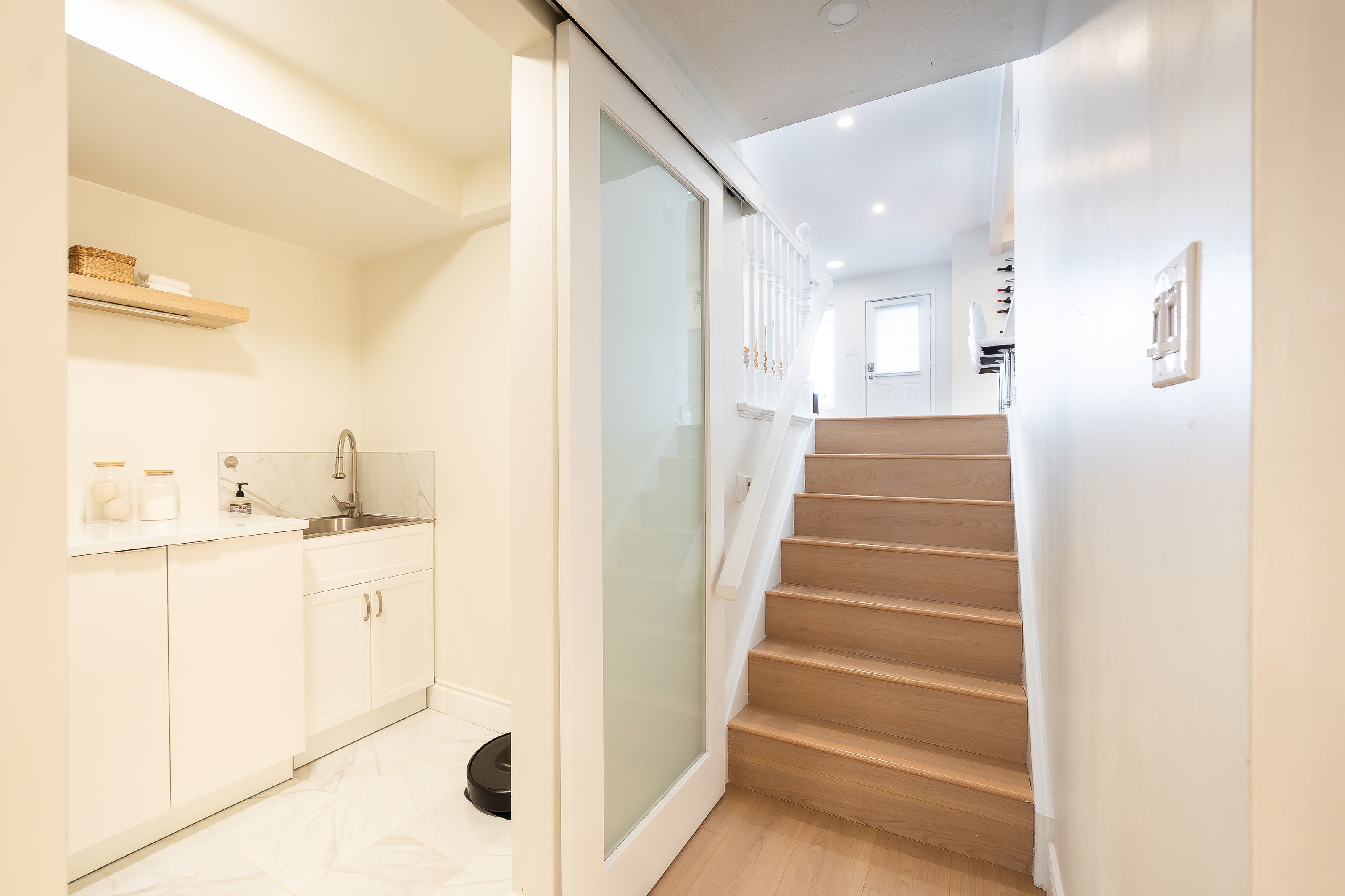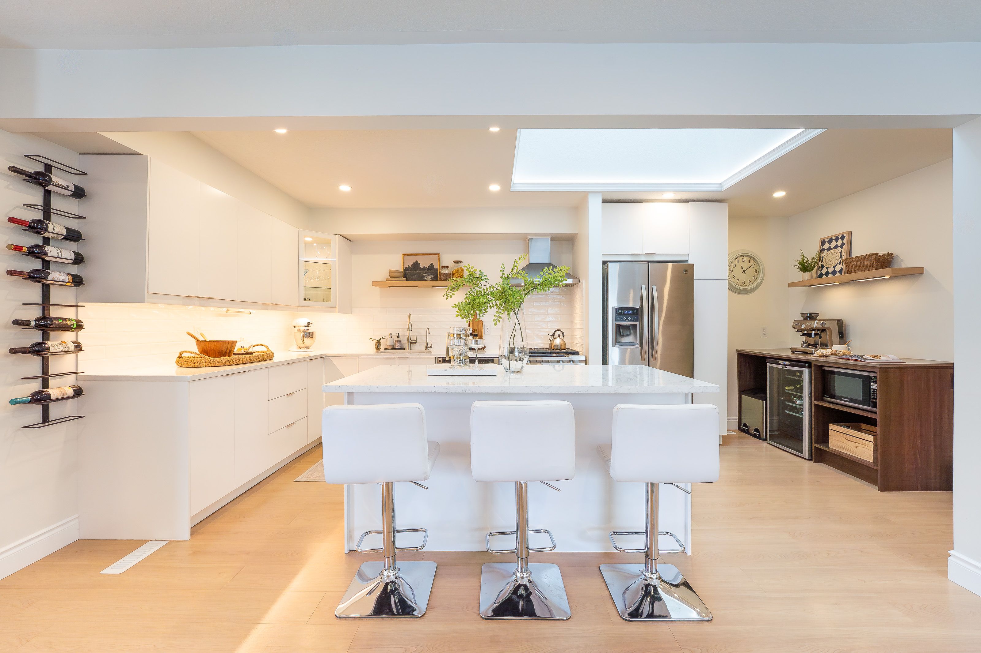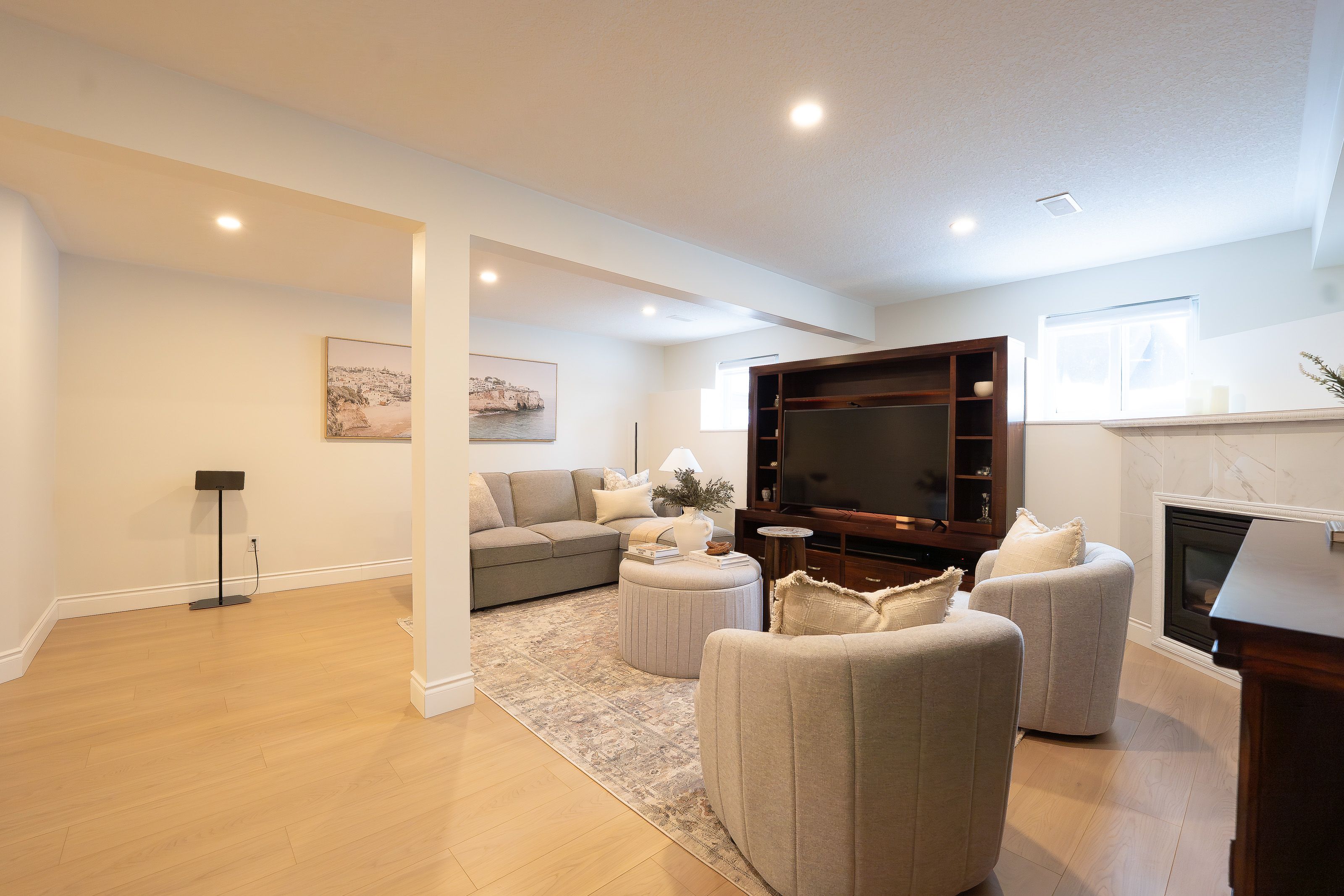 Welcome to 408 joseph street, a beautifully updated semi-detached 4 level backsplit located in family-friendly new hamburg. Offering over 1,500 sq ft of finished living space, this home features 3 bedrooms, 2 full bathrooms, a functional multi-level layout, and a fully finished lower level. The main level showcases a stunning designer kitchen with sleek flat-panel white cabinetry, quartz countertops, a large centre island with seating, stainless steel appliances, gas range, modern hood fan, open shelving, and a skylight that fills the space with natural light. The open-concept living and dining areas are finished with wide-plank flooring, recessed lighting, and a cozy fireplace, creating a warm and contemporary atmosphere ideal for everyday living and entertaining. The primary bedroom offers updated flooring, modern lighting, and generous closet space, while two additional generously sized bedrooms provide excellent flexibility for children, guests, or a home office. The main bathroom has been tastefully renovated with a floating double vanity, dual mirrors, upgraded fixtures, and a tub/shower with sliding glass doors. The lower level features a spacious living area with gas fireplace, and large above-grade windows, along with an second full bathroom, making it ideal for hosting guests. Outside, enjoy a private, fully fenced backyard with no rear neighbours, deck and patio areas, and a garden shed. The exterior offers brick and vinyl siding, an attached garage, and a wide concrete driveway with ample space for 2 vehicles . Close to parks, schools, shopping, and quick highway access. An excellent opportunity for first-time buyers, families, or downsizers.