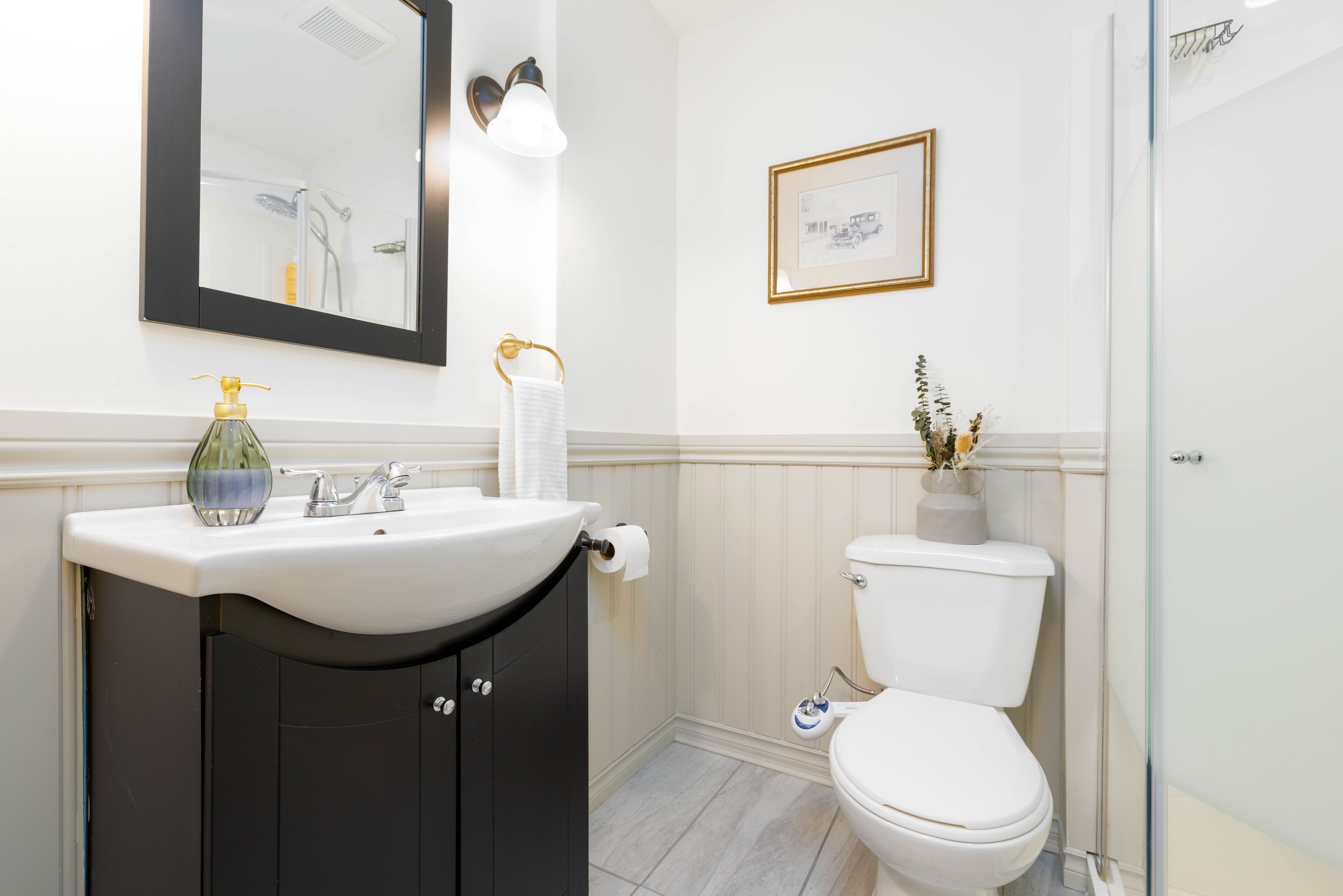• Convenient main floor laundry and updated 3-piece bathroom.