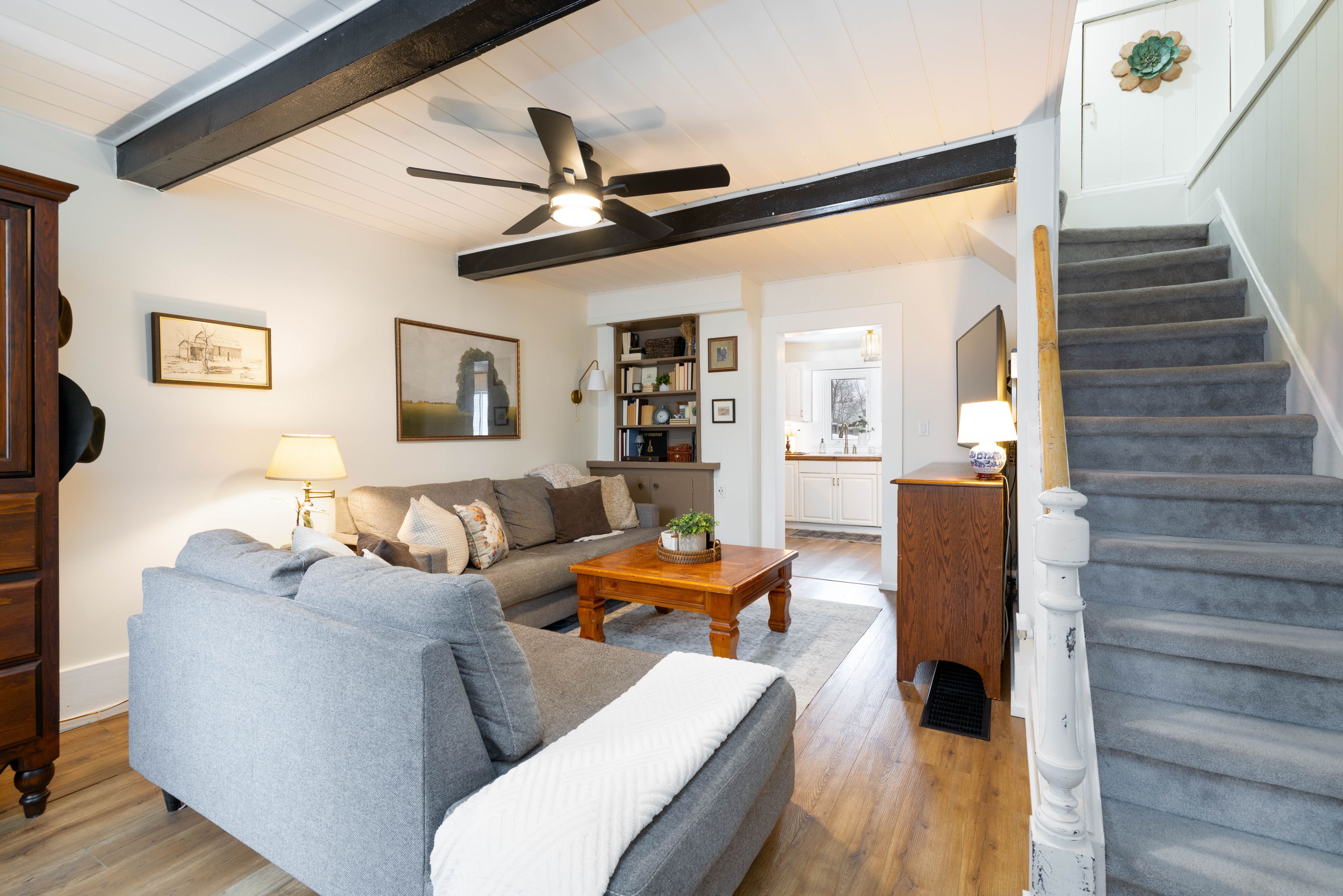 Welcome to 408 main st in the heart of shelburne. This charming century home blends rustic character with extensive modern upgrades. The main floor features a refreshed eat-in kitchen with solid wood butcher block counters, stainless appliances (2025 - microwave, dishwasher and fridge, 2017 - stove), updated backsplash, and new luxury vinyl plank flooring. Fresh benjamin moore paint and antique solid wood doors throughout! Updated 3-piece bath, main floor bedroom, renovated foyer, and convenient main floor laundry with 2025 ge appliances. Upstairs includes a private primary bedroom, third bedroom, 4-piece bath, and added storage. The detached insulated garage (18'x28') has been fully-upgraded with a new roof, new insulated garage door with opener, new steel man door and new garage siding. Outside, the backyard has been professionally levelled with fresh sod, new hardscaped front and rear pathways, perennial gardens, and a resurfaced pressure treated deck with new railings, creating a clean and functional space for entertaining. Walking distance to downtown, parks, schools, and amenities. Character, upgrades, and practicality in one complete package plus room for the toys! Check out the attached extensive upgrade list! This is not one to miss!