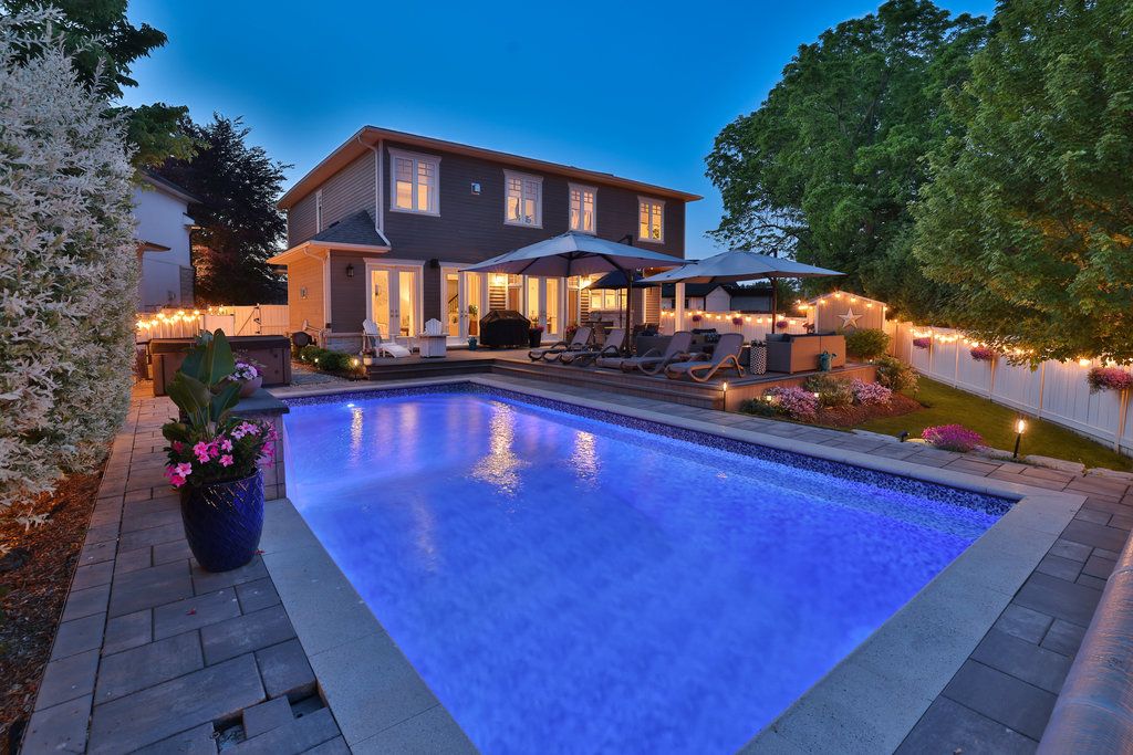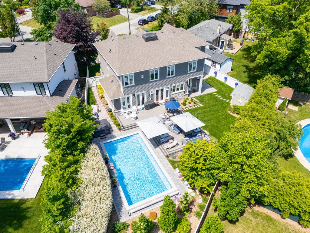 Every so often, a home comes along that sets a new benchmark. This custom-built residence combines timeless architecture, magazine-worthy interiors, and a resort-style backyard with over 6,100 sq. Ft. Of finished living space. Set on one of the largest pie-shaped lots in the neighbourhood (over 45% larger than average) and just 3km to appleby college, it offers a rare sense of scale and privacy. Southwest-facing gardens showcase a heated saltwater pool, tiered lounging areas, ambient lighting, and mature hedging. Inside, 10 ceilings, wide-plank hardwood, and bespoke millwork create quiet sophistication. The open-concept kitchen and family room with gas fireplace and french doors connect seamlessly to the gardens. A formal living room, elegant dining area, and private office complete the main floor. Upstairs, the primary suite rivals a luxury hotel with spa-inspired ensuite and dressing room, complemented by 3 bedrooms and laundry. The finished lower level adds a rec room with wet bar, gym, sauna, bedroom, and bathroom, ideal for teens, guests, or multigenerational families.