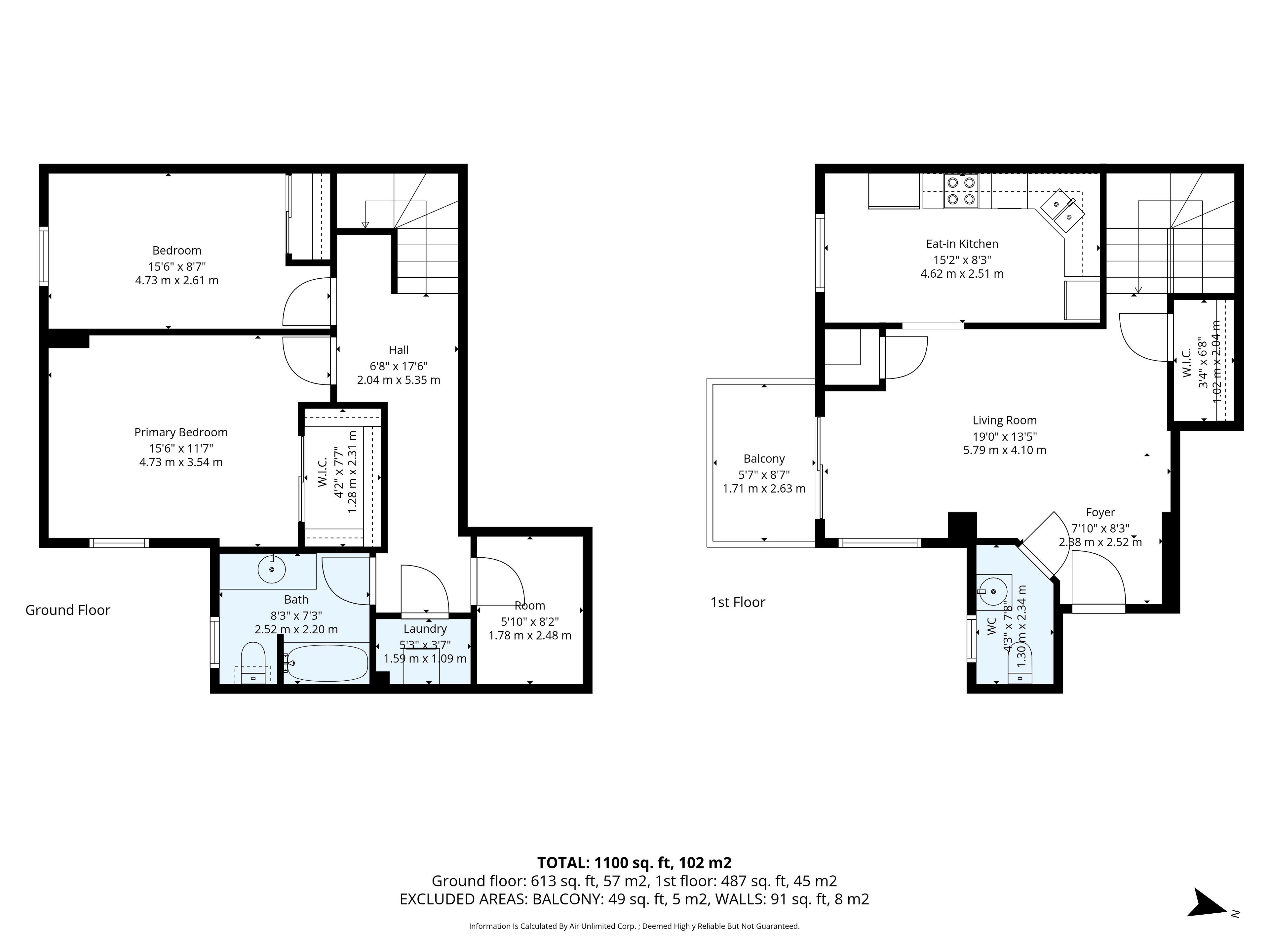 • Spacious 1,190 sq. ft. layout with 2 bedrooms and 2 bathrooms.