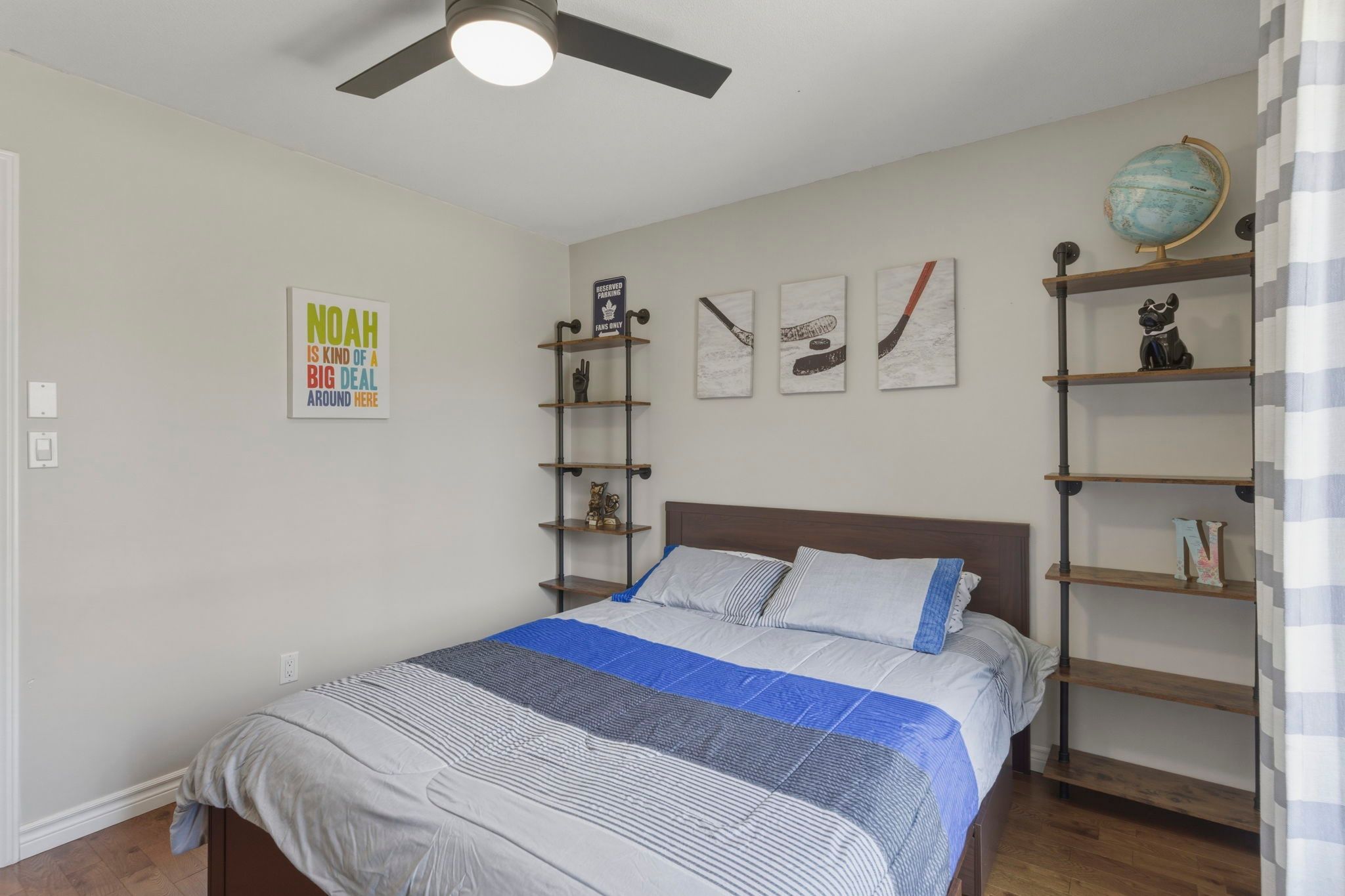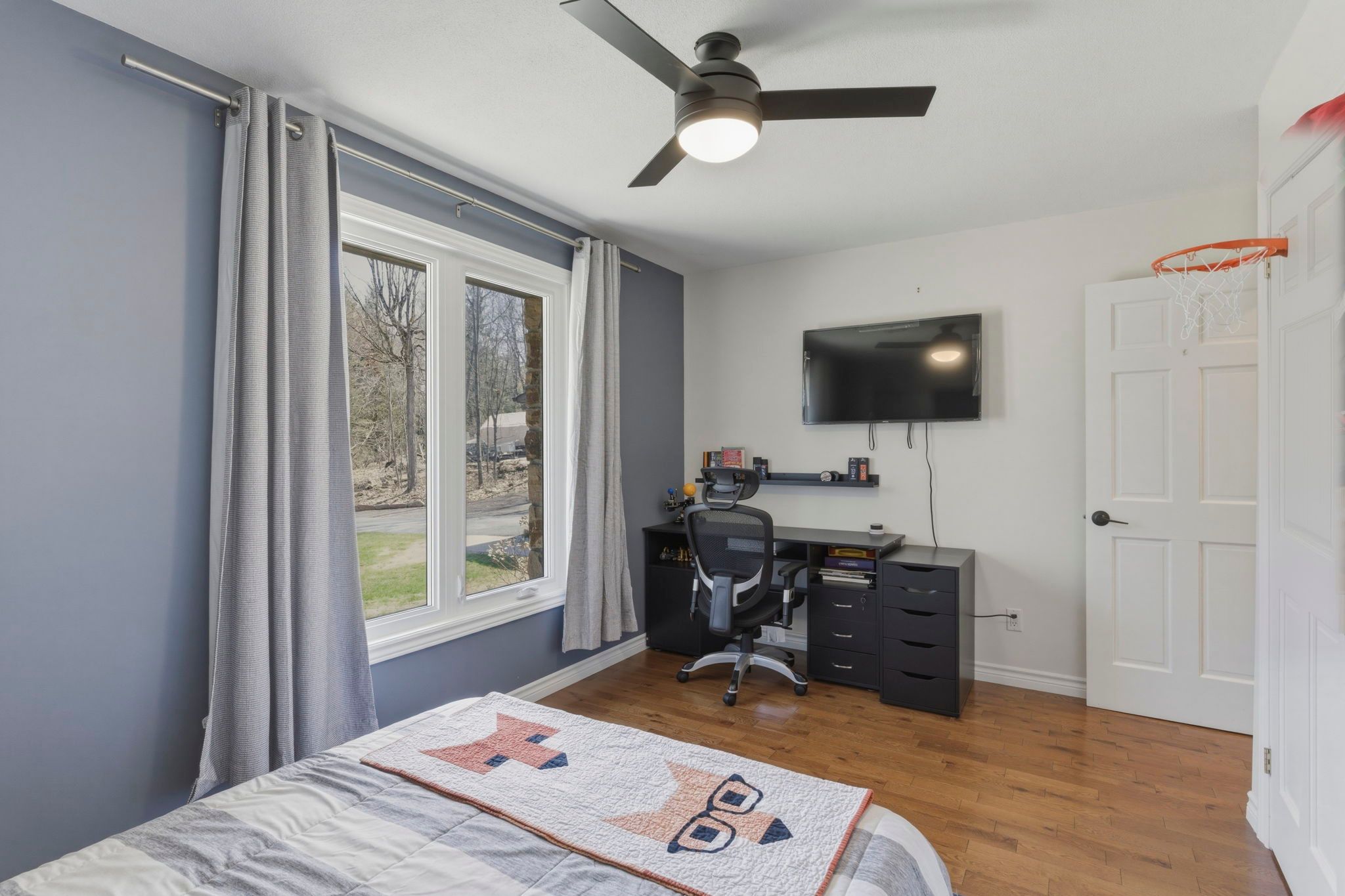 • Finished lower level featuring a rec-room and dedicated gym area.